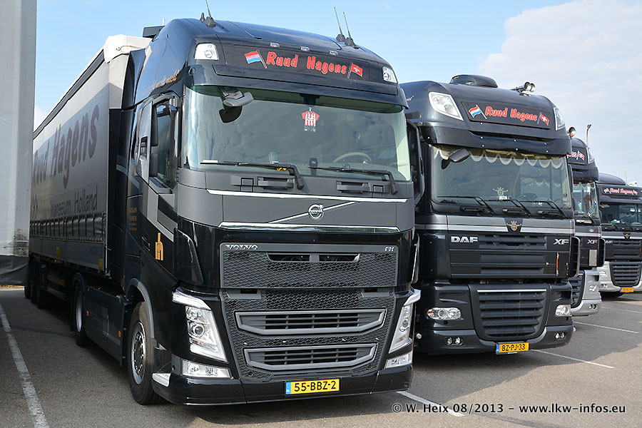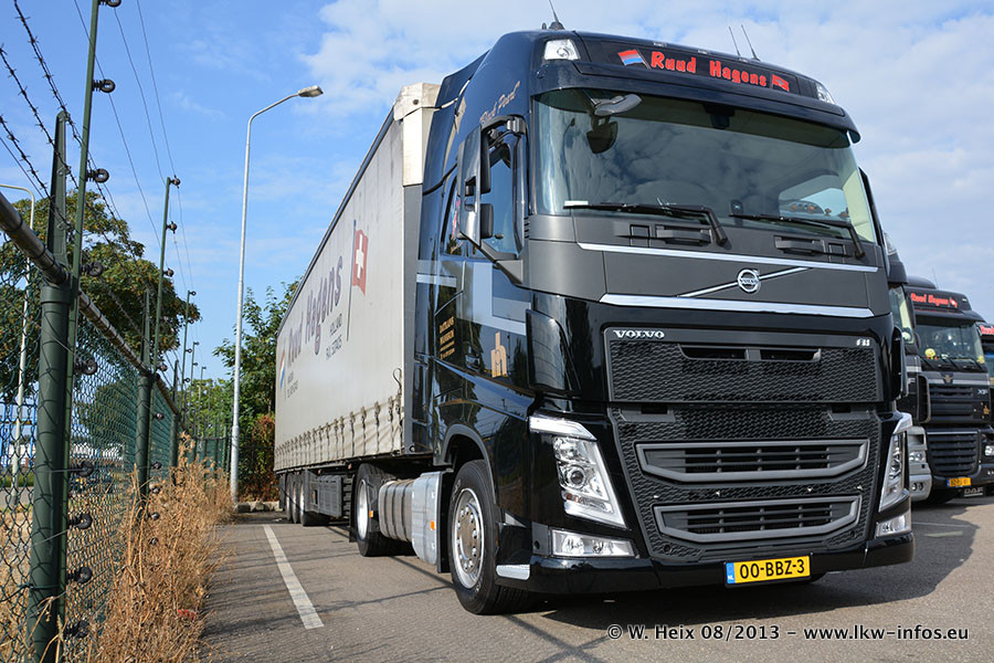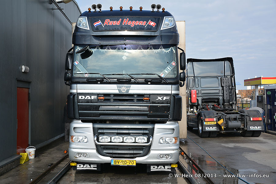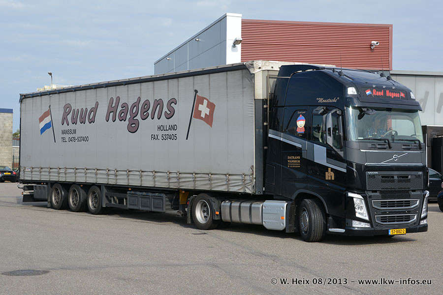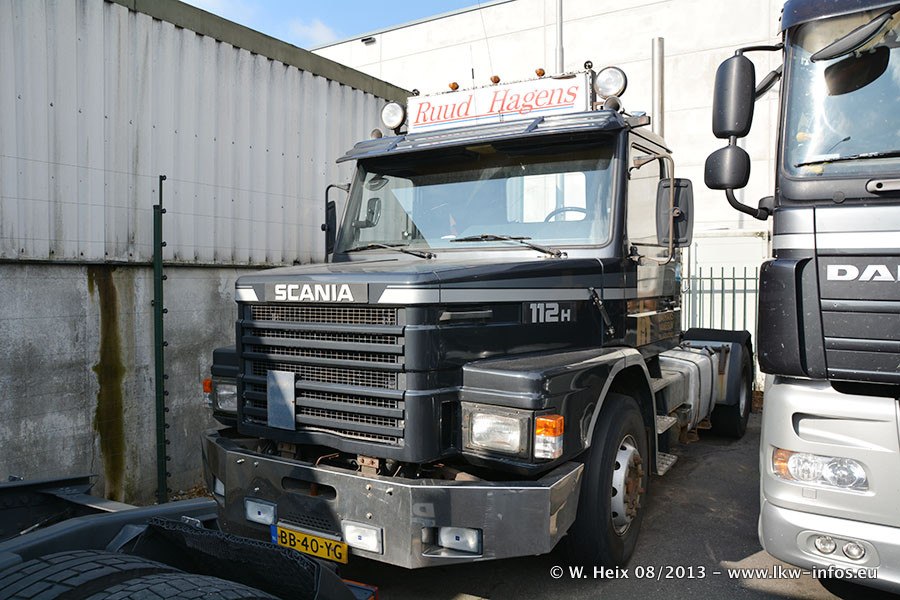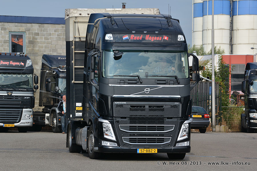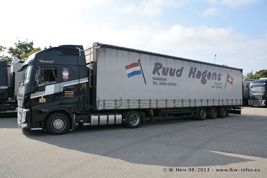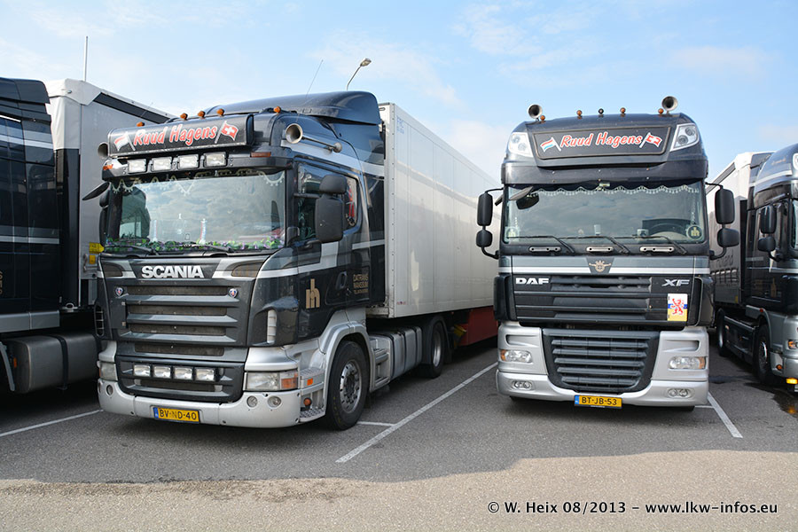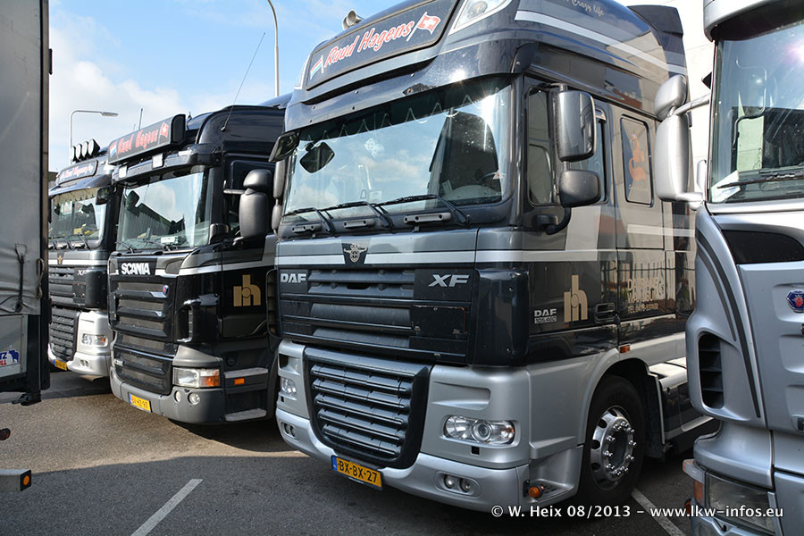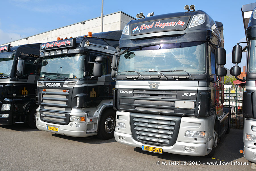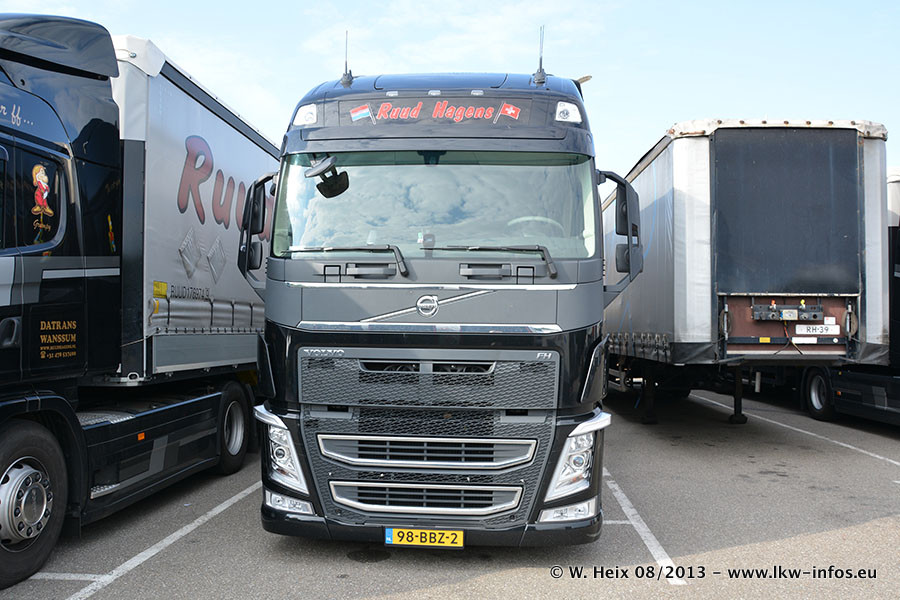 Die vier neuen Volvo New FH (FH 4) sind erst seit wenigen Tagen im Fuhrpark. Neu sind auch drei MAN New TGX (leider war nur einer da) sowie einzelne Scania New G und DAF XF 105. In den nächsten Wochen werden weitere Zugmaschinen durch neue ersetzt. Bilder folgen demnächst ..... Der schwarze Scania New R 500 V8 mit den blauen Streifen gehört inzwischen auch zu Fuhrpark. Der LKW wurde vor einiger Wochen von der Firma W. Gerrits aus Wellerlooi übernommen (siehe Modell 1:50 von Tekno - noch mit der alten Beschrifrung). Die Galerie enthält auch Bilder von Subunternehmer-Fahrzeugen.