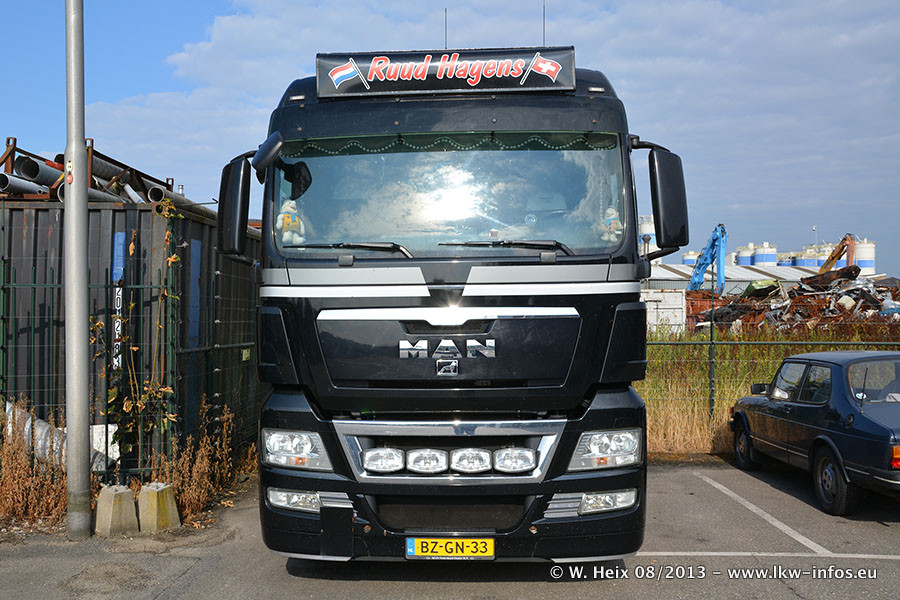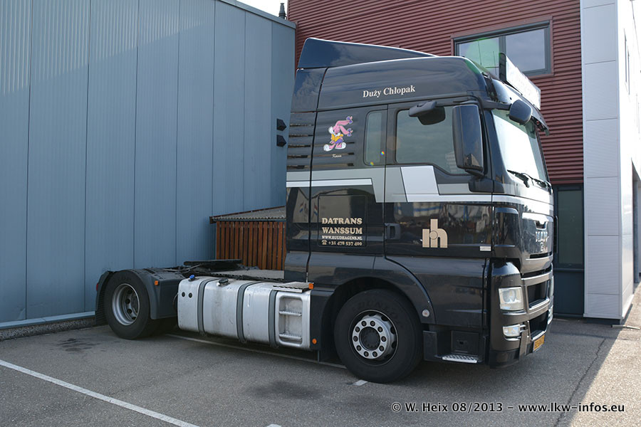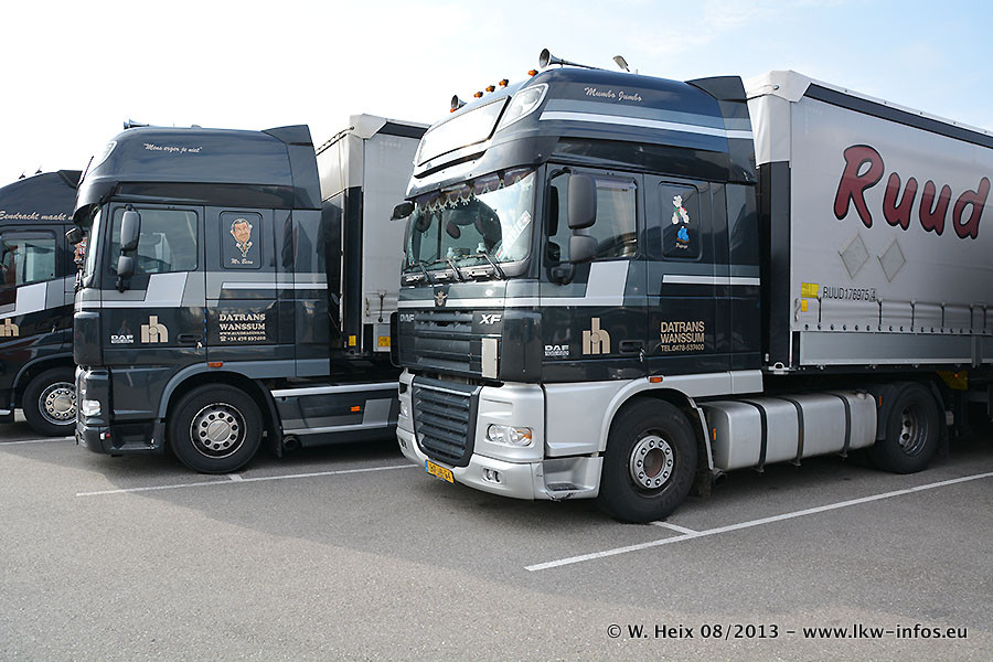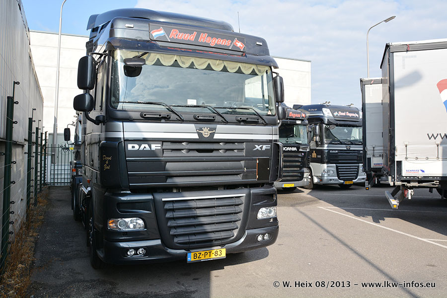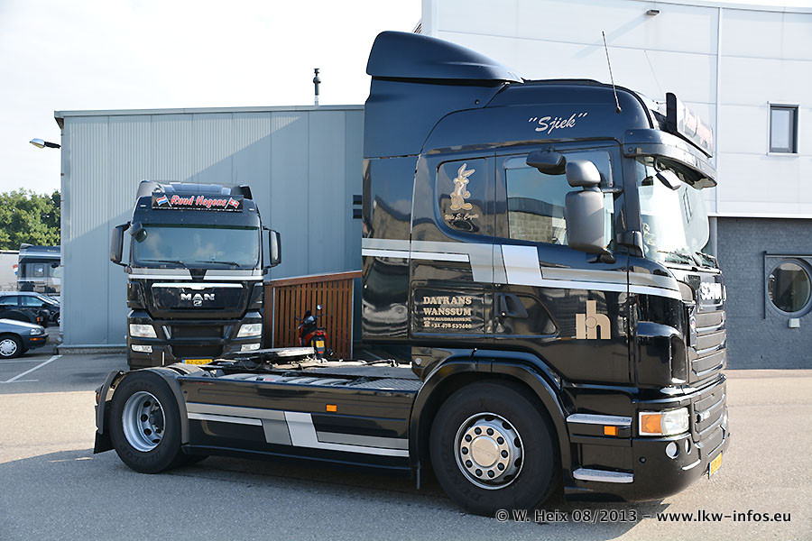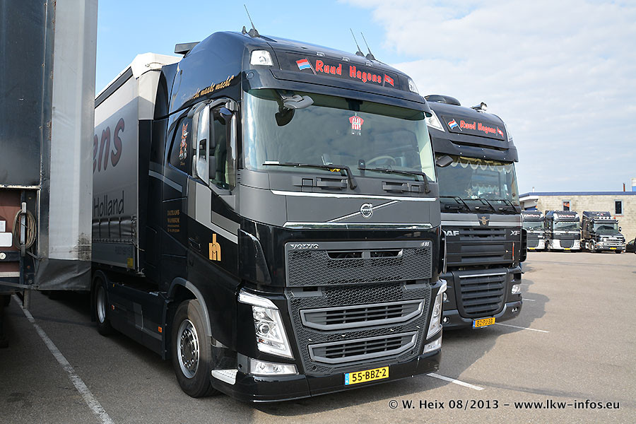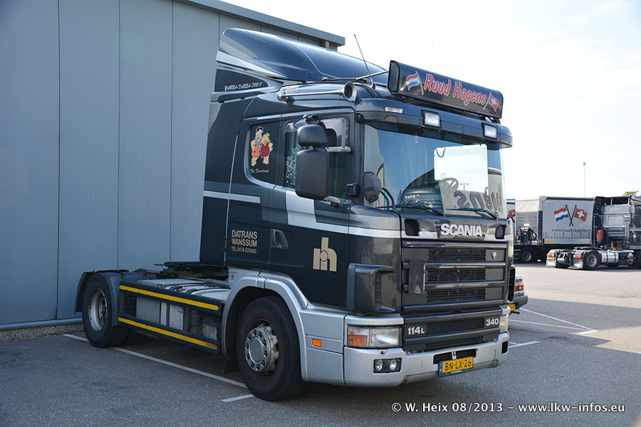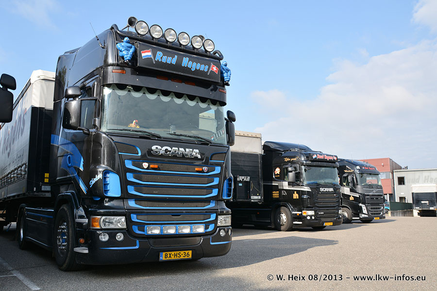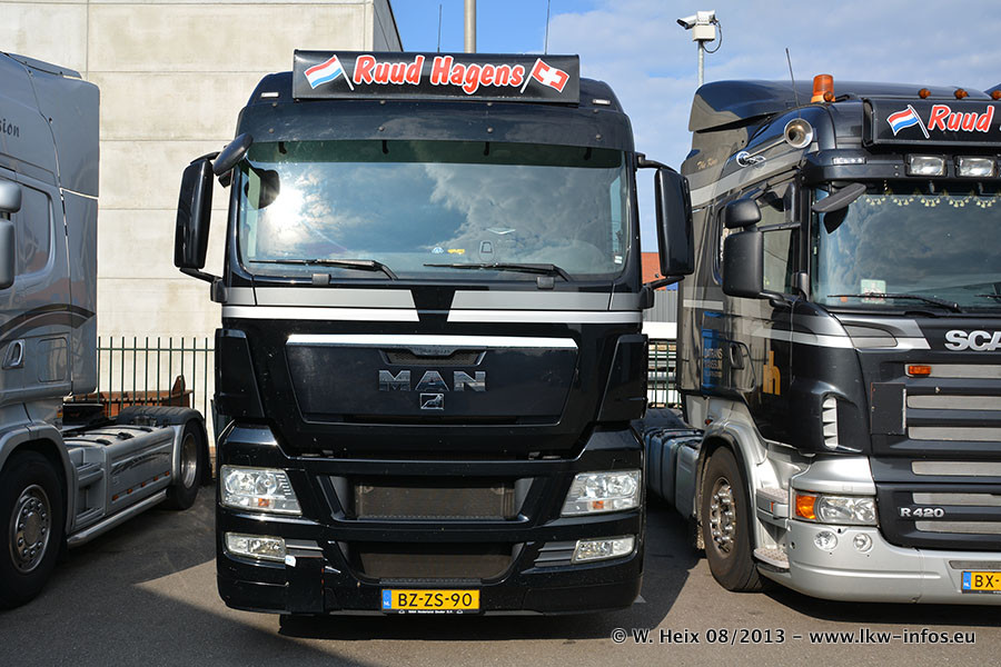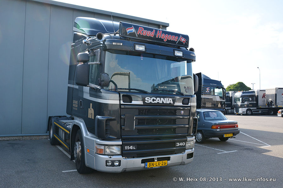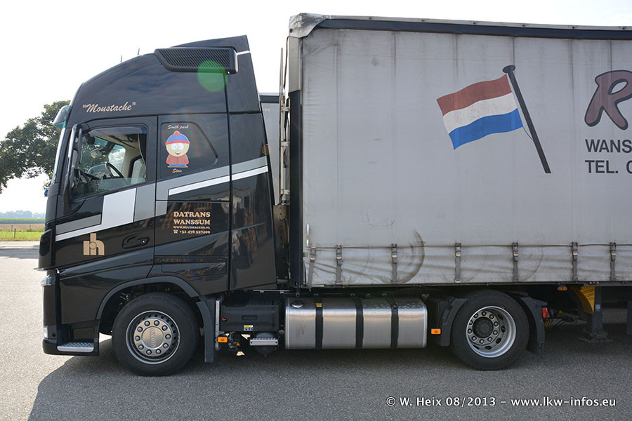 Die vier neuen Volvo New FH (FH 4) sind erst seit wenigen Tagen im Fuhrpark. Neu sind auch drei MAN New TGX (leider war nur einer da) sowie einzelne Scania New G und DAF XF 105. In den nächsten Wochen werden weitere Zugmaschinen durch neue ersetzt. Bilder folgen demnächst ..... Der schwarze Scania New R 500 V8 mit den blauen Streifen gehört inzwischen auch zu Fuhrpark. Der LKW wurde vor einiger Wochen von der Firma W. Gerrits aus Wellerlooi übernommen (siehe Modell 1:50 von Tekno - noch mit der alten Beschrifrung). Die Galerie enthält auch Bilder von Subunternehmer-Fahrzeugen.