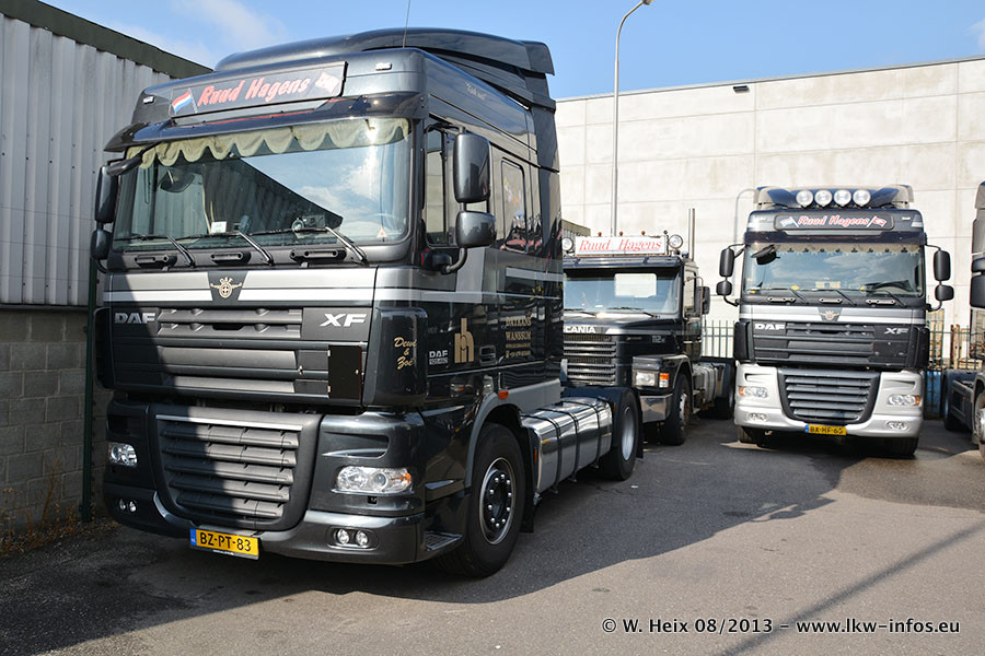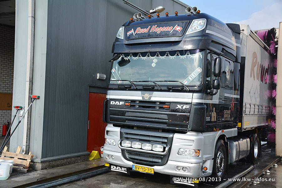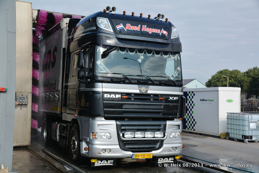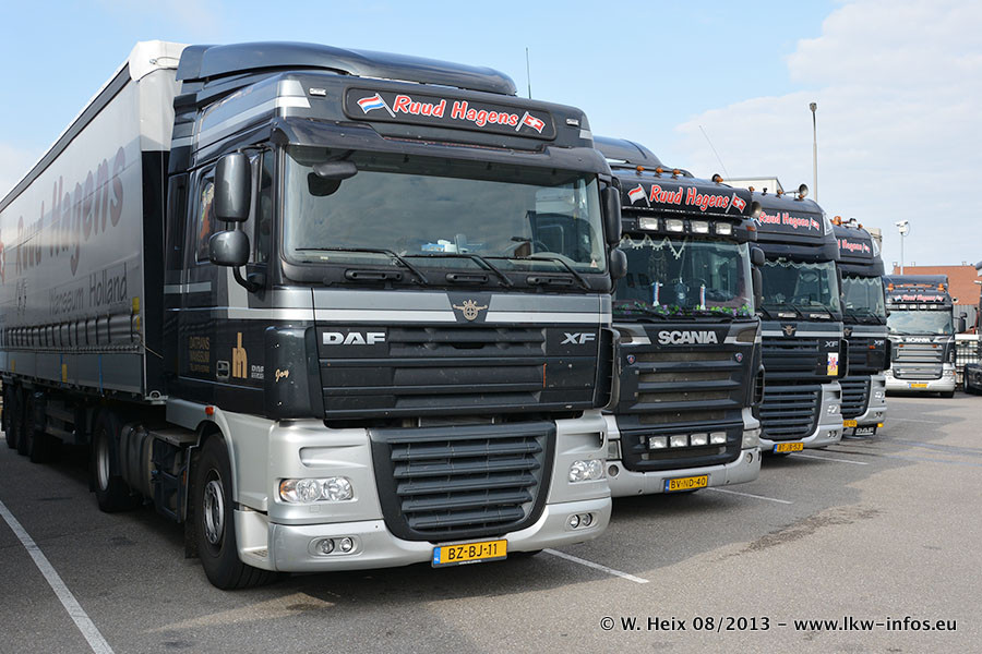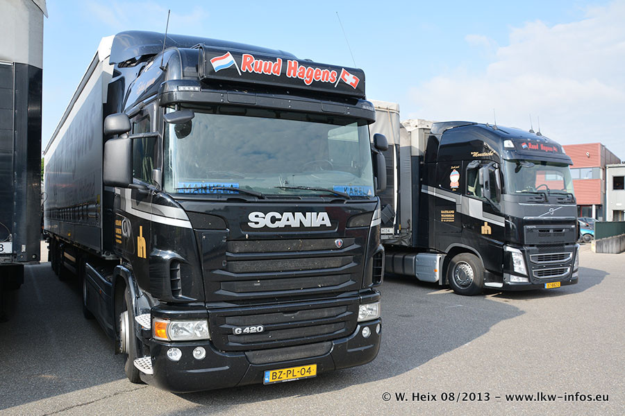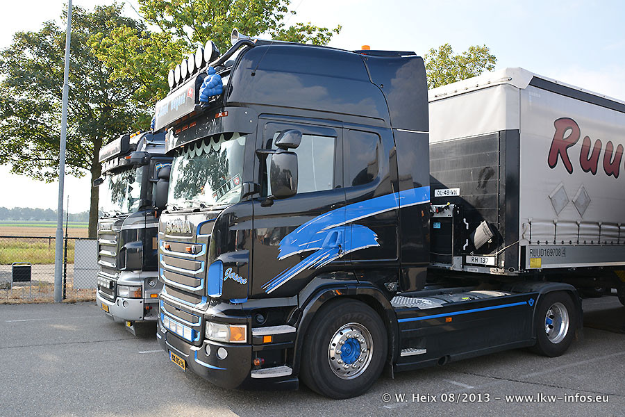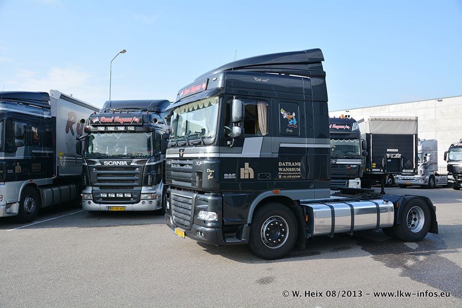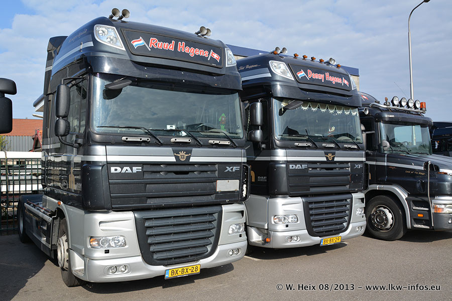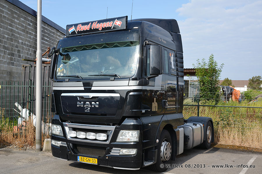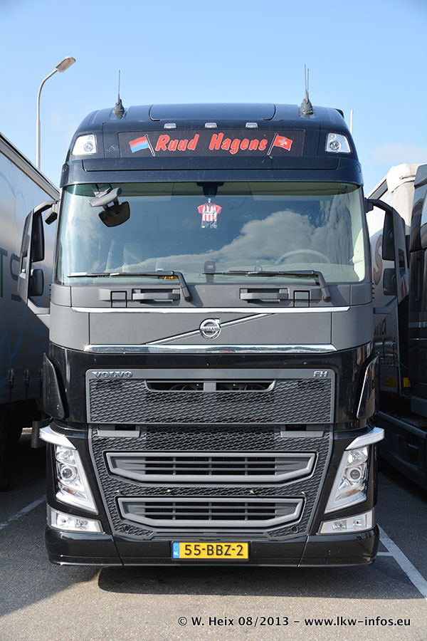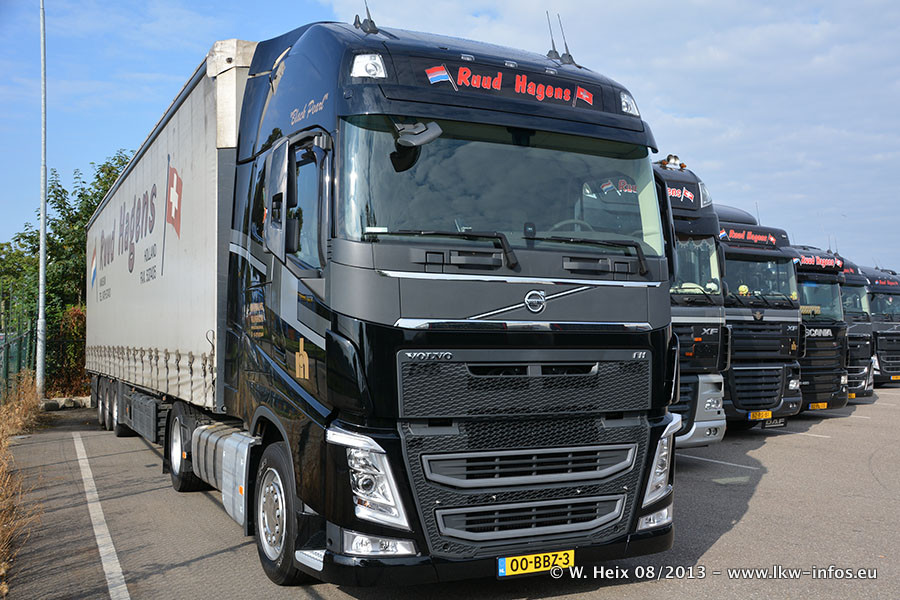 Die vier neuen Volvo New FH (FH 4) sind erst seit wenigen Tagen im Fuhrpark. Neu sind auch drei MAN New TGX (leider war nur einer da) sowie einzelne Scania New G und DAF XF 105. In den nächsten Wochen werden weitere Zugmaschinen durch neue ersetzt. Bilder folgen demnächst ..... Der schwarze Scania New R 500 V8 mit den blauen Streifen gehört inzwischen auch zu Fuhrpark. Der LKW wurde vor einiger Wochen von der Firma W. Gerrits aus Wellerlooi übernommen (siehe Modell 1:50 von Tekno - noch mit der alten Beschrifrung). Die Galerie enthält auch Bilder von Subunternehmer-Fahrzeugen.