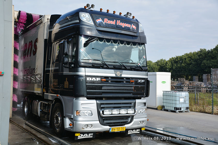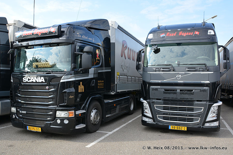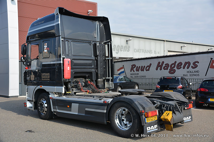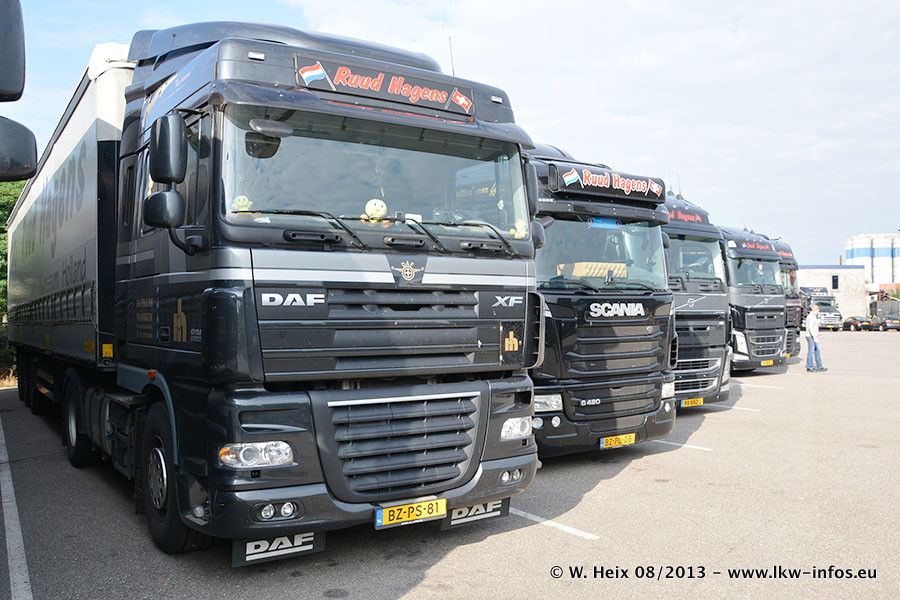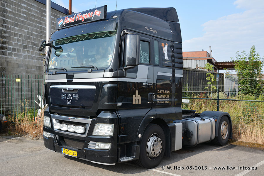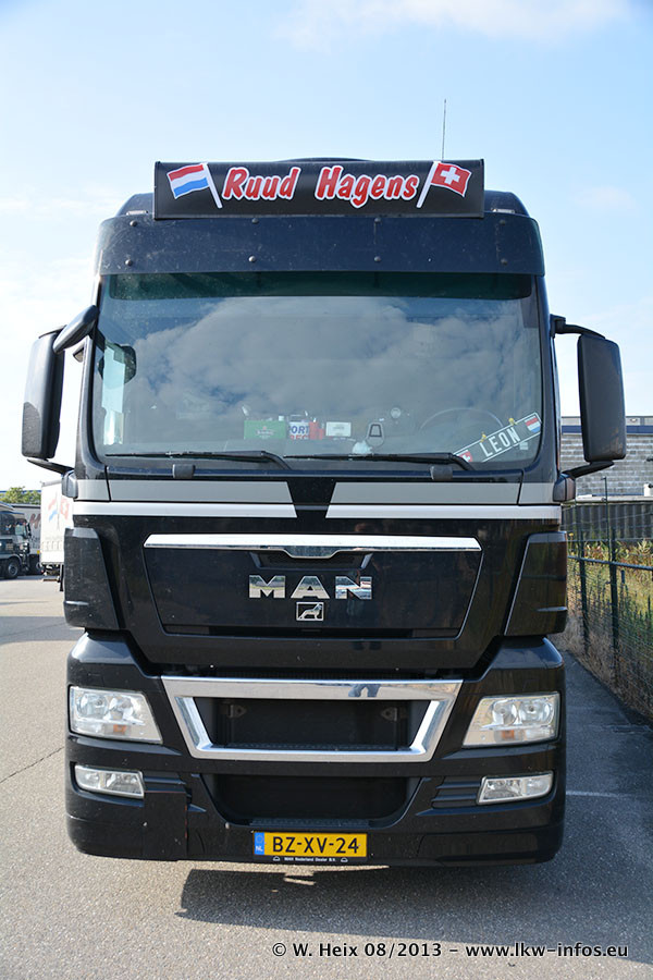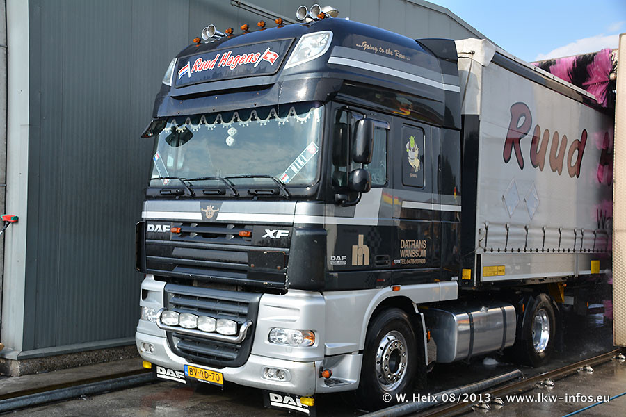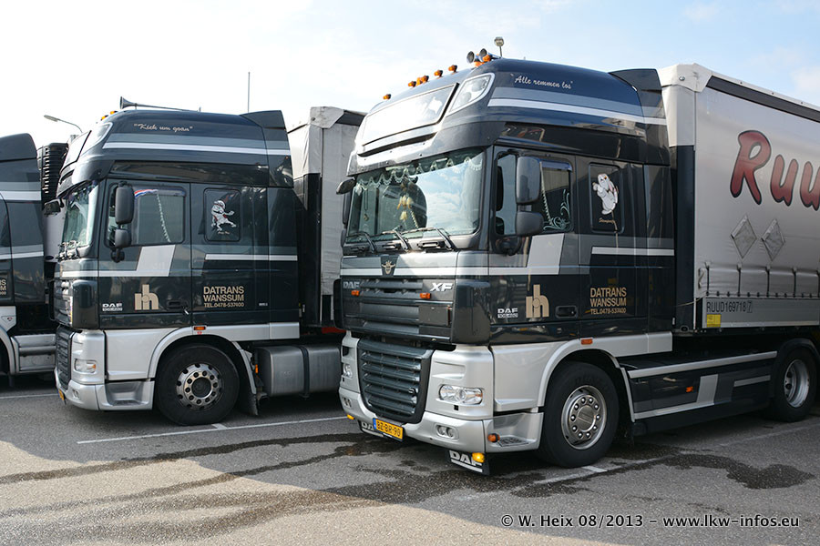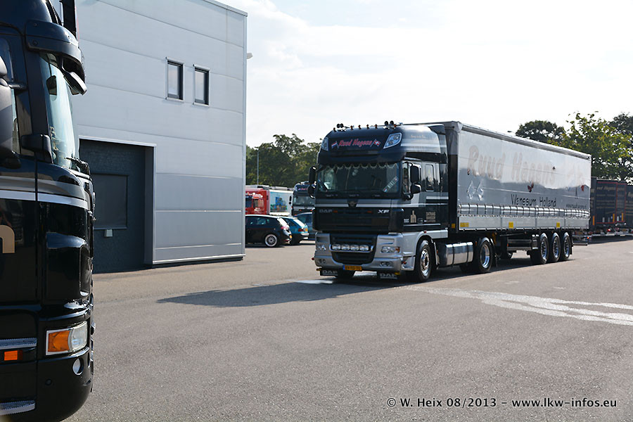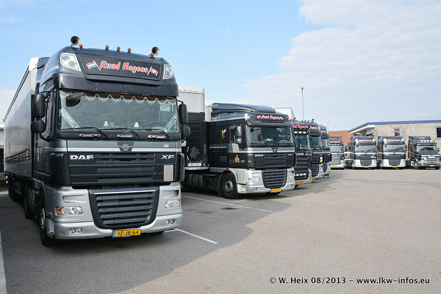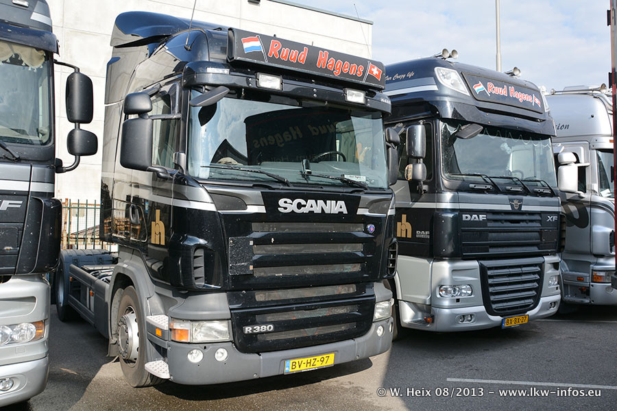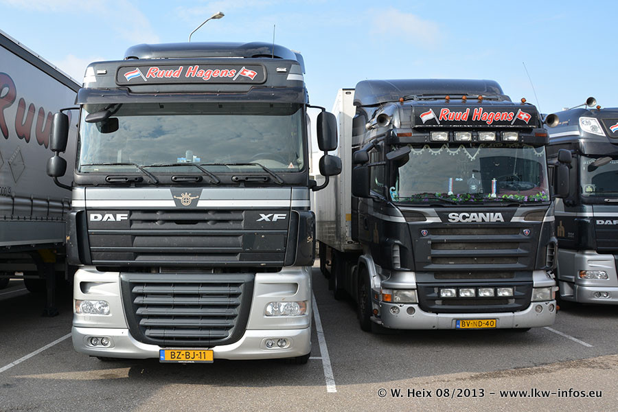Die vier neuen Volvo New FH (FH 4) sind erst seit wenigen Tagen im Fuhrpark. Neu sind auch drei MAN New TGX (leider war nur einer da) sowie einzelne Scania New G und DAF XF 105. In den nächsten Wochen werden weitere Zugmaschinen durch neue ersetzt. Bilder folgen demnächst ..... Der schwarze Scania New R 500 V8 mit den blauen Streifen gehört inzwischen auch zu Fuhrpark. Der LKW wurde vor einiger Wochen von der Firma W. Gerrits aus Wellerlooi übernommen (siehe Modell 1:50 von Tekno - noch mit der alten Beschrifrung). Die Galerie enthält auch Bilder von Subunternehmer-Fahrzeugen.
