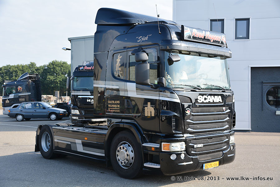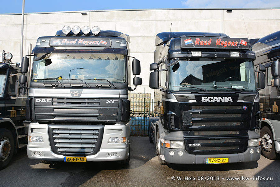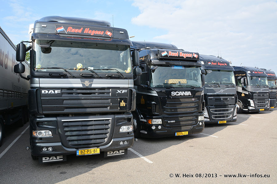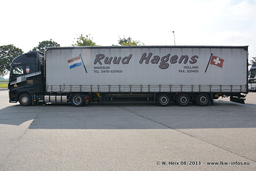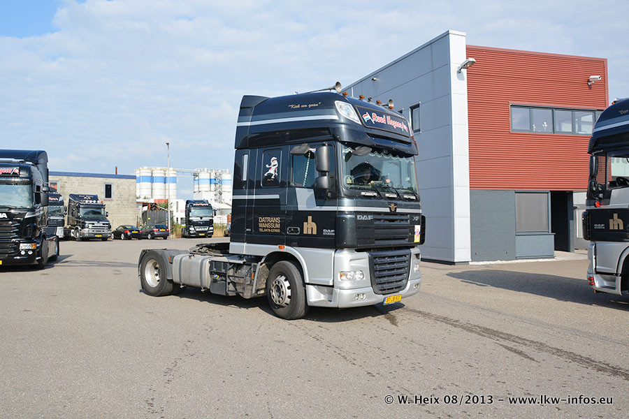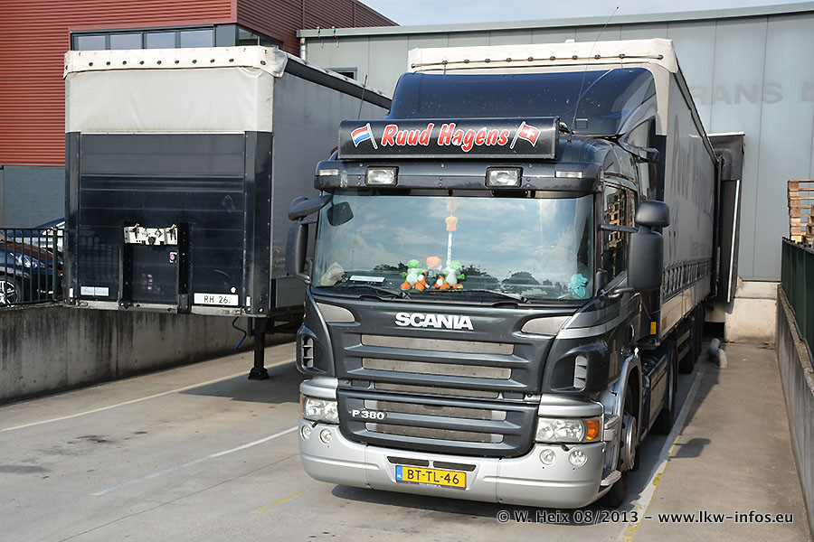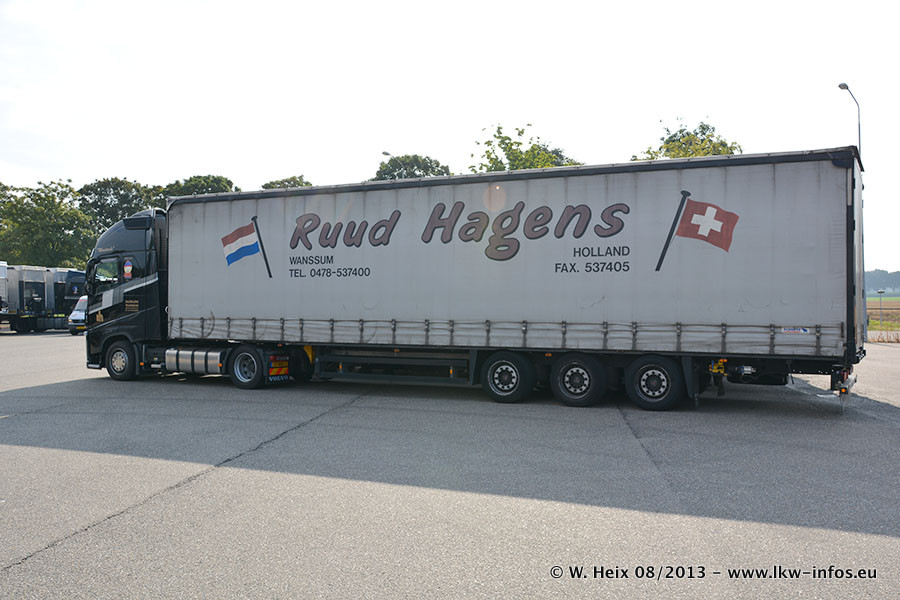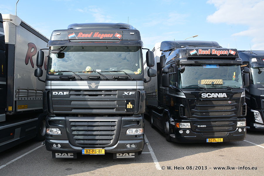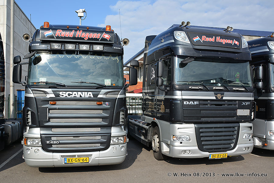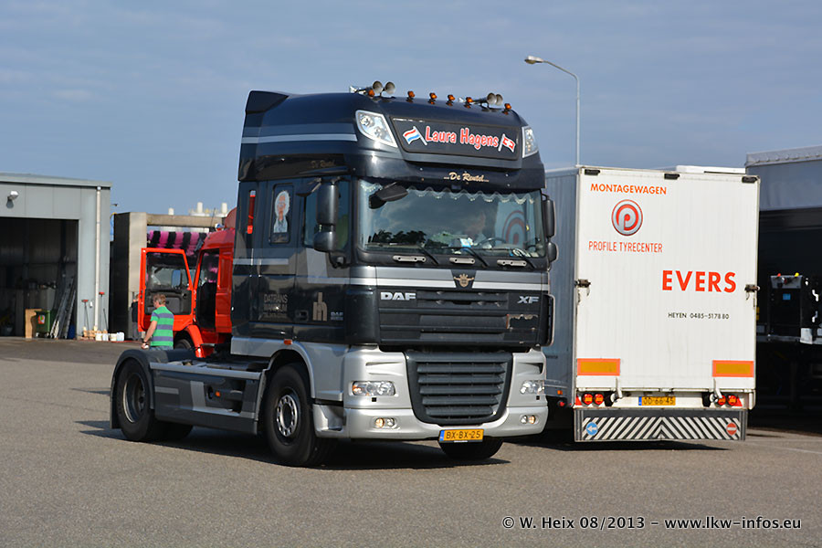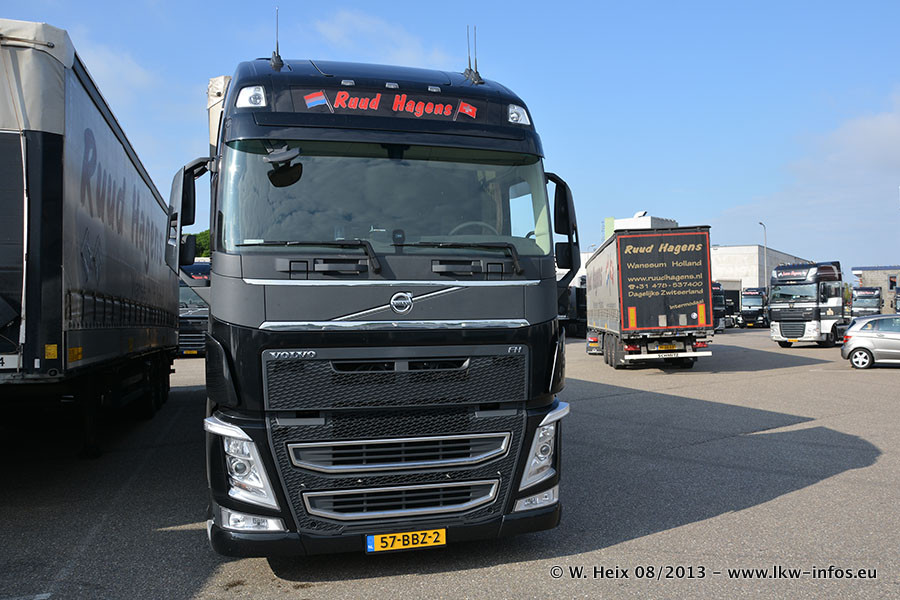 Die vier neuen Volvo New FH (FH 4) sind erst seit wenigen Tagen im Fuhrpark. Neu sind auch drei MAN New TGX (leider war nur einer da) sowie einzelne Scania New G und DAF XF 105. In den nächsten Wochen werden weitere Zugmaschinen durch neue ersetzt. Bilder folgen demnächst ..... Der schwarze Scania New R 500 V8 mit den blauen Streifen gehört inzwischen auch zu Fuhrpark. Der LKW wurde vor einiger Wochen von der Firma W. Gerrits aus Wellerlooi übernommen (siehe Modell 1:50 von Tekno - noch mit der alten Beschrifrung). Die Galerie enthält auch Bilder von Subunternehmer-Fahrzeugen.