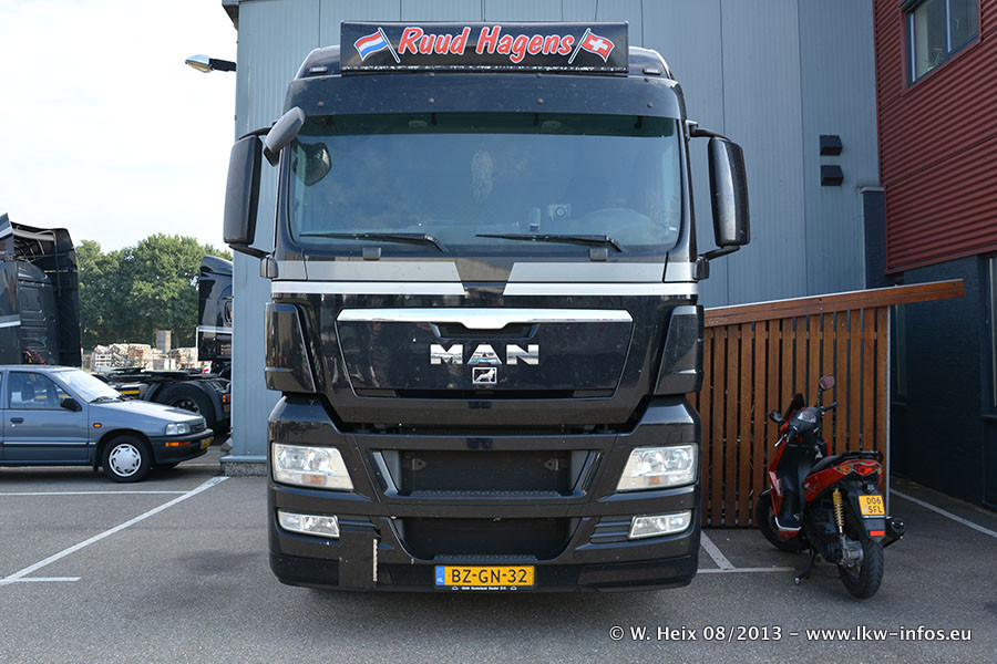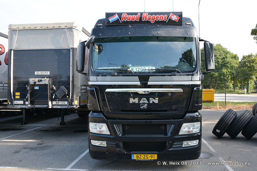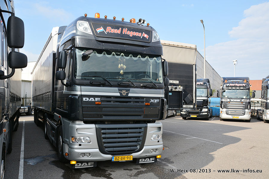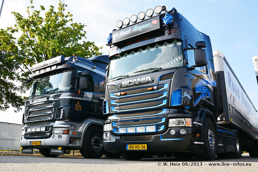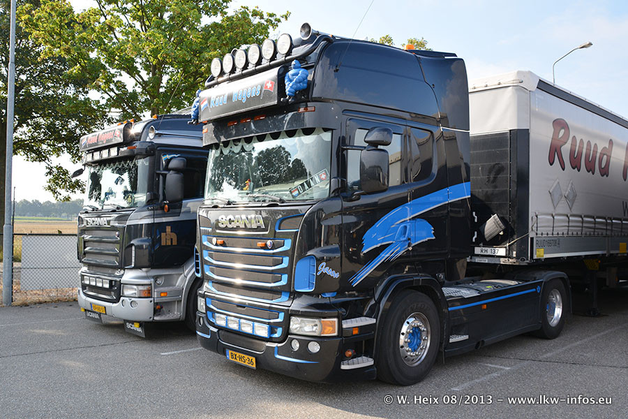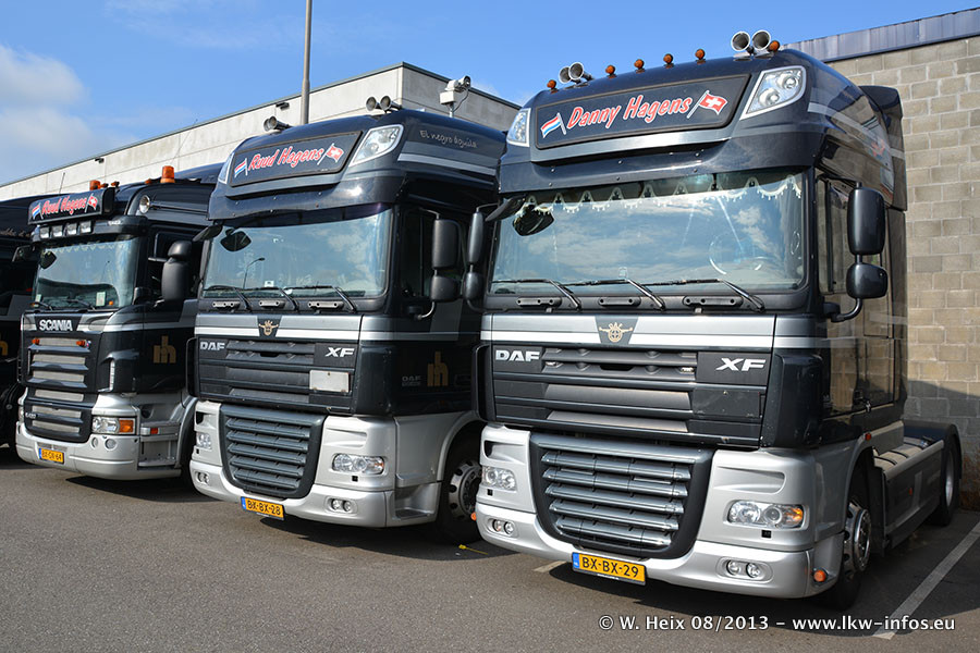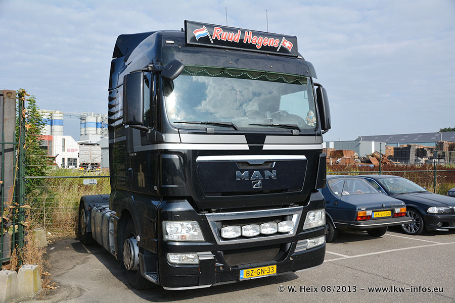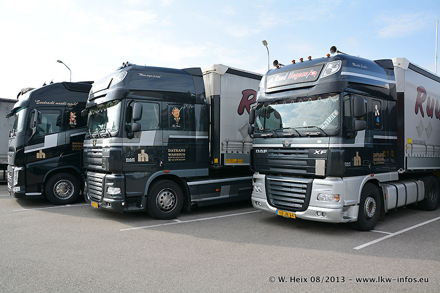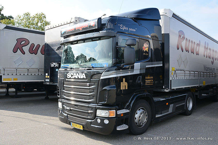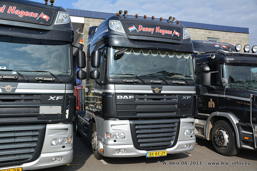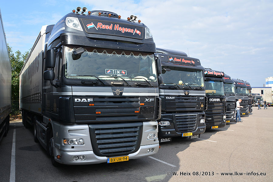 Die vier neuen Volvo New FH (FH 4) sind erst seit wenigen Tagen im Fuhrpark. Neu sind auch drei MAN New TGX (leider war nur einer da) sowie einzelne Scania New G und DAF XF 105. In den nächsten Wochen werden weitere Zugmaschinen durch neue ersetzt. Bilder folgen demnächst ..... Der schwarze Scania New R 500 V8 mit den blauen Streifen gehört inzwischen auch zu Fuhrpark. Der LKW wurde vor einiger Wochen von der Firma W. Gerrits aus Wellerlooi übernommen (siehe Modell 1:50 von Tekno - noch mit der alten Beschrifrung). Die Galerie enthält auch Bilder von Subunternehmer-Fahrzeugen.