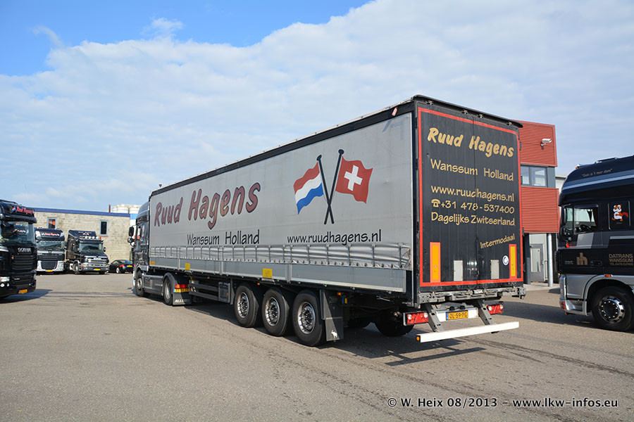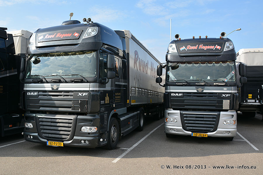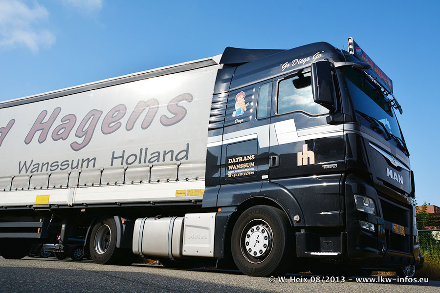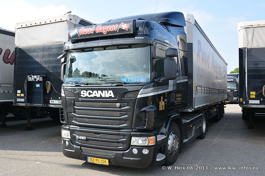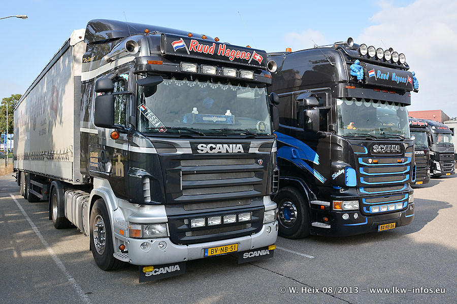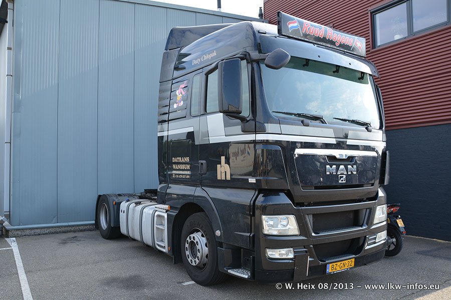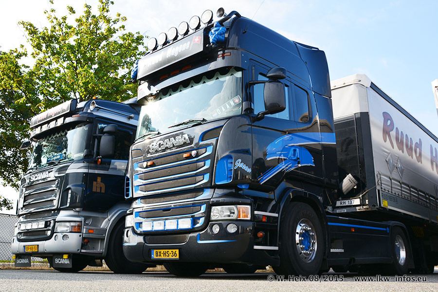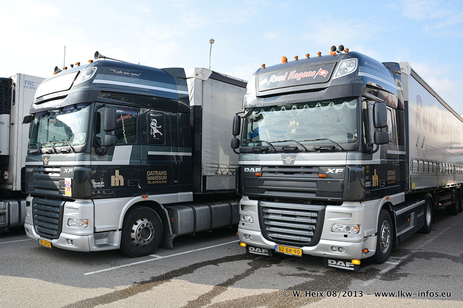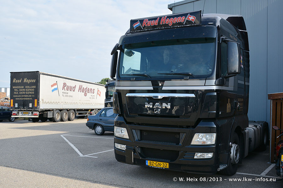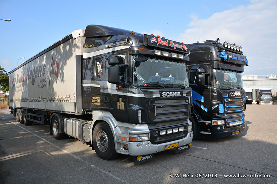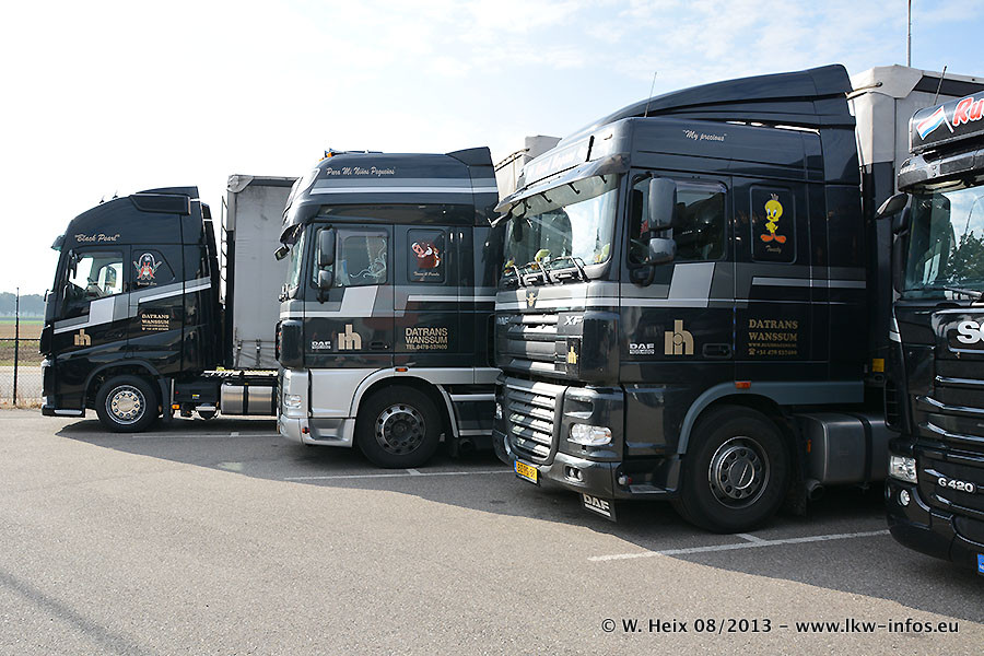 Die vier neuen Volvo New FH (FH 4) sind erst seit wenigen Tagen im Fuhrpark. Neu sind auch drei MAN New TGX (leider war nur einer da) sowie einzelne Scania New G und DAF XF 105. In den nächsten Wochen werden weitere Zugmaschinen durch neue ersetzt. Bilder folgen demnächst ..... Der schwarze Scania New R 500 V8 mit den blauen Streifen gehört inzwischen auch zu Fuhrpark. Der LKW wurde vor einiger Wochen von der Firma W. Gerrits aus Wellerlooi übernommen (siehe Modell 1:50 von Tekno - noch mit der alten Beschrifrung). Die Galerie enthält auch Bilder von Subunternehmer-Fahrzeugen.