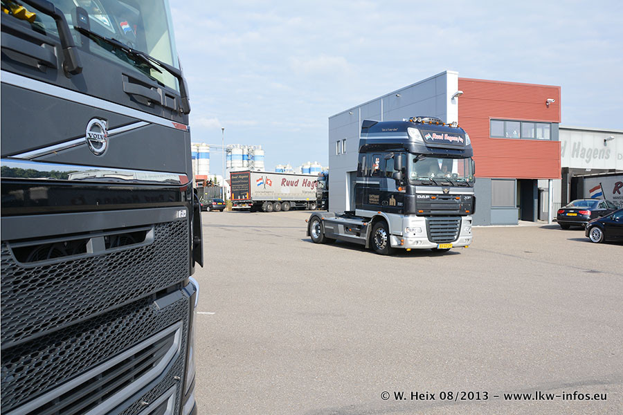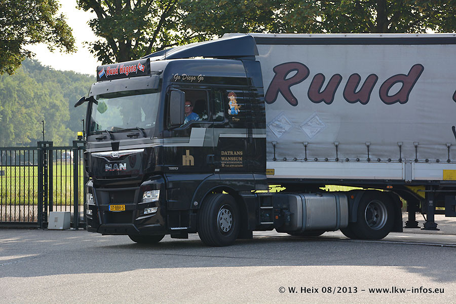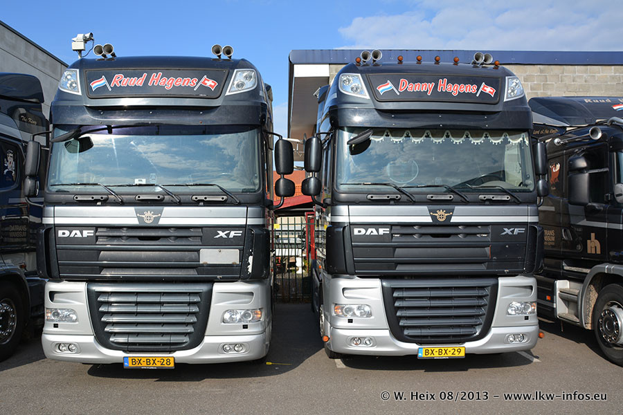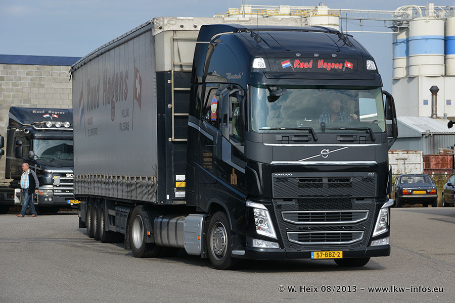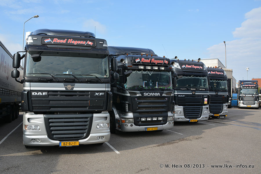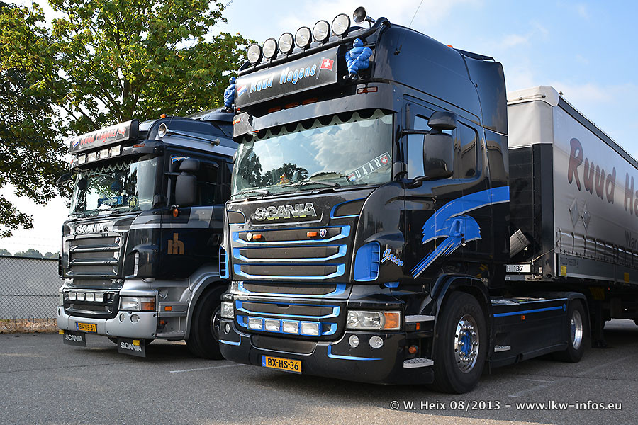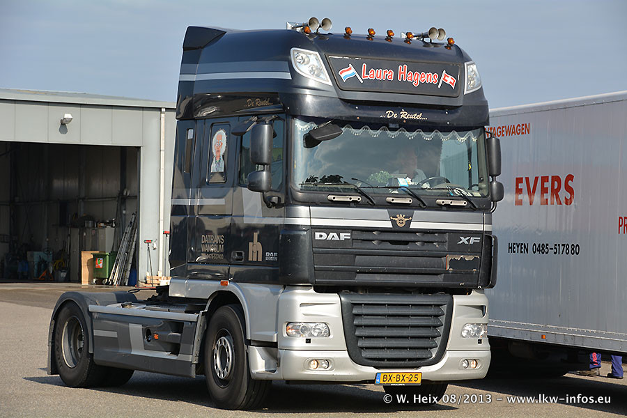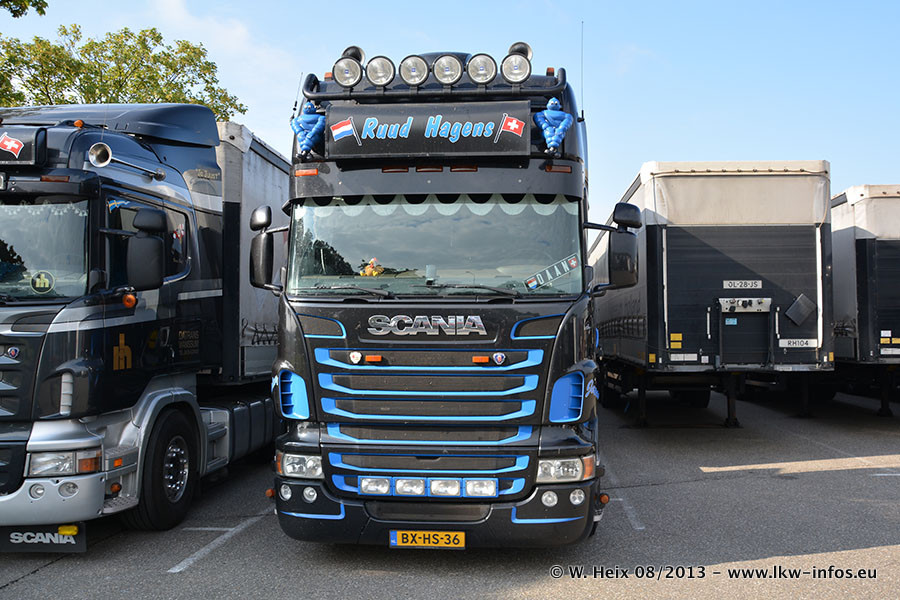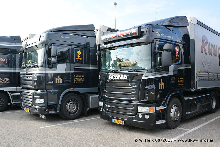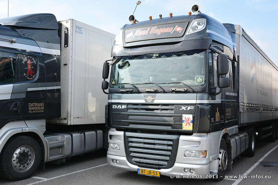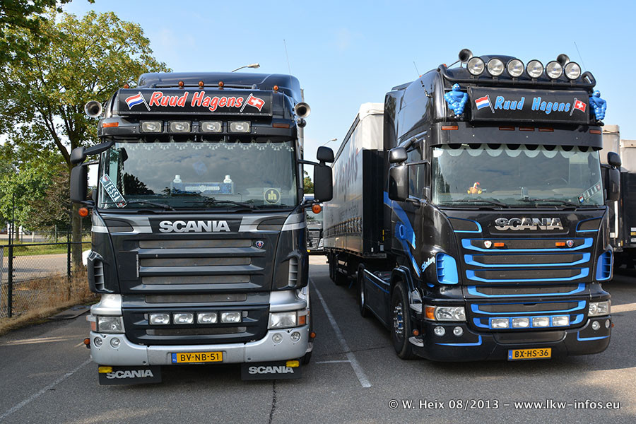 Die vier neuen Volvo New FH (FH 4) sind erst seit wenigen Tagen im Fuhrpark. Neu sind auch drei MAN New TGX (leider war nur einer da) sowie einzelne Scania New G und DAF XF 105. In den nächsten Wochen werden weitere Zugmaschinen durch neue ersetzt. Bilder folgen demnächst ..... Der schwarze Scania New R 500 V8 mit den blauen Streifen gehört inzwischen auch zu Fuhrpark. Der LKW wurde vor einiger Wochen von der Firma W. Gerrits aus Wellerlooi übernommen (siehe Modell 1:50 von Tekno - noch mit der alten Beschrifrung). Die Galerie enthält auch Bilder von Subunternehmer-Fahrzeugen.