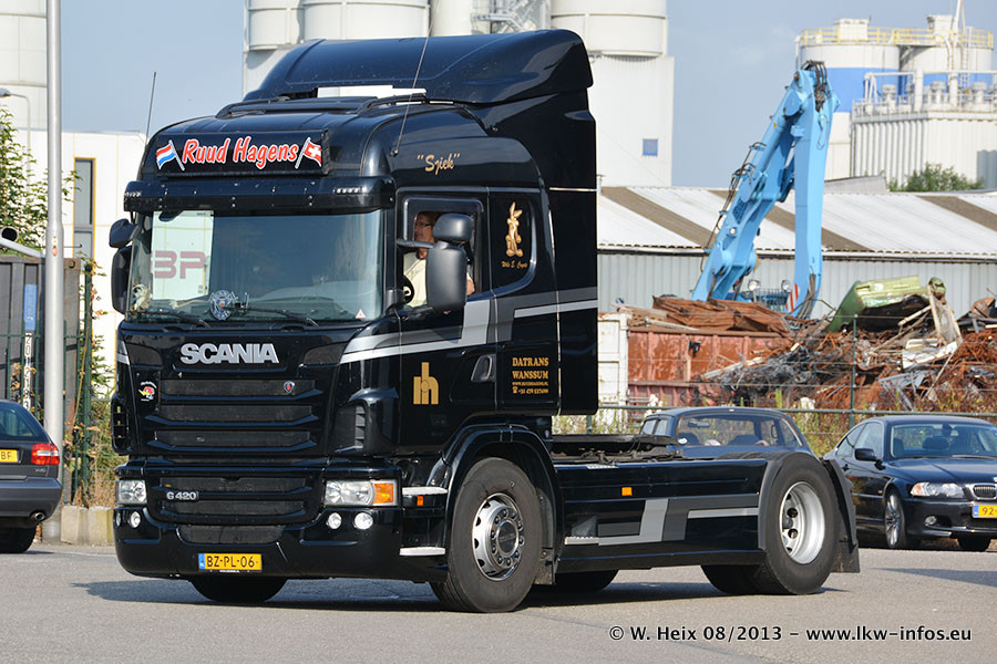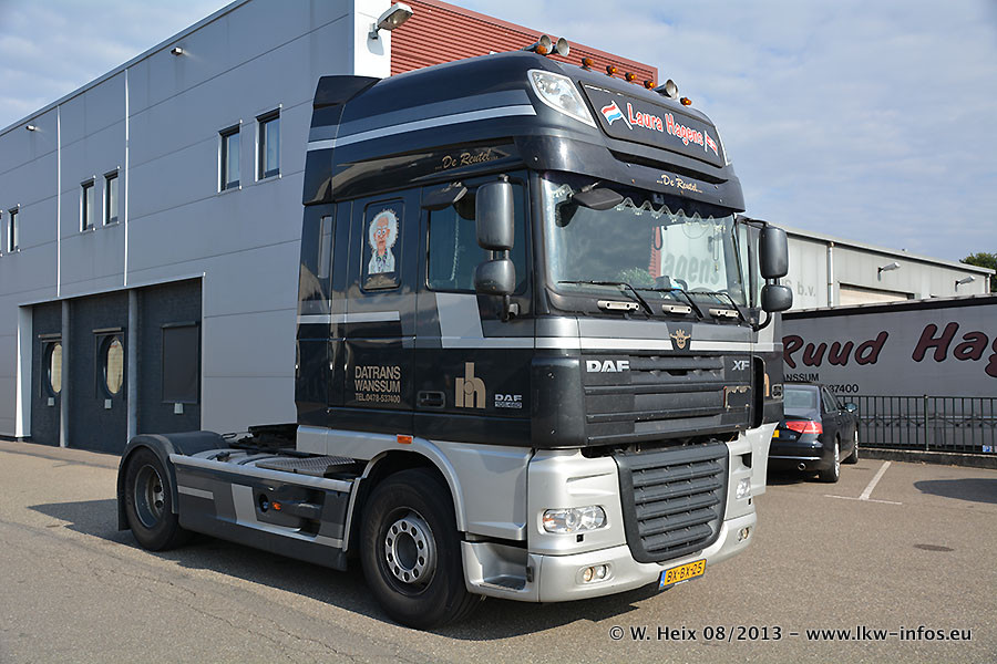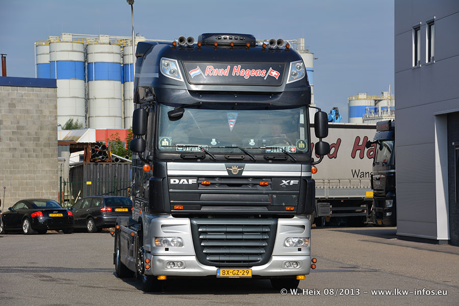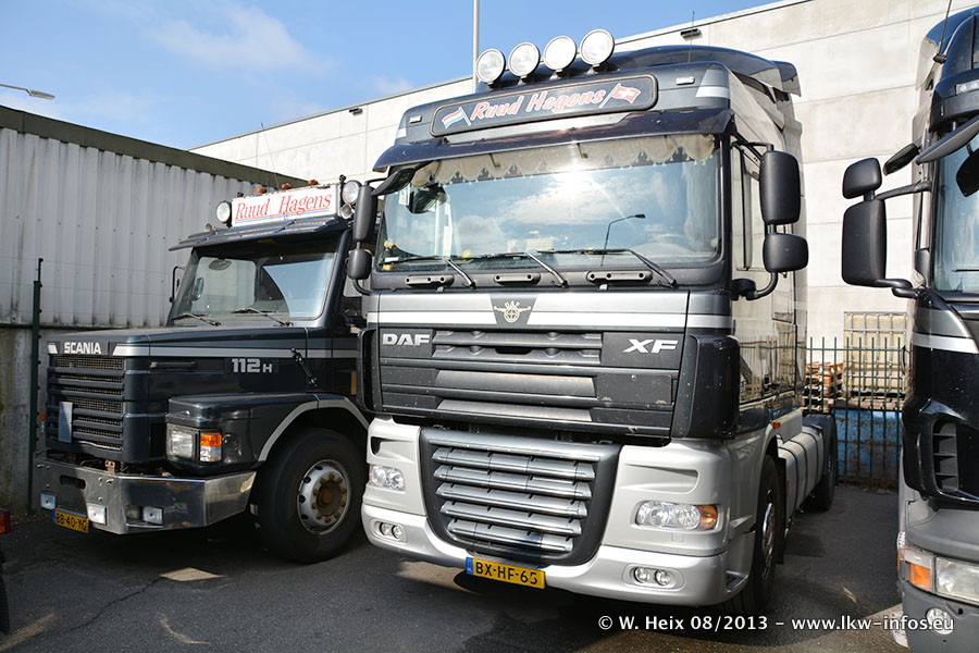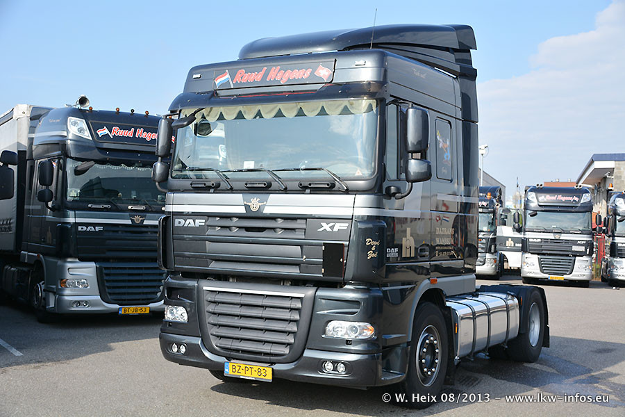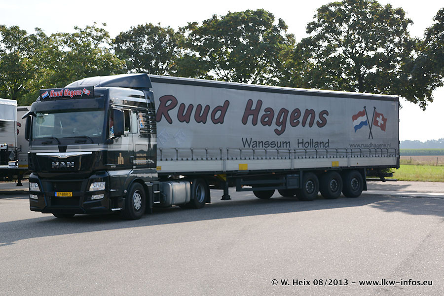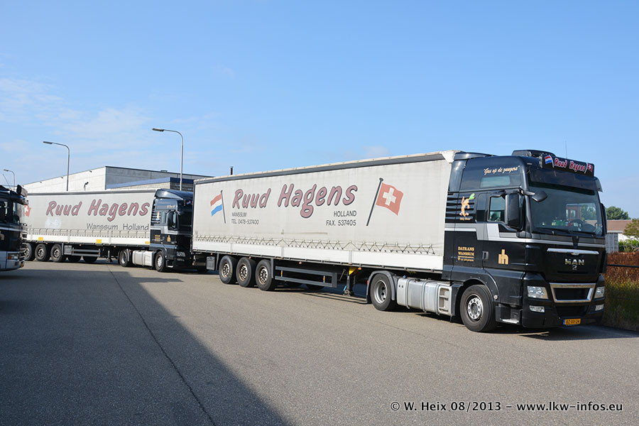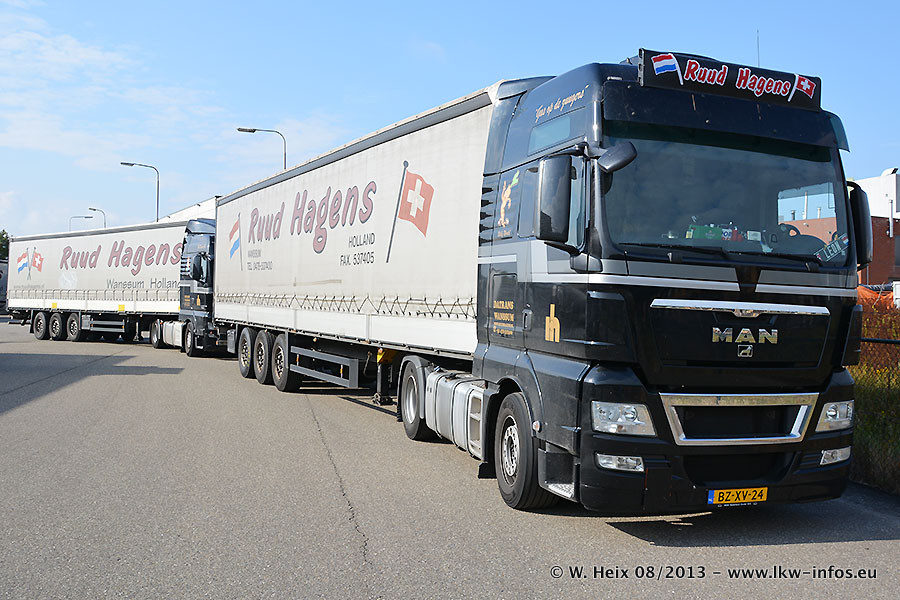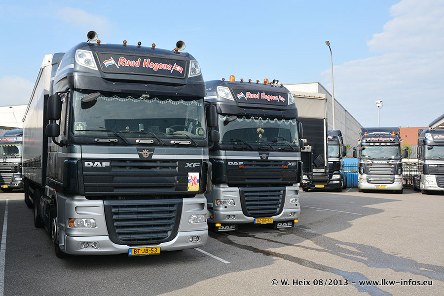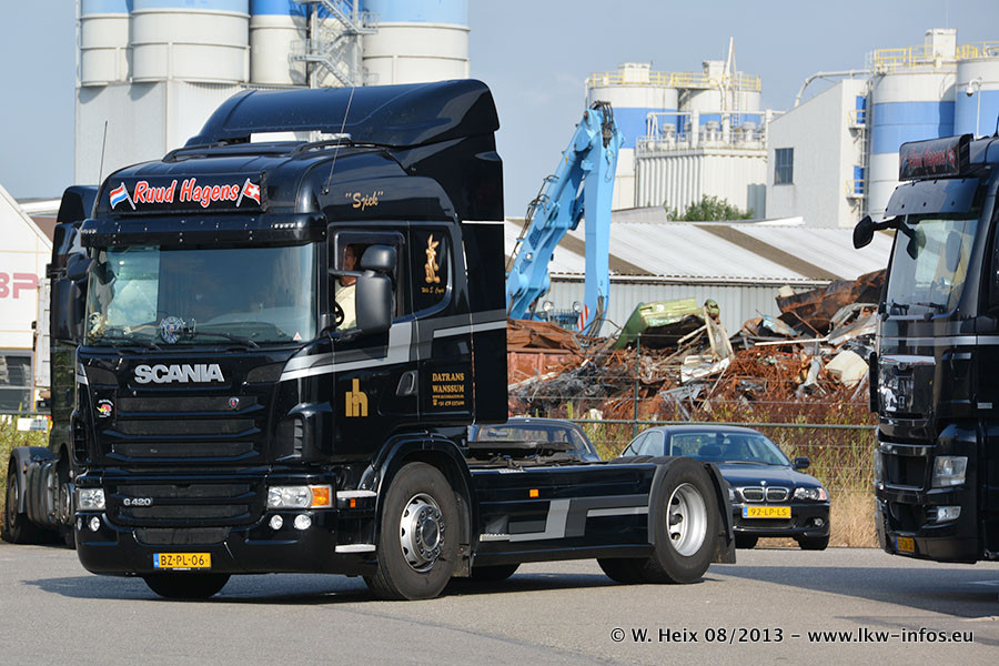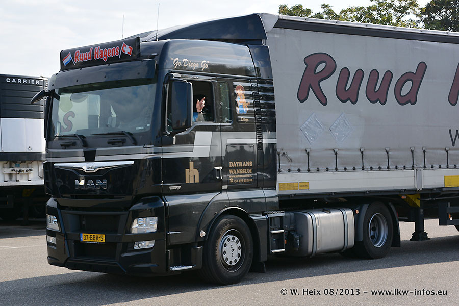 Die vier neuen Volvo New FH (FH 4) sind erst seit wenigen Tagen im Fuhrpark. Neu sind auch drei MAN New TGX (leider war nur einer da) sowie einzelne Scania New G und DAF XF 105. In den nächsten Wochen werden weitere Zugmaschinen durch neue ersetzt. Bilder folgen demnächst ..... Der schwarze Scania New R 500 V8 mit den blauen Streifen gehört inzwischen auch zu Fuhrpark. Der LKW wurde vor einiger Wochen von der Firma W. Gerrits aus Wellerlooi übernommen (siehe Modell 1:50 von Tekno - noch mit der alten Beschrifrung). Die Galerie enthält auch Bilder von Subunternehmer-Fahrzeugen.
