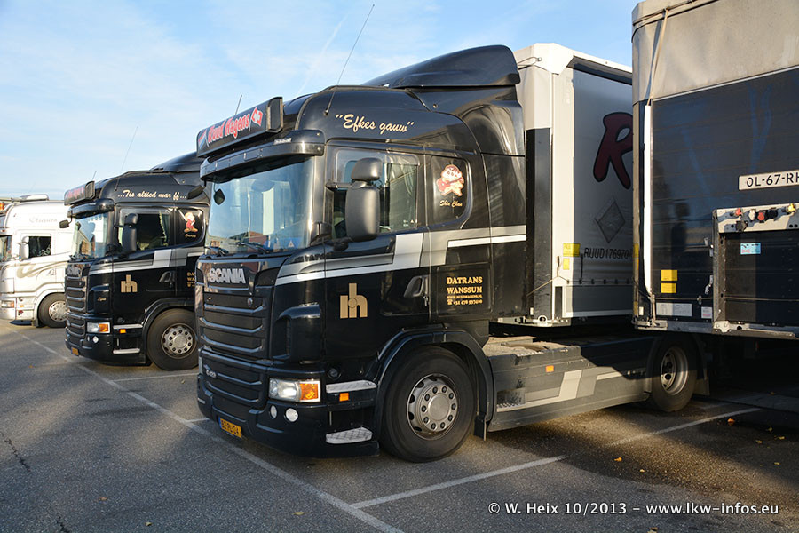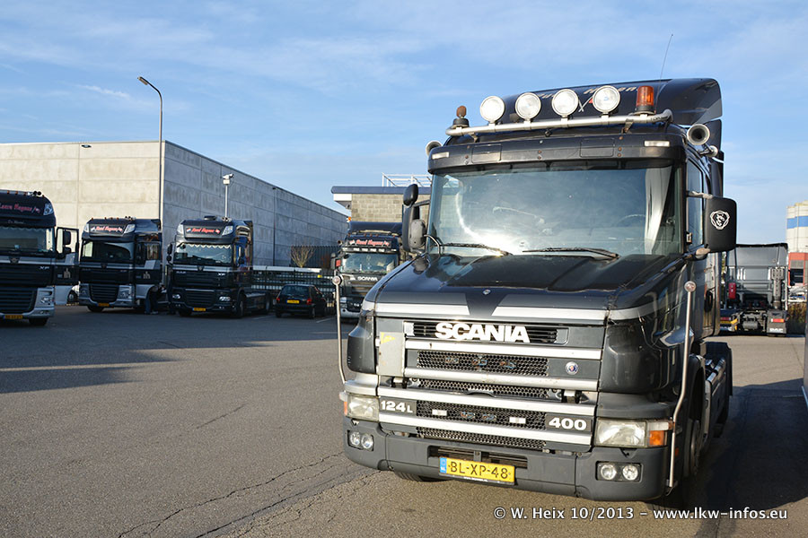 Seit meinem letzten Besuch im Juli dieses Jahres sind wieder weitere neue LKW im Furhpark: Zwei Scania R 450 Streamline, mindestens zwei Scania New G 420 und ein MAN TGX Euro 6. Die neuen Zugmaschinen sind jetzt komplett schwarz lackiert und auch die älteren DAF XF 105 werden nach und nach noch durch neue ersetzt. Die vier neuen Volvo New FH (FH 4) habe ich schon im Juli fotografiert, drei waren aber auch bei diesem Besuch zuhause.