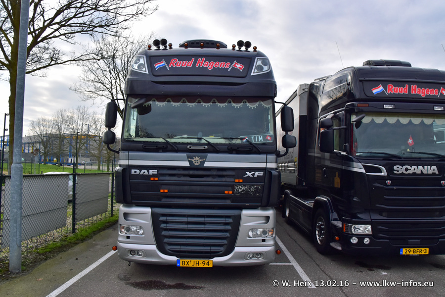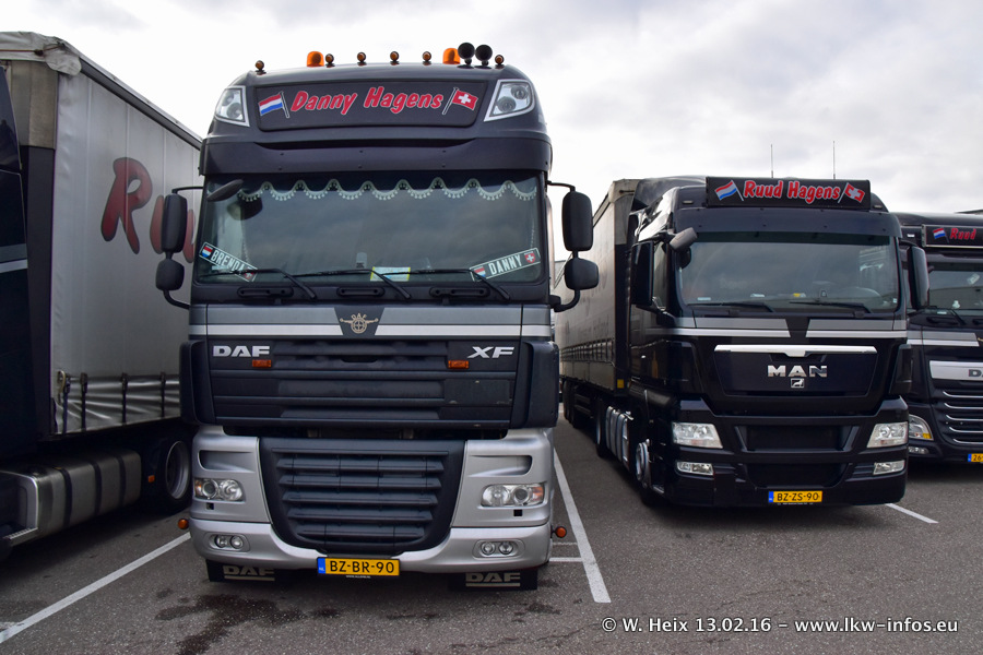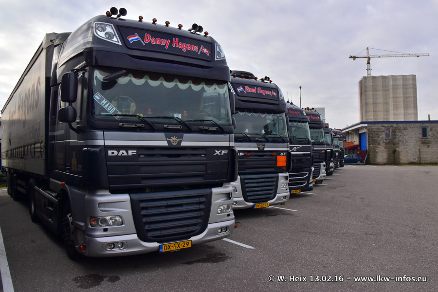 In der Zeit von November 2015 bis Februar 2016 hat die Frima Hagens mindestens fünf DAF New XF 105 Euro 6 bekommen. Die LKW sind zwar jaheszeitlich bedingt teilweise sehr schmutzig, aber trotzdem lohnt sich ein Besuch bei Hagens für mich immer!