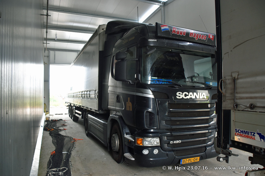 Diesmal sind mindestens weitere DAF XF Euro 6 neu im Fuhrpark, zu erkennen an den Kennzeicnen "BHH". Außerdem wurde das Firmengelände modernisiert: Es gibt jetzt eine eigene Tankstelle und die Waschanlage befindet sich im Umbau und bekommt eine "eigene Halle".