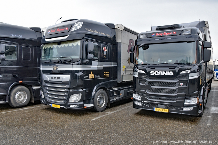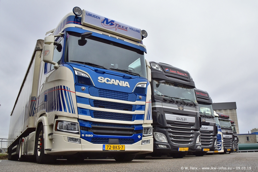 Die ersten neuen DAF New XF Euro 6 sind da und auch der erste von mehreren SCANIA S 500 NextGen stand (noch unbeschriftet und nicht angemeldet) in der Lagerhalle. In Kürze werden die nächsten SCANIA S 500 kommen. Die Galerie zeigt auch Bilder von Subunternehmern (Chartern). Die SCANIA und VOLVO "M-Trex" gehören mittlerweile zum Fuhrpark, wenn ich richtig informiert bin.