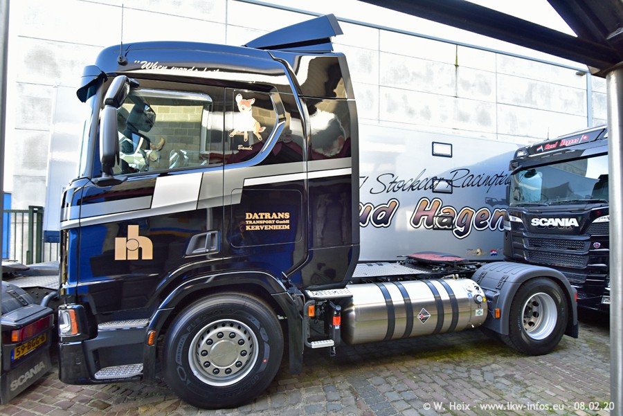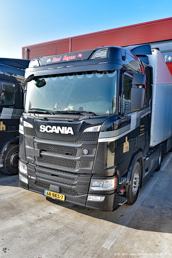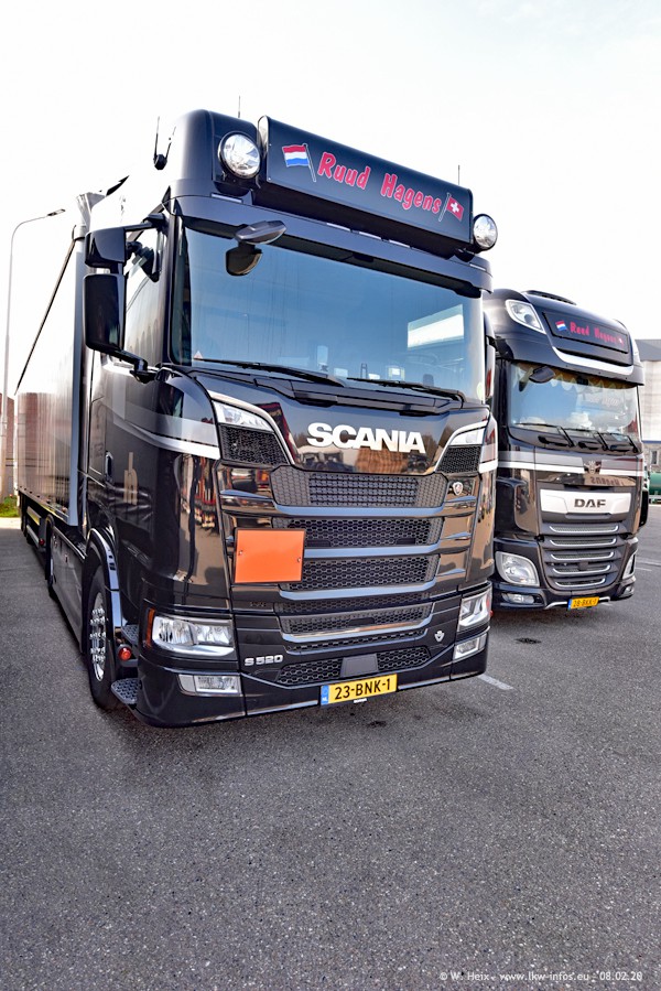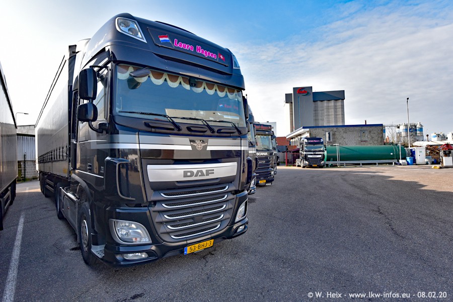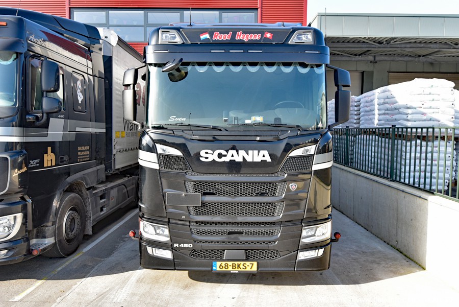 Geplant war dieser Besuch nicht. Aber das Wetter wurde immer besser und ich kam auf dem Heimweg von meiner Fototour "dran vorbei". Es hatte sich gelohnt! Der im September 2019 gekommene Mercedes-Benz New Actros 4 stand diesmal samt Auflieger schön mitten auf dem Hof für Fotos. Dazu kommen die ersten beiden SCANIA R 410 NextGen mit LNG, zugelassen auf die deutsche Niederlassung in Kevelaer-Kervenheim. Zwei der neuen VOLVO FH 4 "LNG" standen auch auf dem Hof. Die mit Erdgas betriebenen Fahrzeuge sind alle hier bei uns in Deutschland im Kreis Kleve zugelassen, genauer gesagt hier in meiner Heimatstadt Geldern (Kennzeichen GEL)