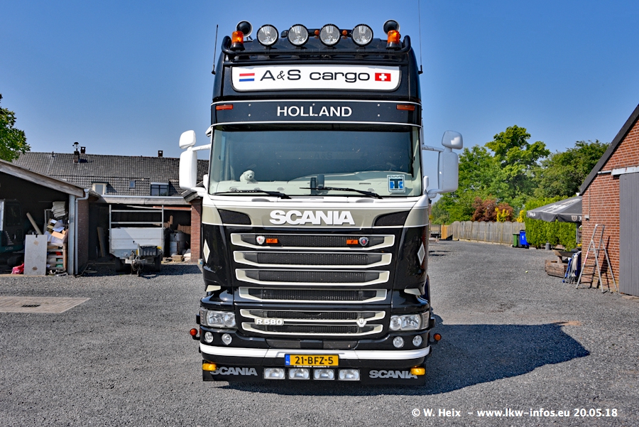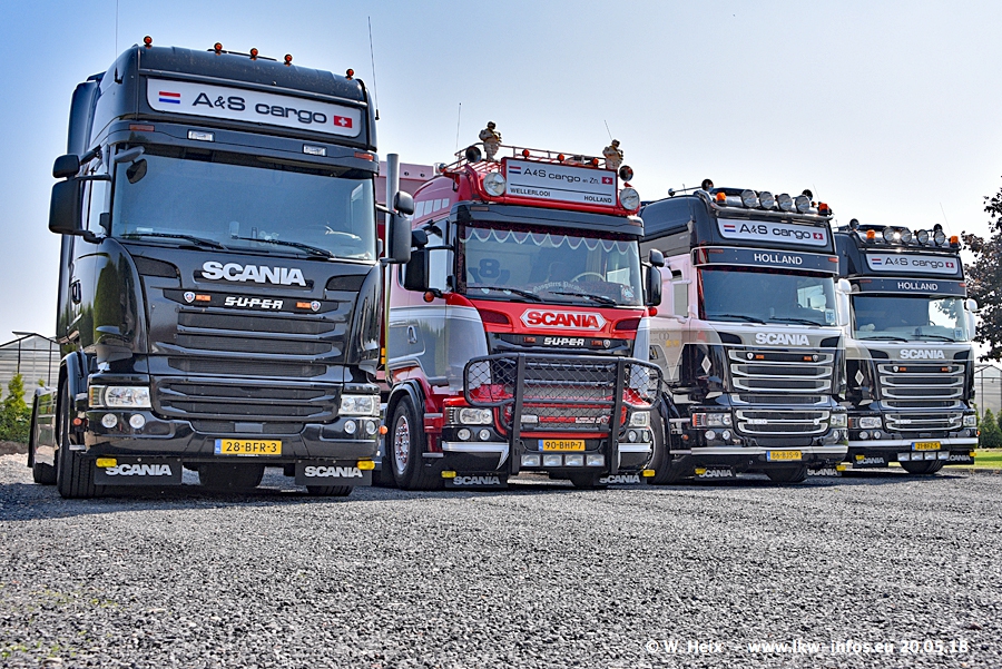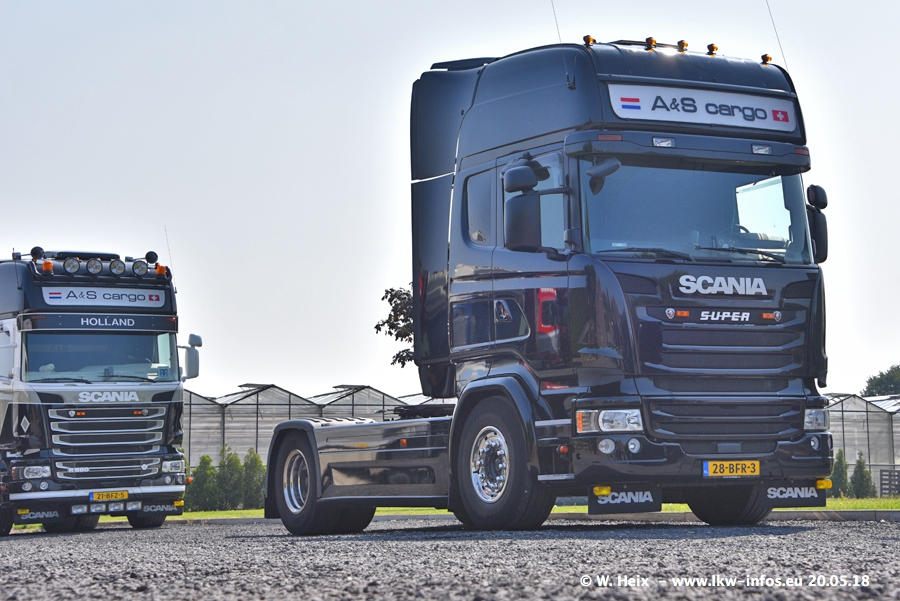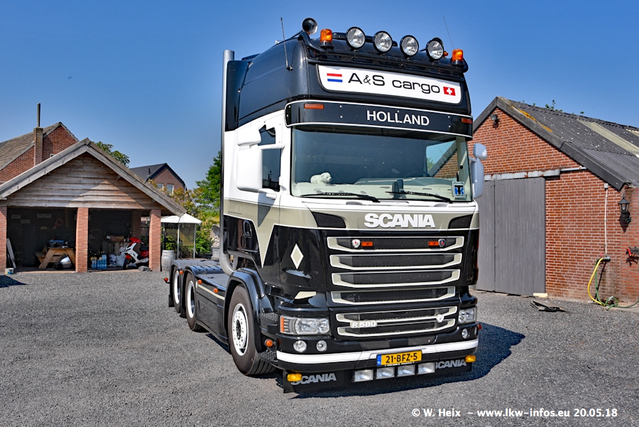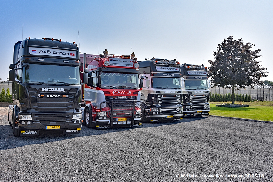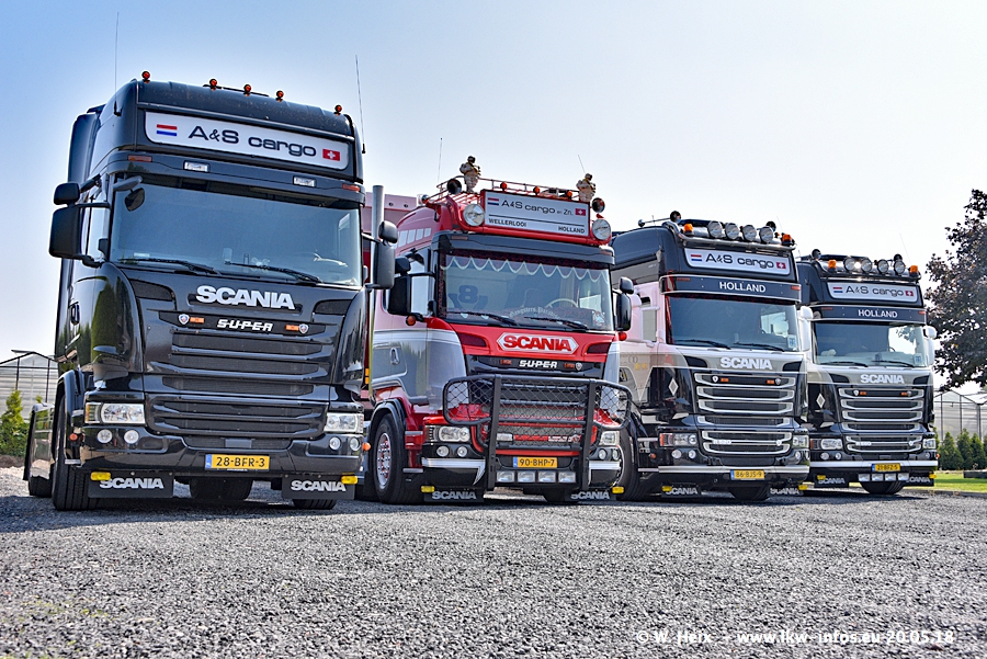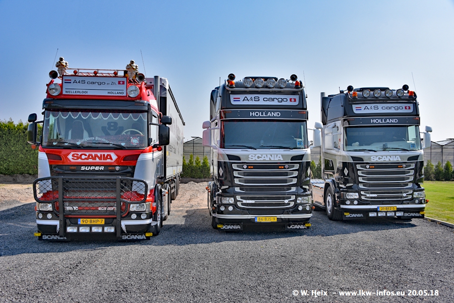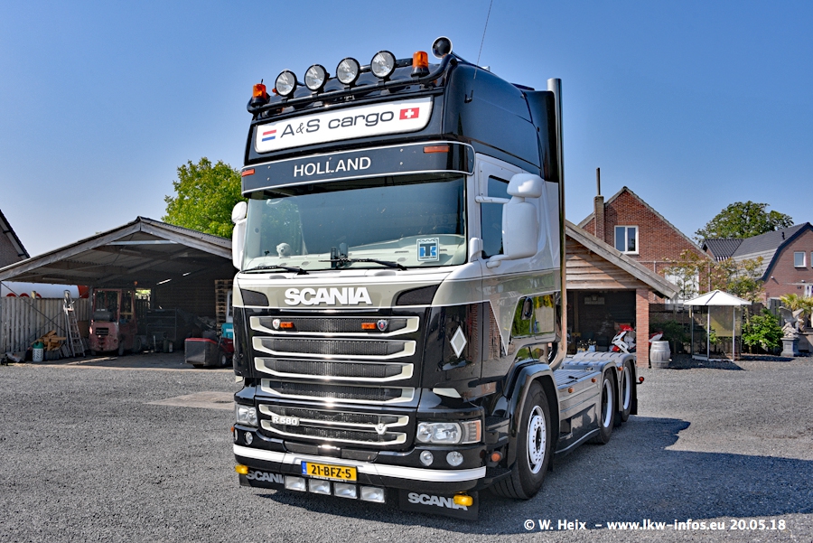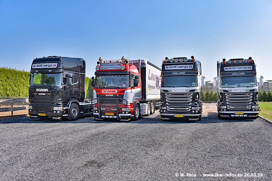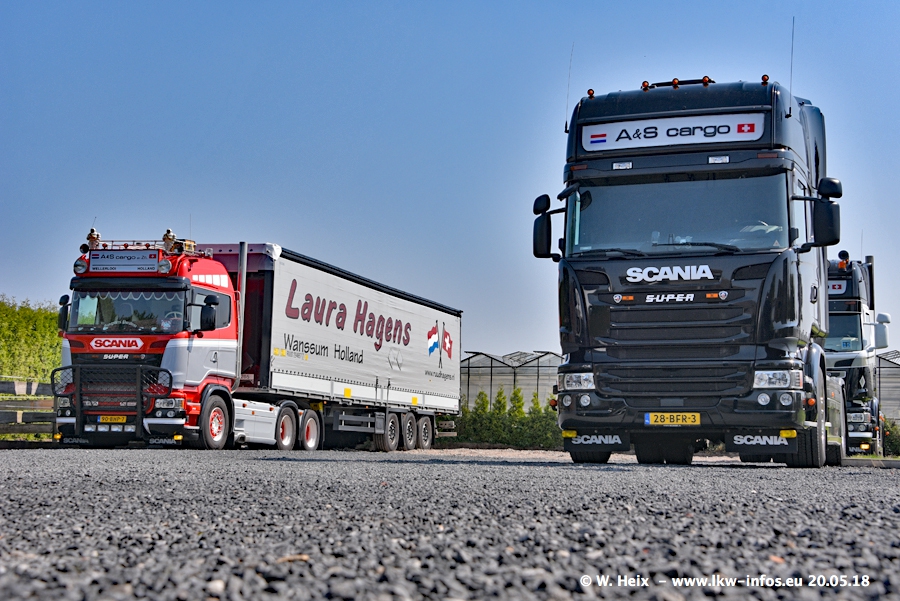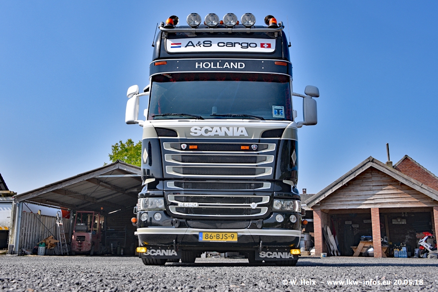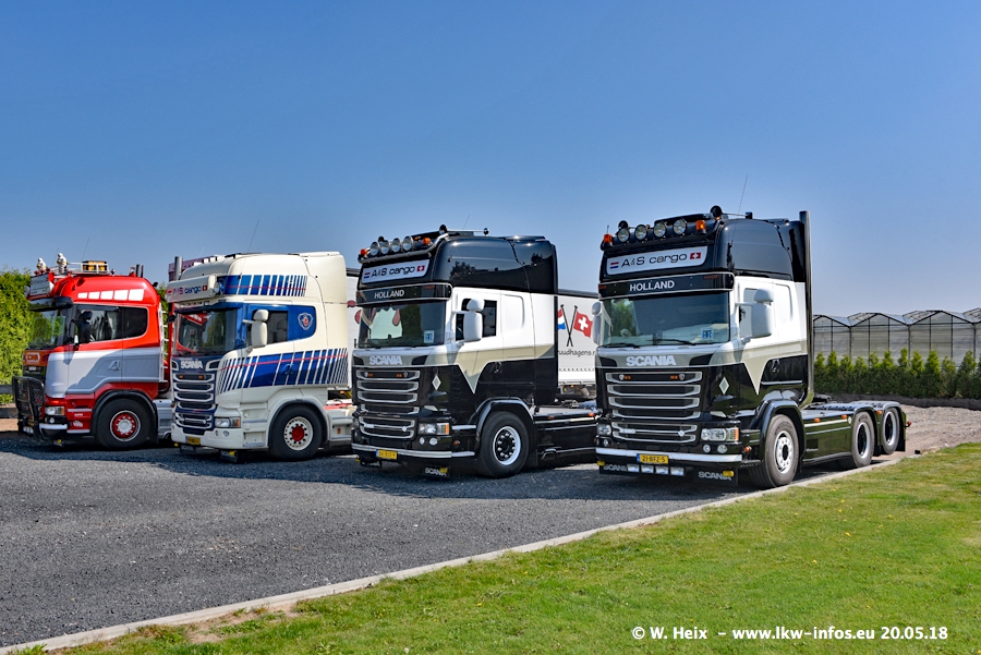 Wir haben ein kleines Fotoshooting bei A&S Cargo zuhause gemacht, wo die LKW am Wochenende stehen. Das sind aktuell 5 SCANIA: 1 schwarzer R 450 Streamline, ein R 520 V8 Streamline in den Farben von M-Trex, ein R 520 V8 Streamline in rot/grau/schwarz, ein R 520 V8 Streamline in A&S-Cargo-Farben und ein R 580 V8 Streamline in A&S-Cargo Farben. Es gibt mittlerweile keine eigenen Auflieger mehr. A&S Cargo fährt als Charter für die Firmen Kempen Transport und Ruud Hagens/Datrans und nutzt entsprechend deren Auflieger.