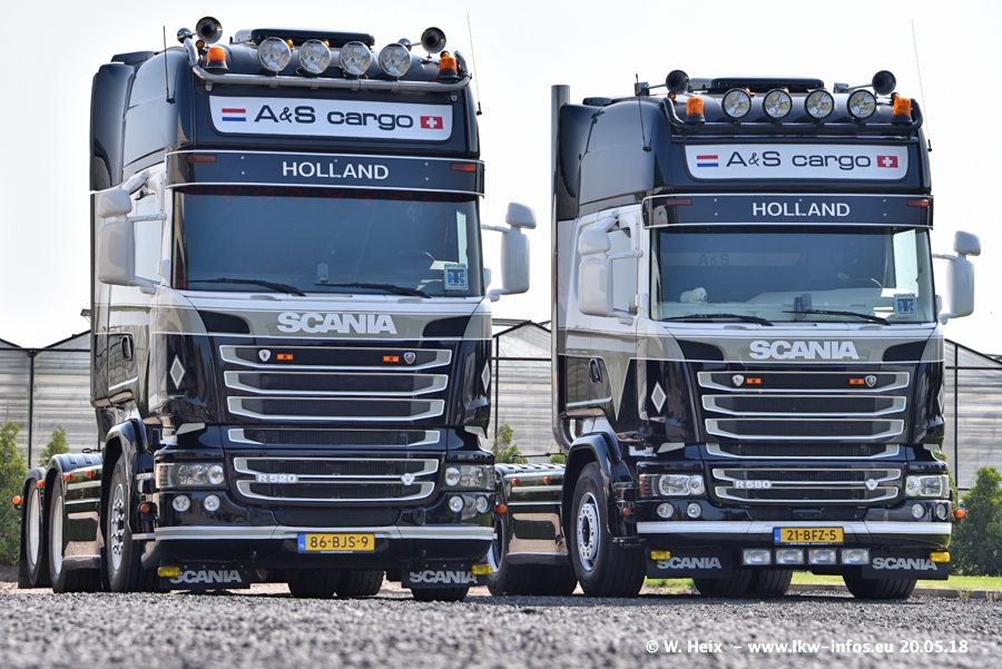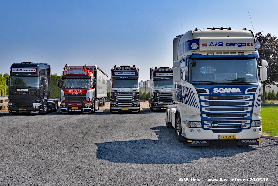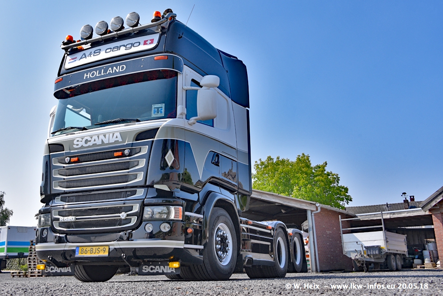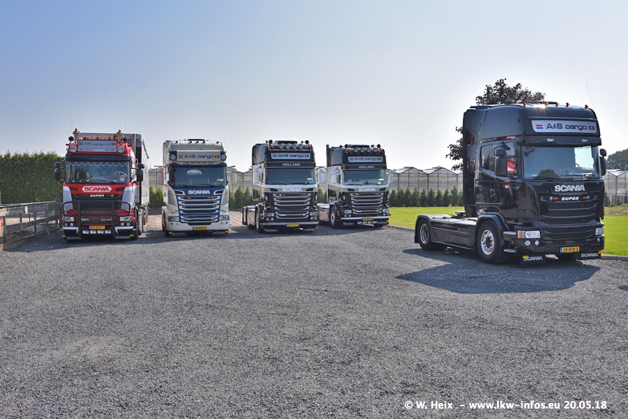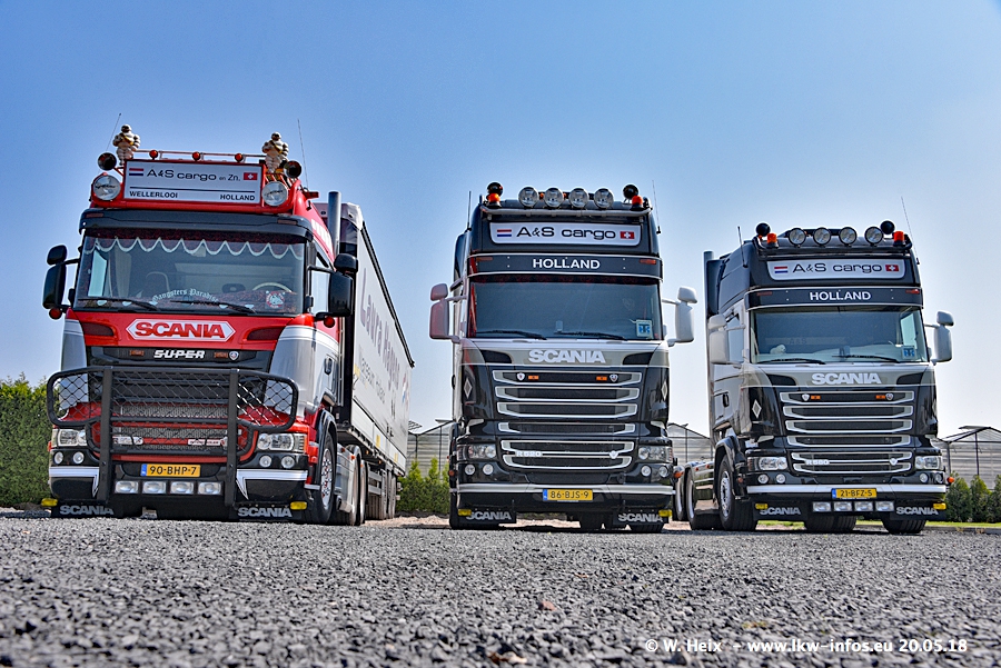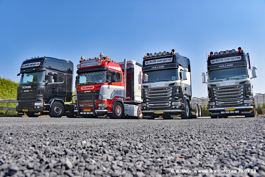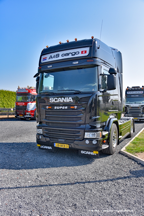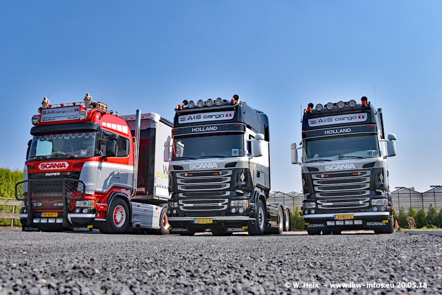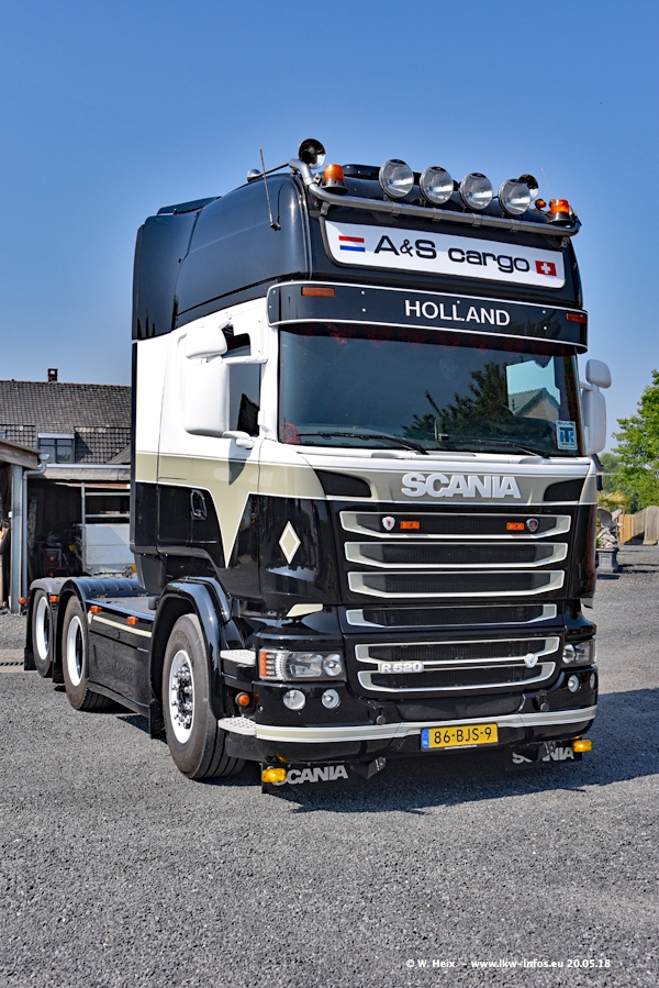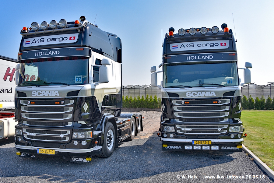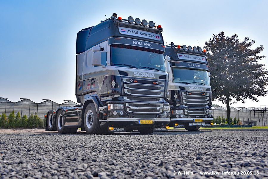 Wir haben ein kleines Fotoshooting bei A&S Cargo zuhause gemacht, wo die LKW am Wochenende stehen. Das sind aktuell 5 SCANIA: 1 schwarzer R 450 Streamline, ein R 520 V8 Streamline in den Farben von M-Trex, ein R 520 V8 Streamline in rot/grau/schwarz, ein R 520 V8 Streamline in A&S-Cargo-Farben und ein R 580 V8 Streamline in A&S-Cargo Farben. Es gibt mittlerweile keine eigenen Auflieger mehr. A&S Cargo fährt als Charter für die Firmen Kempen Transport und Ruud Hagens/Datrans und nutzt entsprechend deren Auflieger.