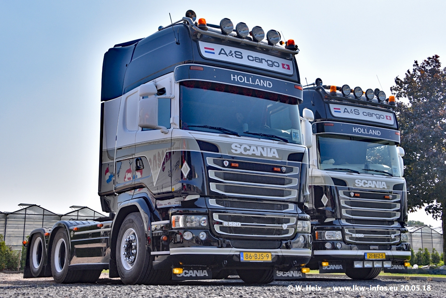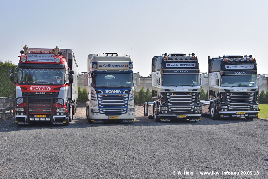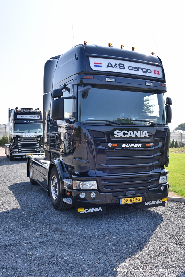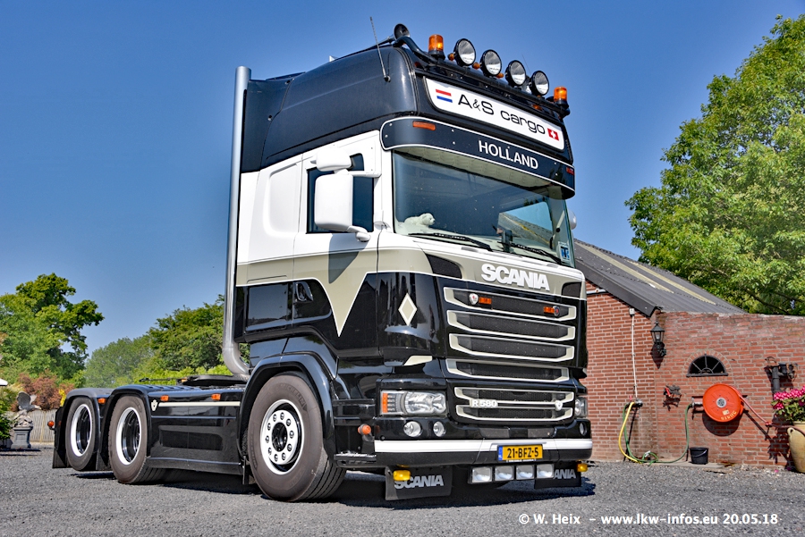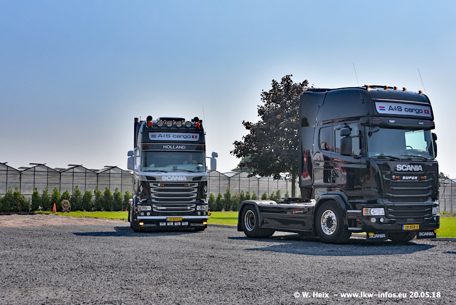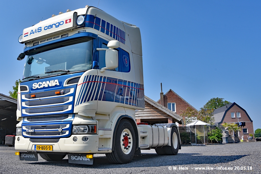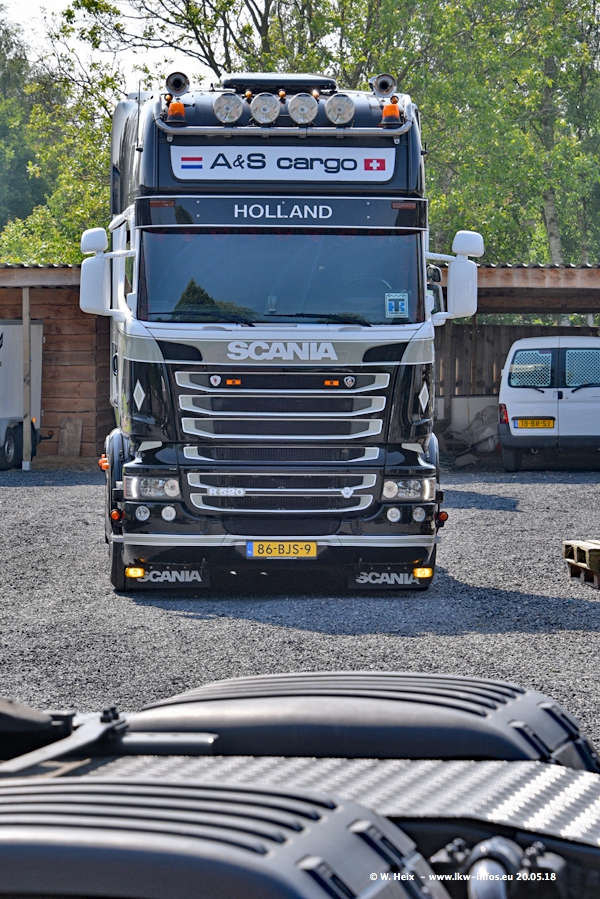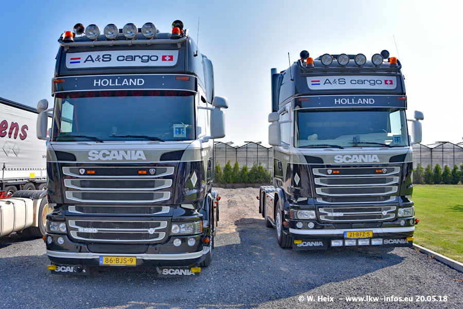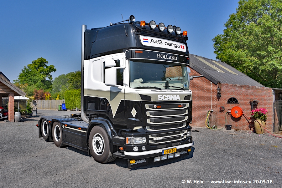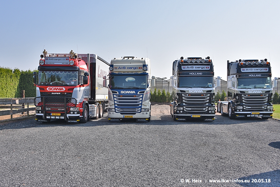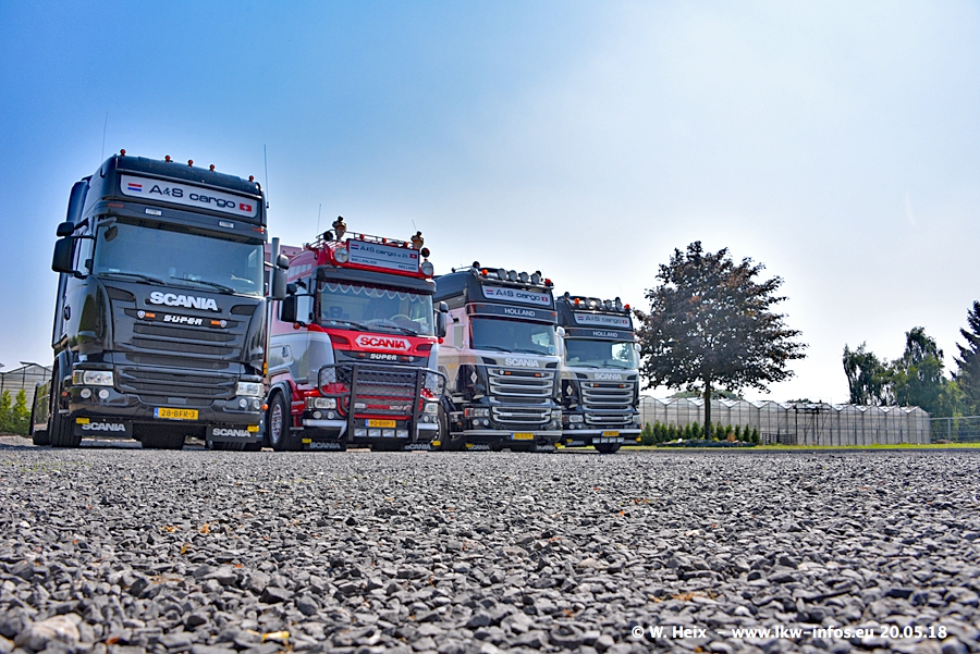 Wir haben ein kleines Fotoshooting bei A&S Cargo zuhause gemacht, wo die LKW am Wochenende stehen. Das sind aktuell 5 SCANIA: 1 schwarzer R 450 Streamline, ein R 520 V8 Streamline in den Farben von M-Trex, ein R 520 V8 Streamline in rot/grau/schwarz, ein R 520 V8 Streamline in A&S-Cargo-Farben und ein R 580 V8 Streamline in A&S-Cargo Farben. Es gibt mittlerweile keine eigenen Auflieger mehr. A&S Cargo fährt als Charter für die Firmen Kempen Transport und Ruud Hagens/Datrans und nutzt entsprechend deren Auflieger.