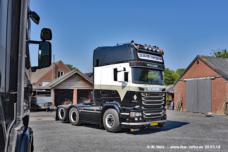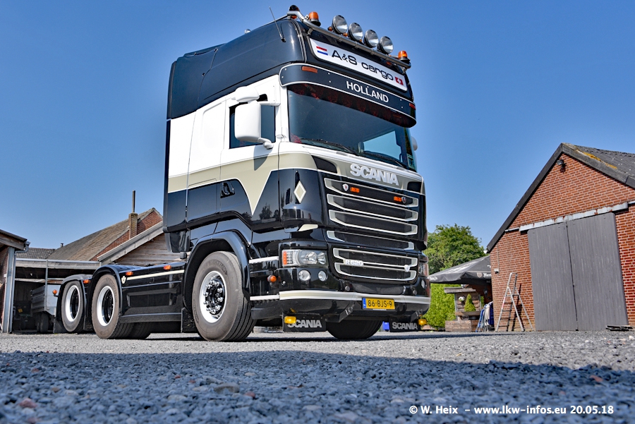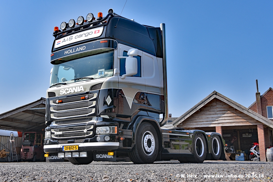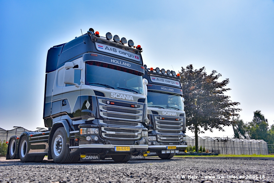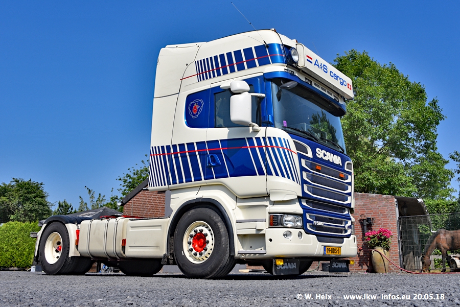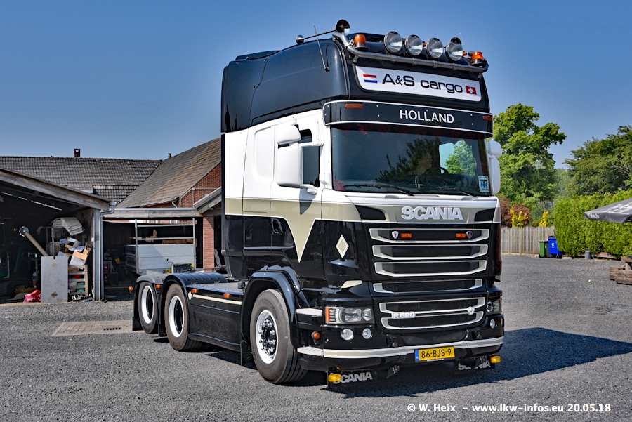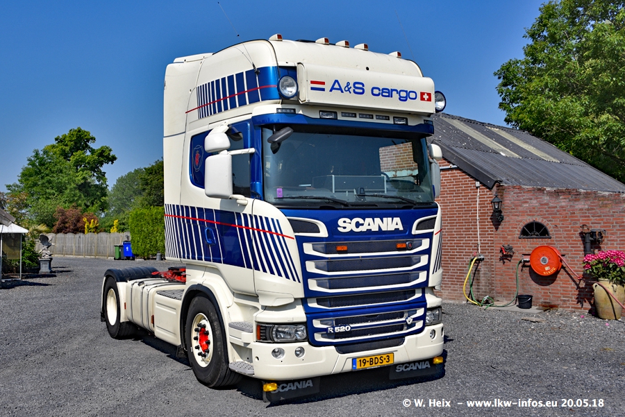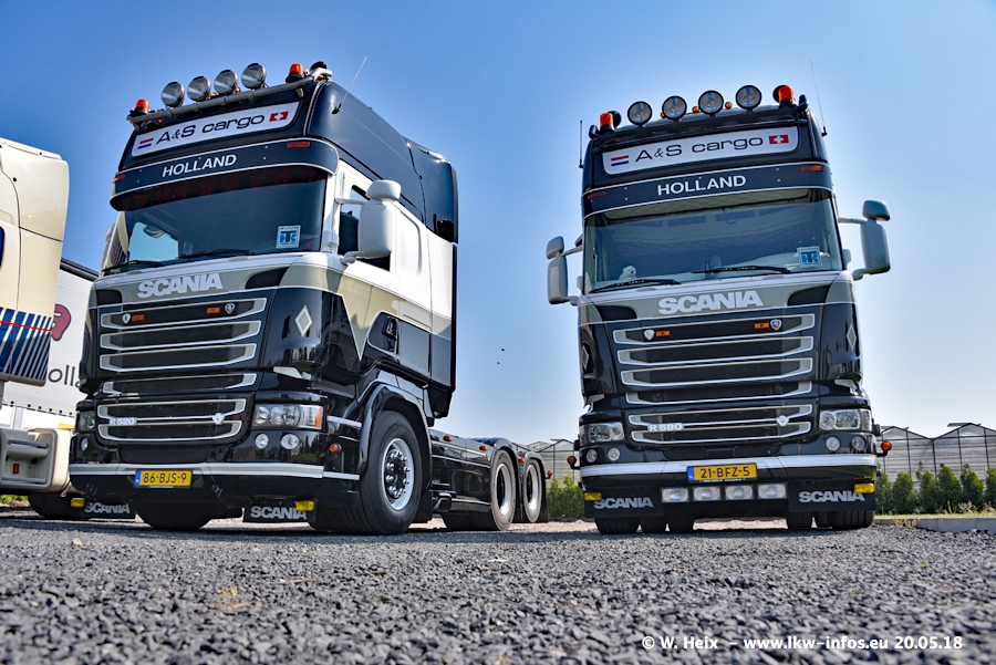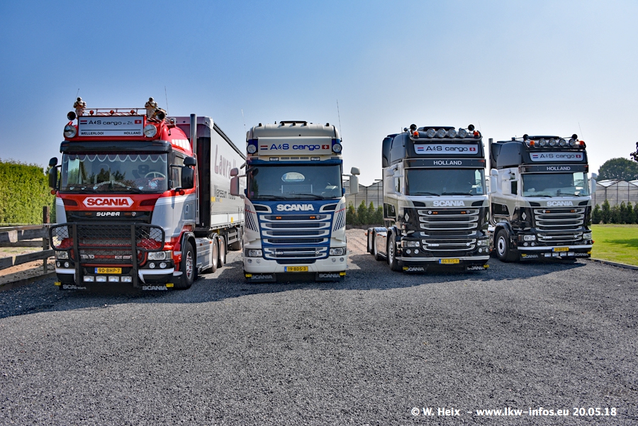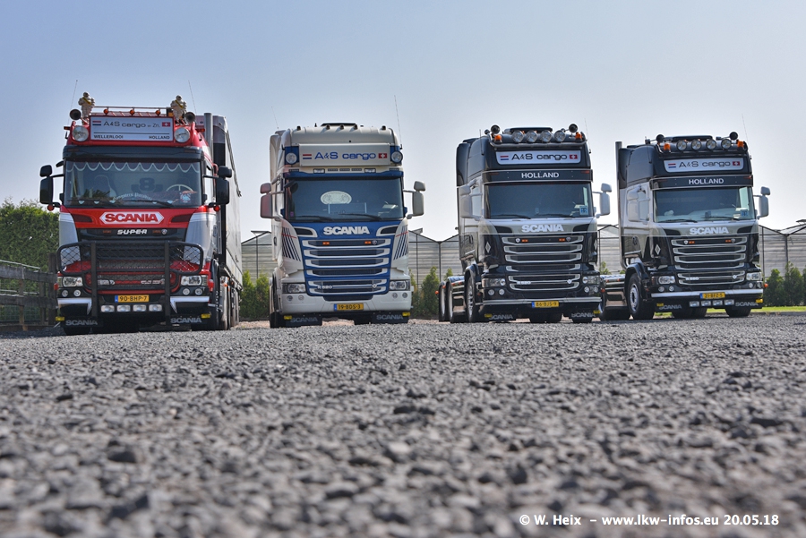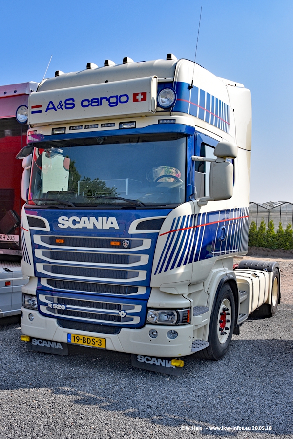 Wir haben ein kleines Fotoshooting bei A&S Cargo zuhause gemacht, wo die LKW am Wochenende stehen. Das sind aktuell 5 SCANIA: 1 schwarzer R 450 Streamline, ein R 520 V8 Streamline in den Farben von M-Trex, ein R 520 V8 Streamline in rot/grau/schwarz, ein R 520 V8 Streamline in A&S-Cargo-Farben und ein R 580 V8 Streamline in A&S-Cargo Farben. Es gibt mittlerweile keine eigenen Auflieger mehr. A&S Cargo fährt als Charter für die Firmen Kempen Transport und Ruud Hagens/Datrans und nutzt entsprechend deren Auflieger.