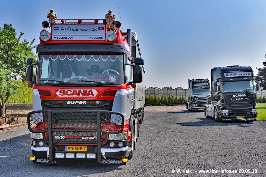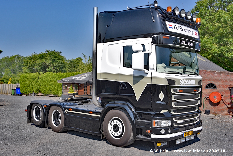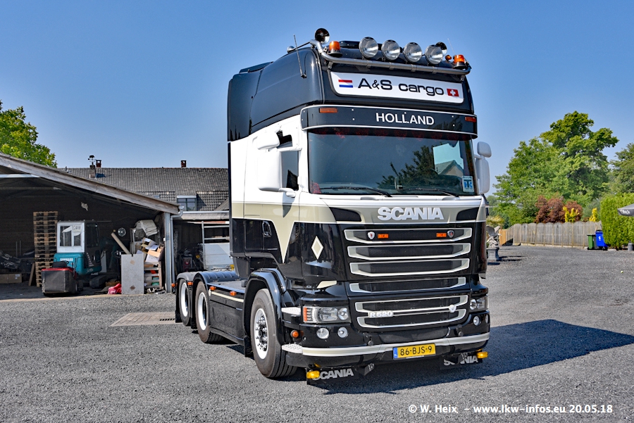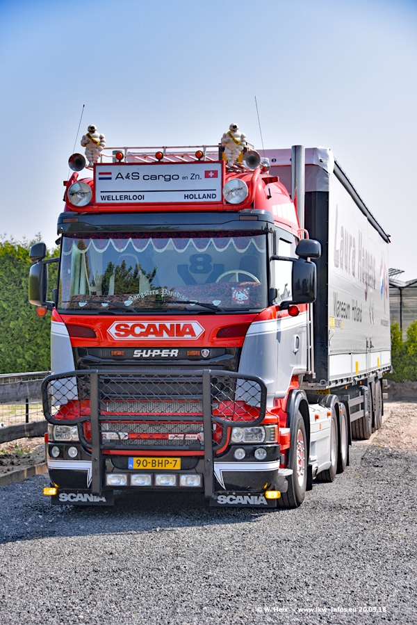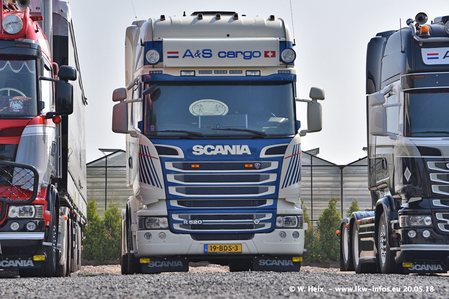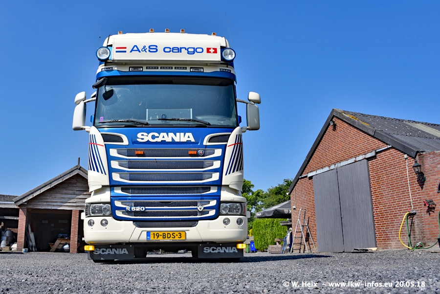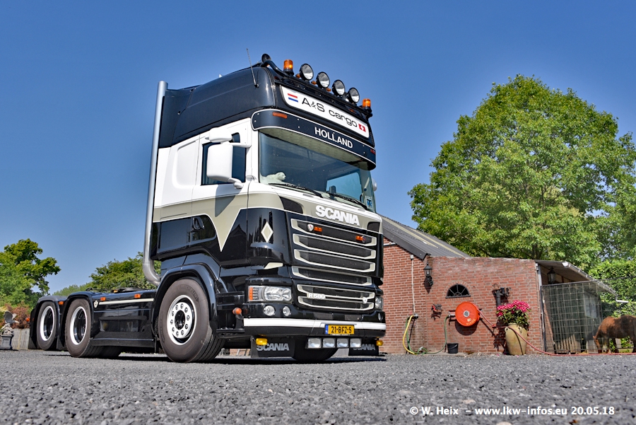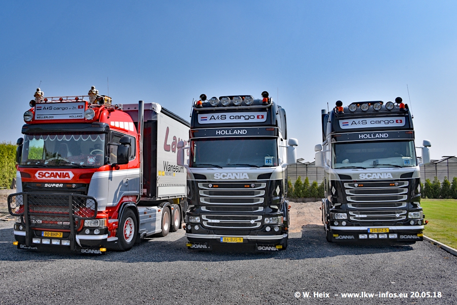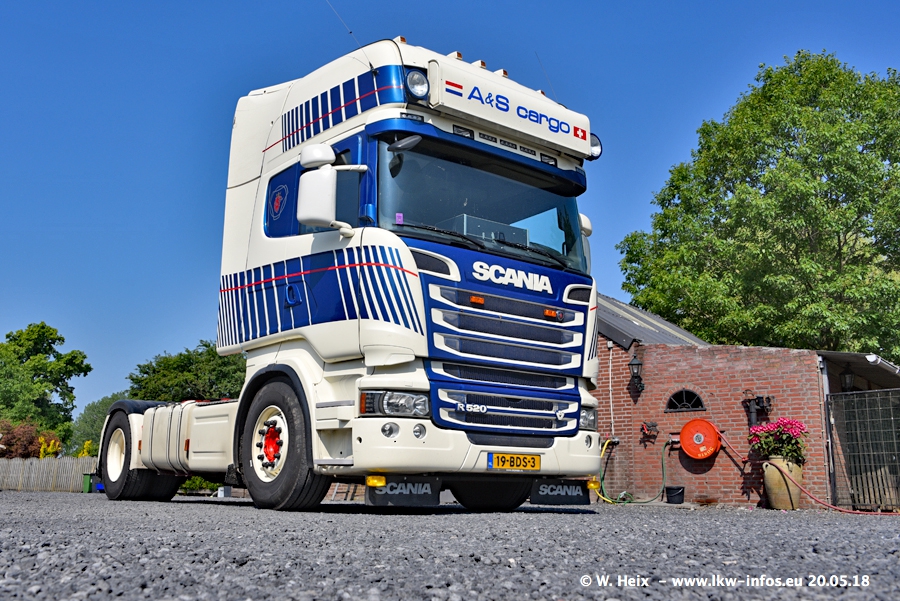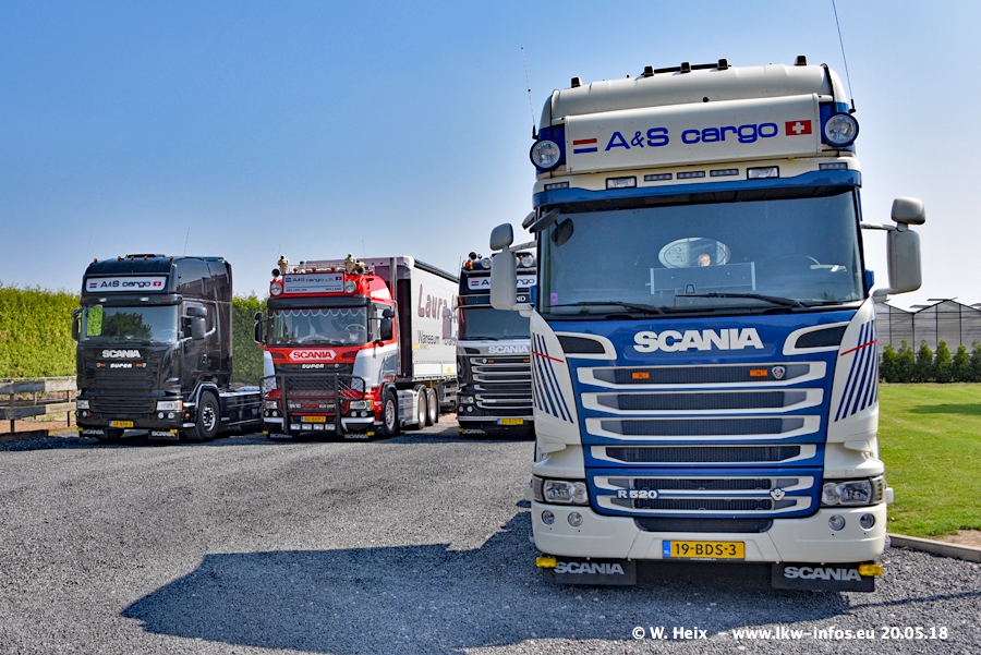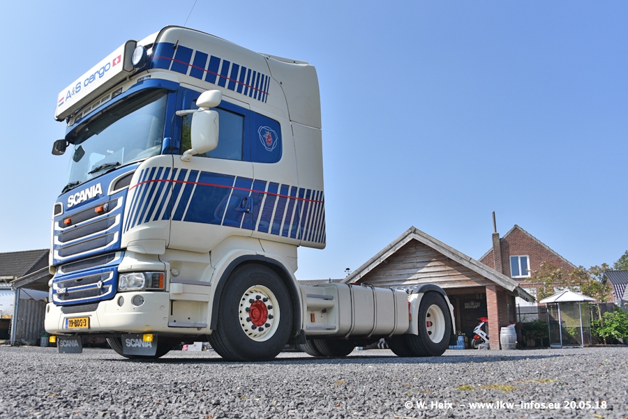 Wir haben ein kleines Fotoshooting bei A&S Cargo zuhause gemacht, wo die LKW am Wochenende stehen. Das sind aktuell 5 SCANIA: 1 schwarzer R 450 Streamline, ein R 520 V8 Streamline in den Farben von M-Trex, ein R 520 V8 Streamline in rot/grau/schwarz, ein R 520 V8 Streamline in A&S-Cargo-Farben und ein R 580 V8 Streamline in A&S-Cargo Farben. Es gibt mittlerweile keine eigenen Auflieger mehr. A&S Cargo fährt als Charter für die Firmen Kempen Transport und Ruud Hagens/Datrans und nutzt entsprechend deren Auflieger.
