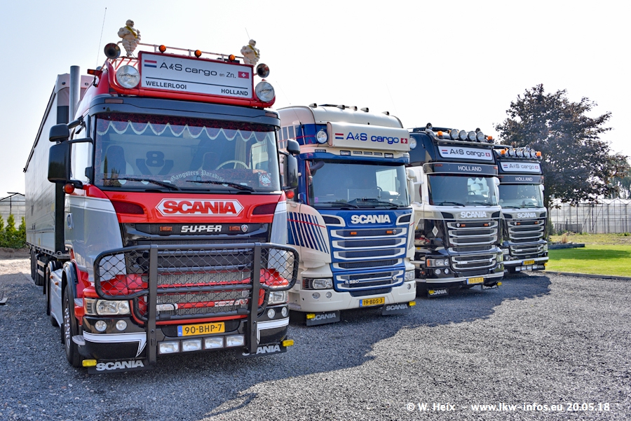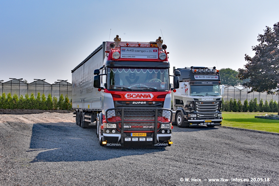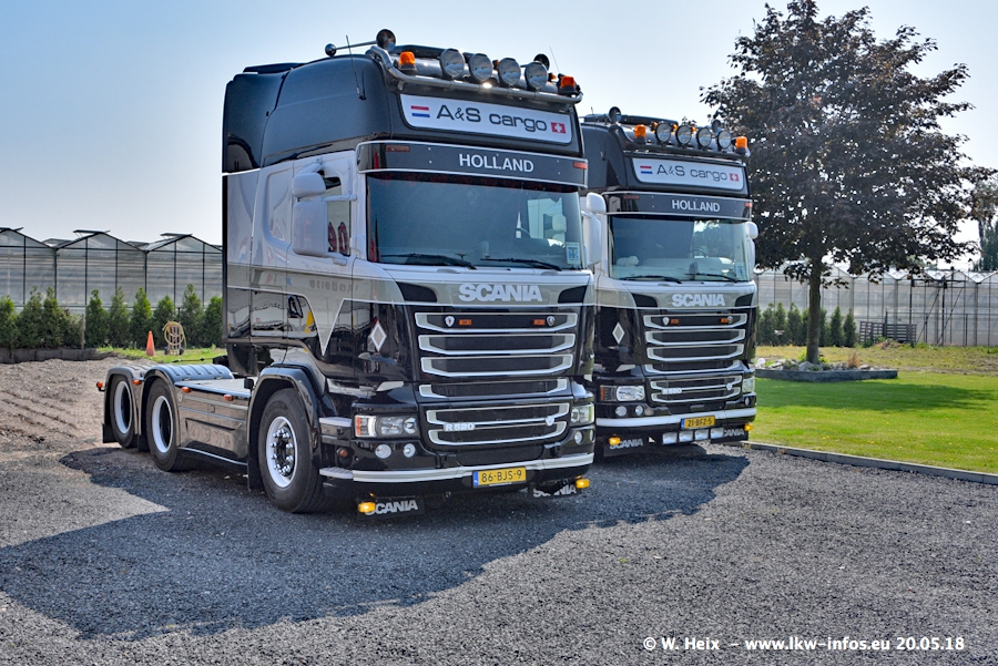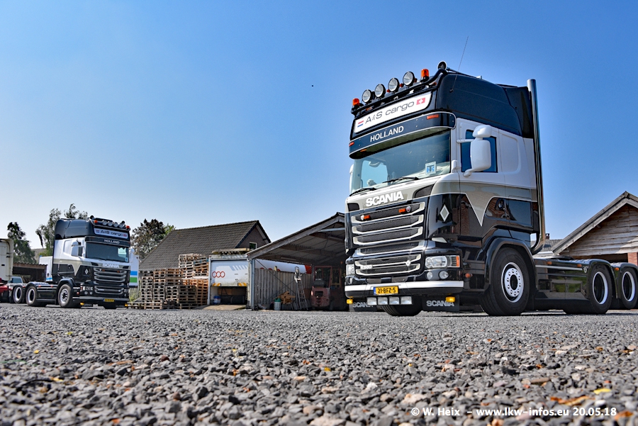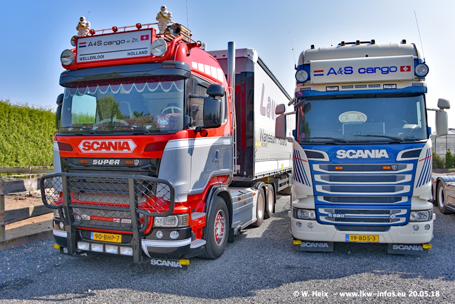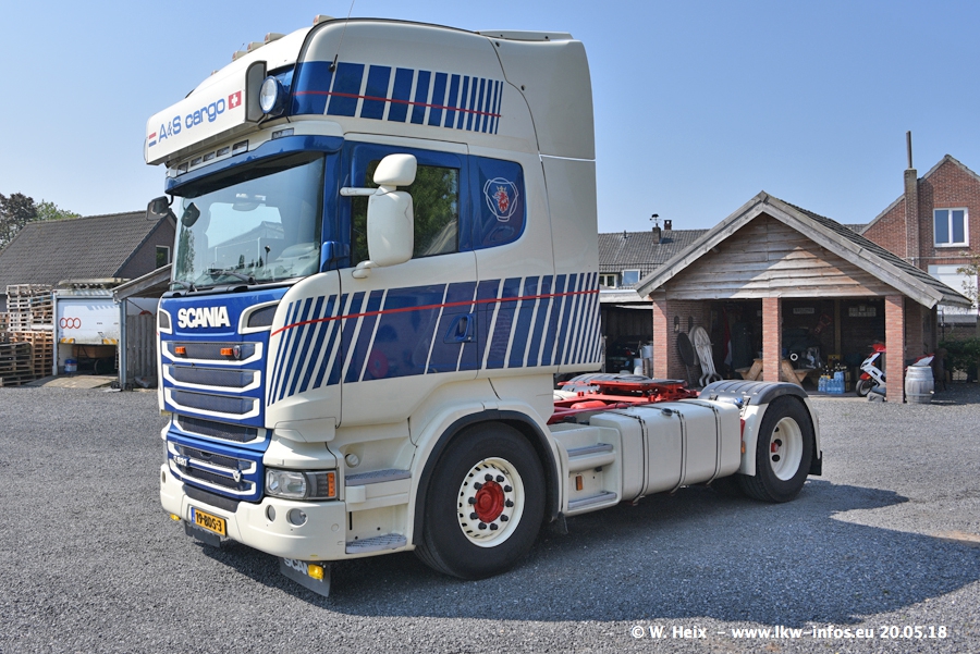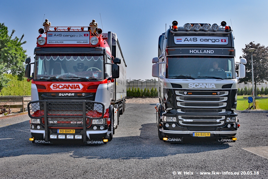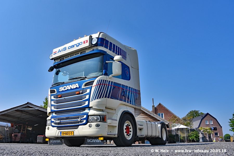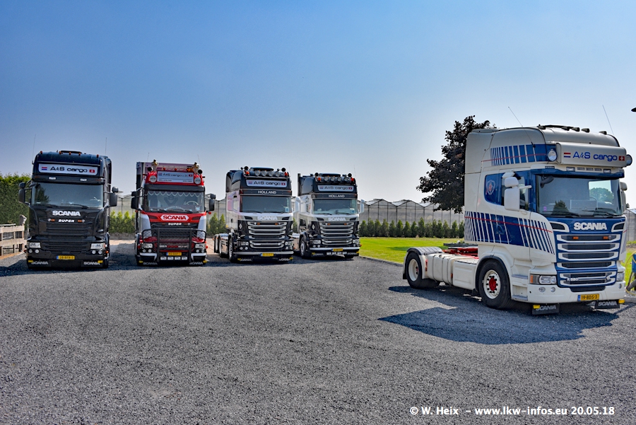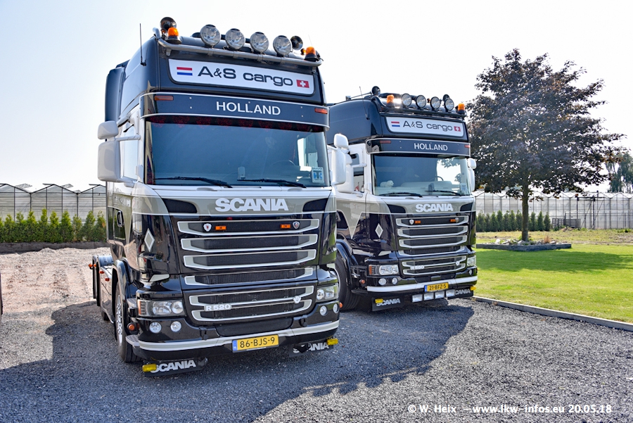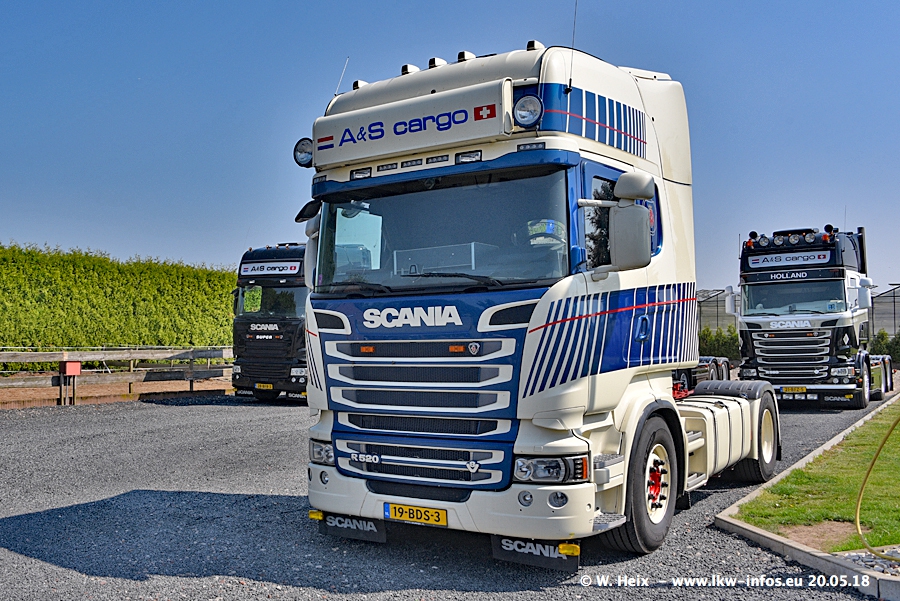 Wir haben ein kleines Fotoshooting bei A&S Cargo zuhause gemacht, wo die LKW am Wochenende stehen. Das sind aktuell 5 SCANIA: 1 schwarzer R 450 Streamline, ein R 520 V8 Streamline in den Farben von M-Trex, ein R 520 V8 Streamline in rot/grau/schwarz, ein R 520 V8 Streamline in A&S-Cargo-Farben und ein R 580 V8 Streamline in A&S-Cargo Farben. Es gibt mittlerweile keine eigenen Auflieger mehr. A&S Cargo fährt als Charter für die Firmen Kempen Transport und Ruud Hagens/Datrans und nutzt entsprechend deren Auflieger.