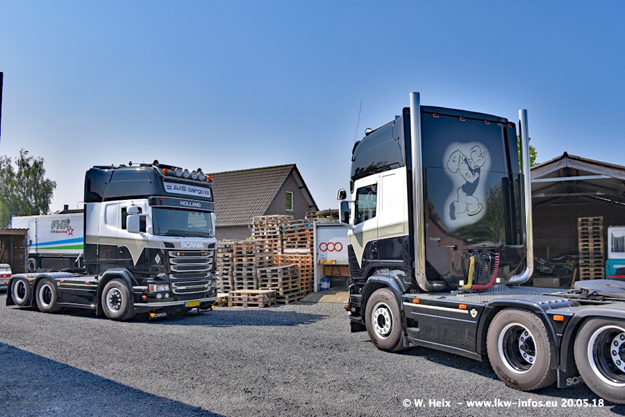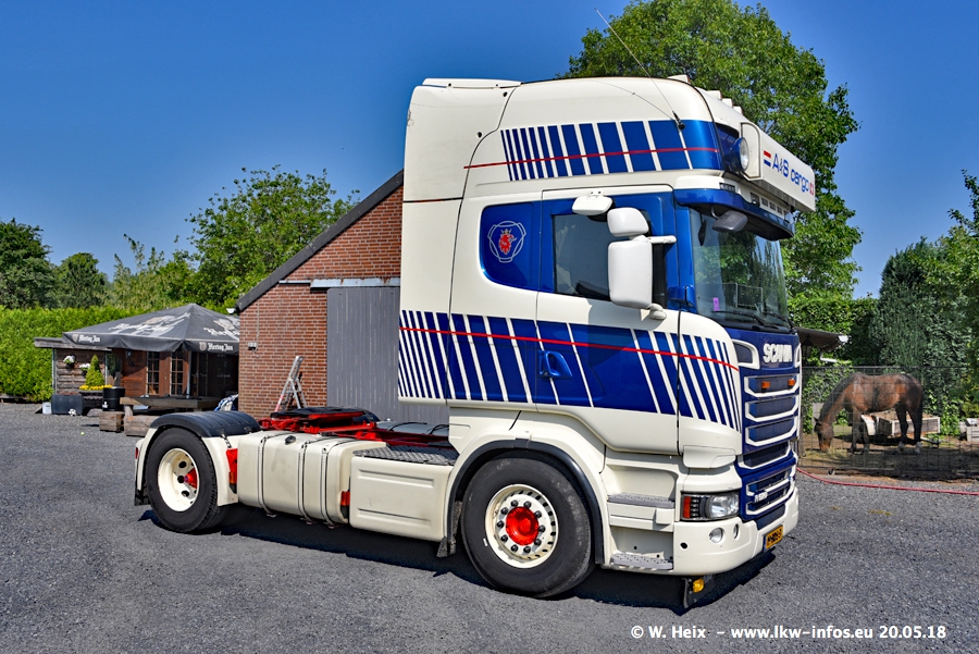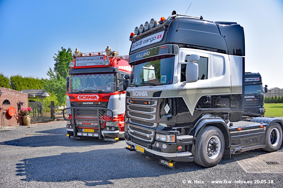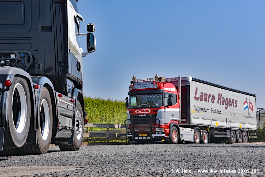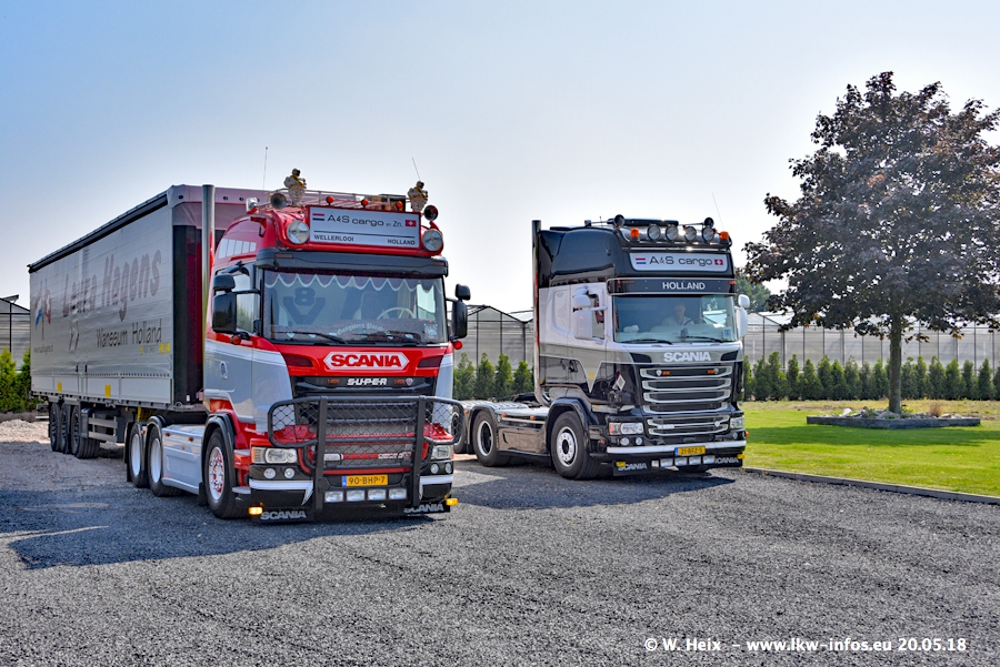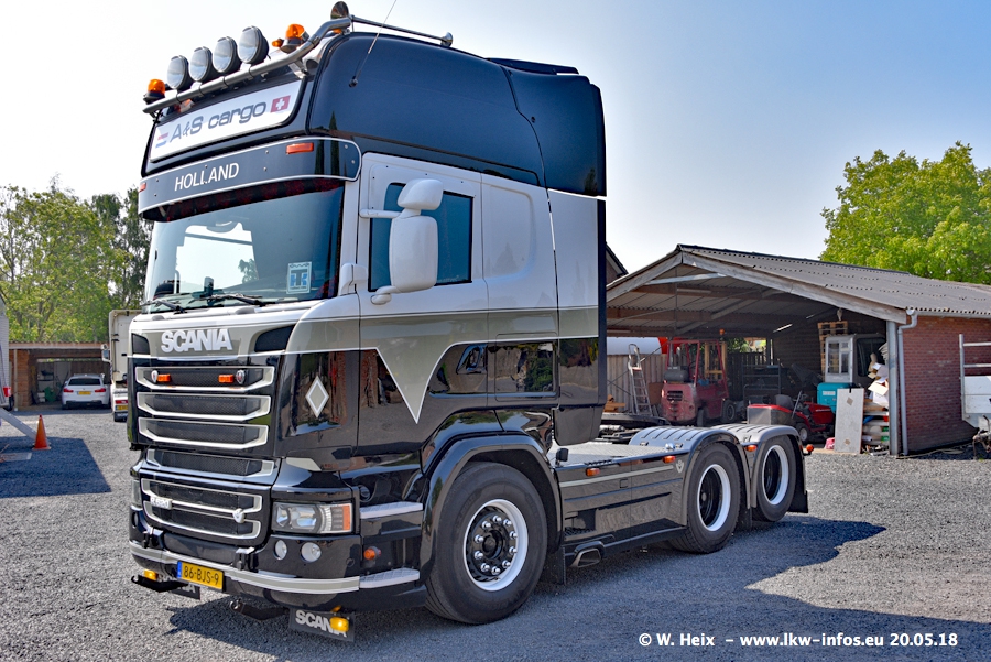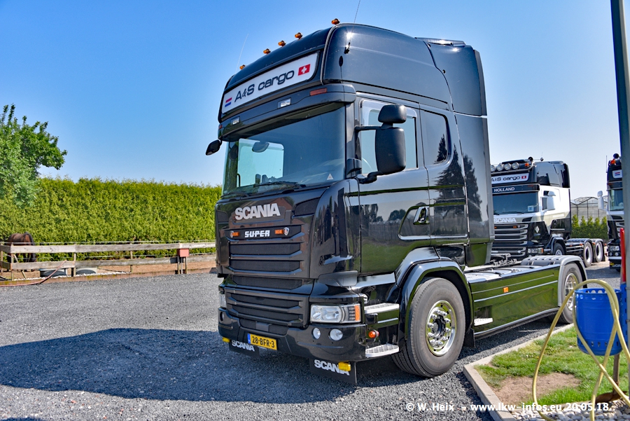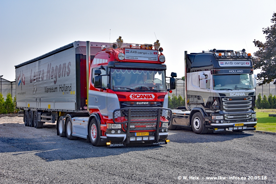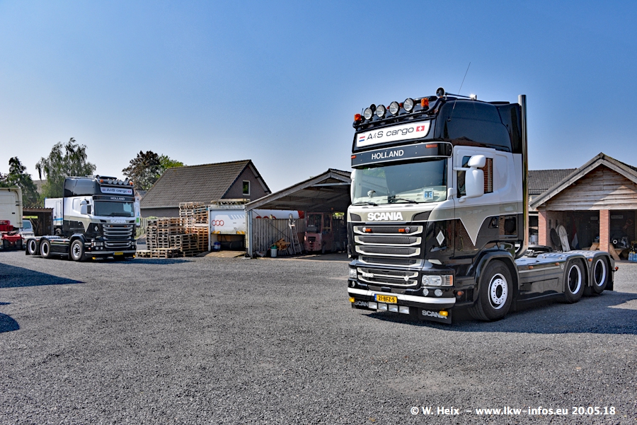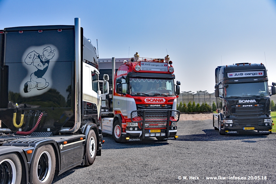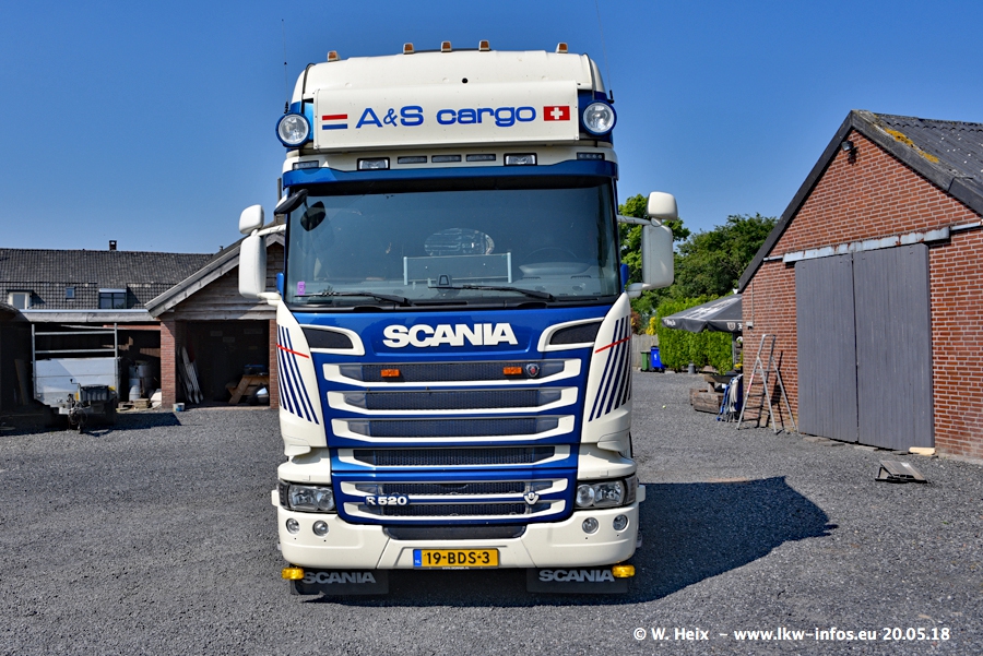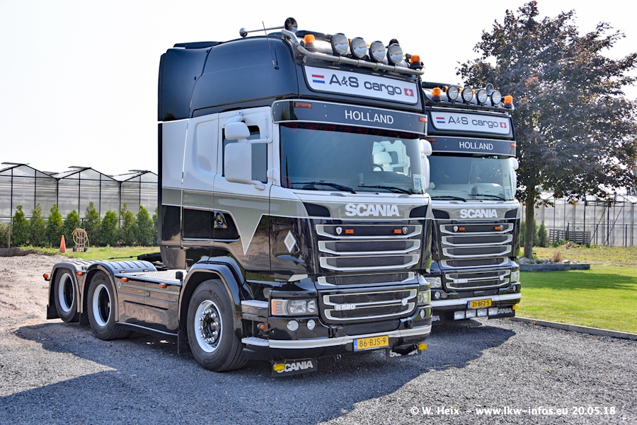 Wir haben ein kleines Fotoshooting bei A&S Cargo zuhause gemacht, wo die LKW am Wochenende stehen. Das sind aktuell 5 SCANIA: 1 schwarzer R 450 Streamline, ein R 520 V8 Streamline in den Farben von M-Trex, ein R 520 V8 Streamline in rot/grau/schwarz, ein R 520 V8 Streamline in A&S-Cargo-Farben und ein R 580 V8 Streamline in A&S-Cargo Farben. Es gibt mittlerweile keine eigenen Auflieger mehr. A&S Cargo fährt als Charter für die Firmen Kempen Transport und Ruud Hagens/Datrans und nutzt entsprechend deren Auflieger.