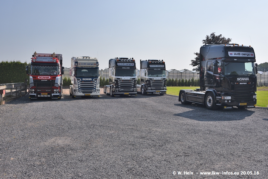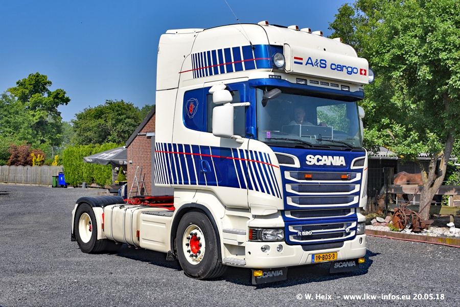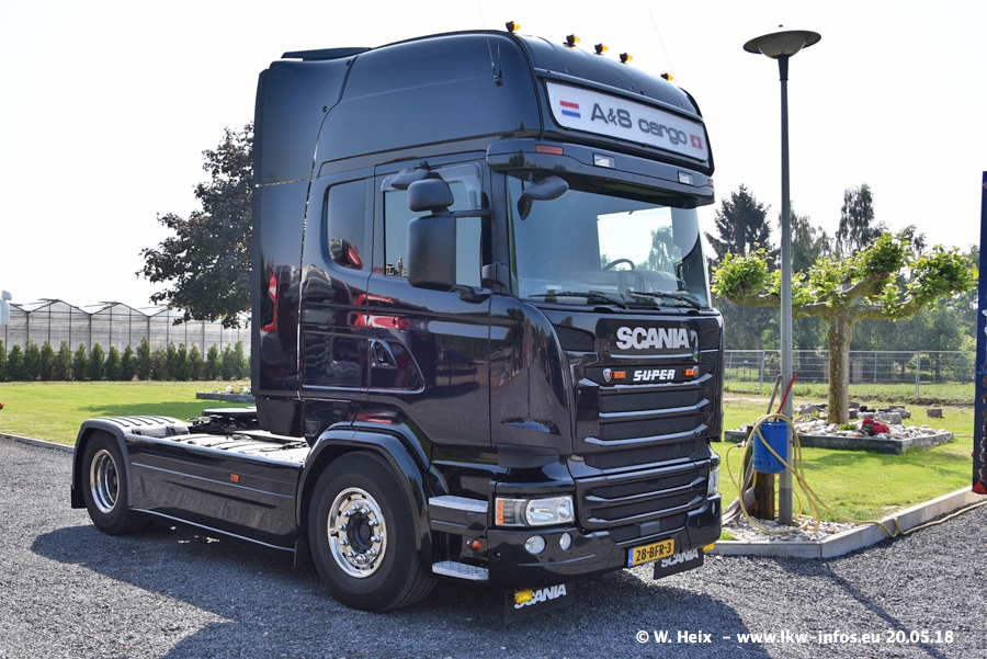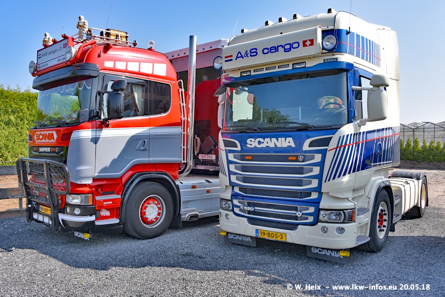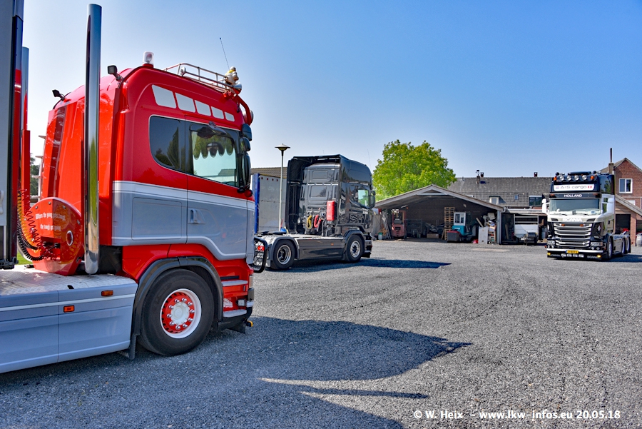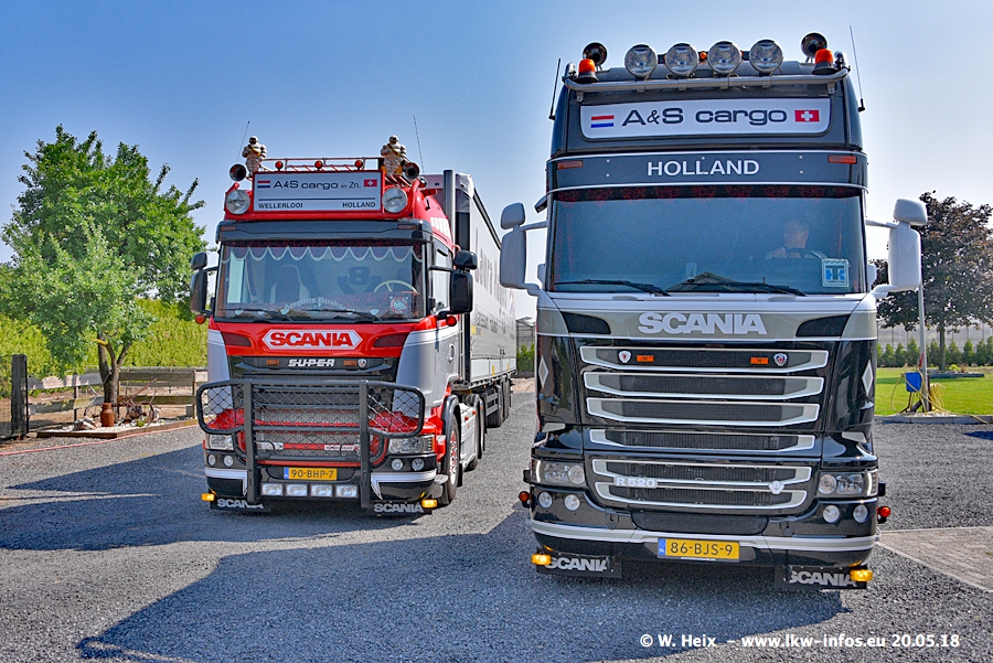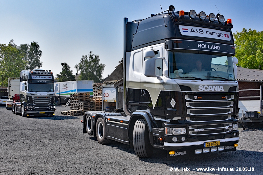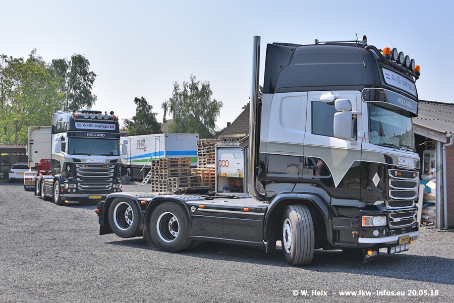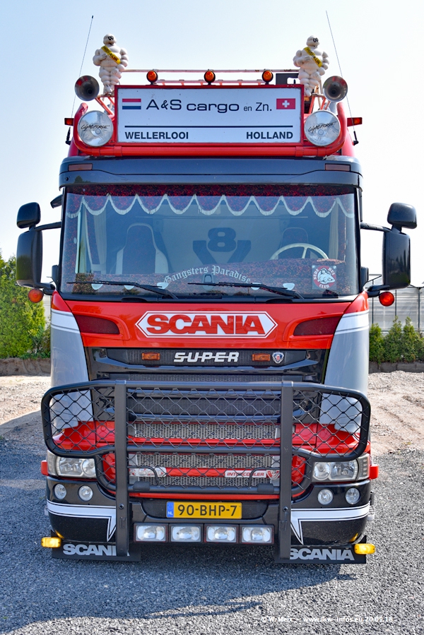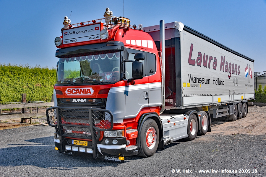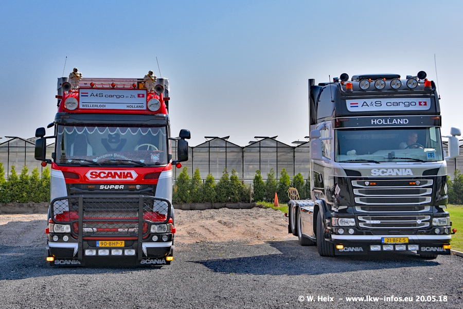 Wir haben ein kleines Fotoshooting bei A&S Cargo zuhause gemacht, wo die LKW am Wochenende stehen. Das sind aktuell 5 SCANIA: 1 schwarzer R 450 Streamline, ein R 520 V8 Streamline in den Farben von M-Trex, ein R 520 V8 Streamline in rot/grau/schwarz, ein R 520 V8 Streamline in A&S-Cargo-Farben und ein R 580 V8 Streamline in A&S-Cargo Farben. Es gibt mittlerweile keine eigenen Auflieger mehr. A&S Cargo fährt als Charter für die Firmen Kempen Transport und Ruud Hagens/Datrans und nutzt entsprechend deren Auflieger.