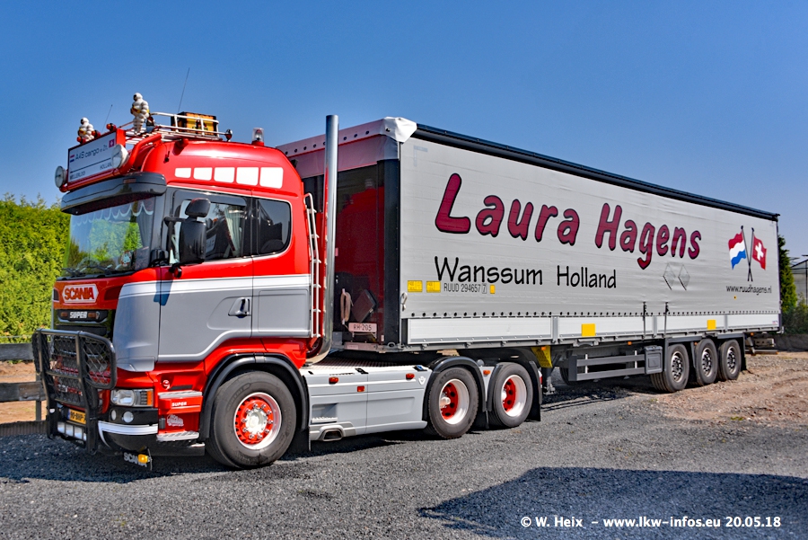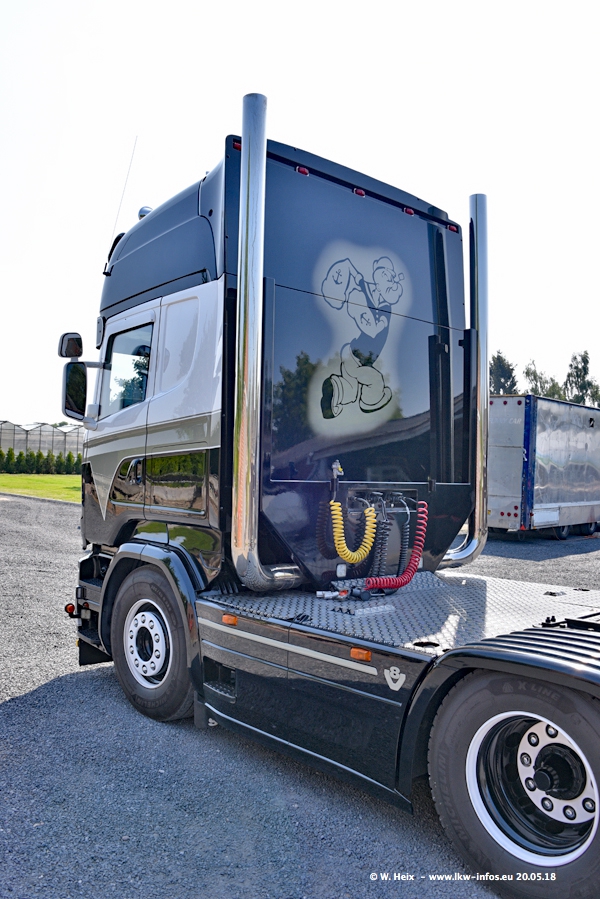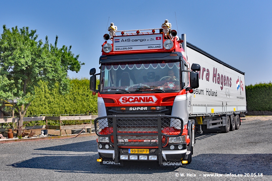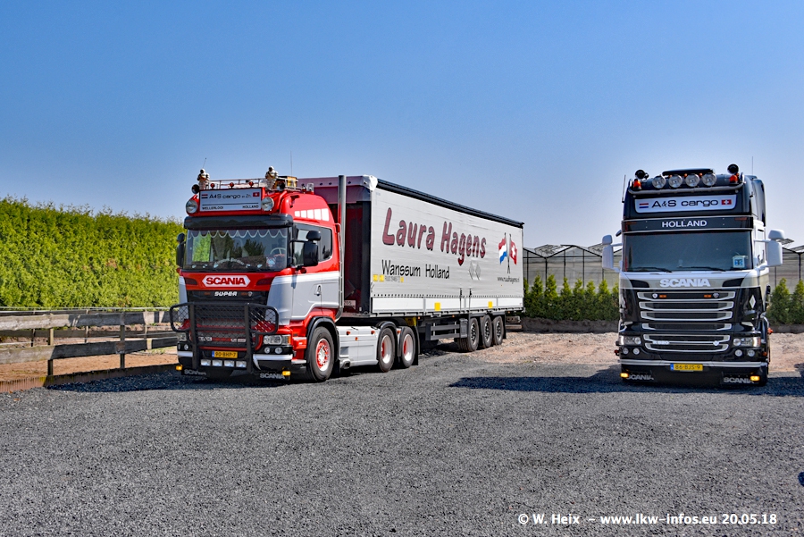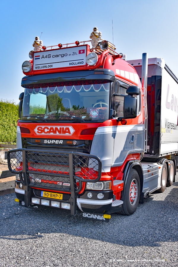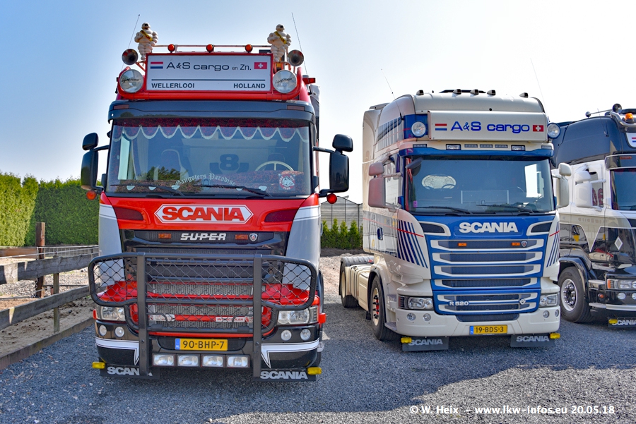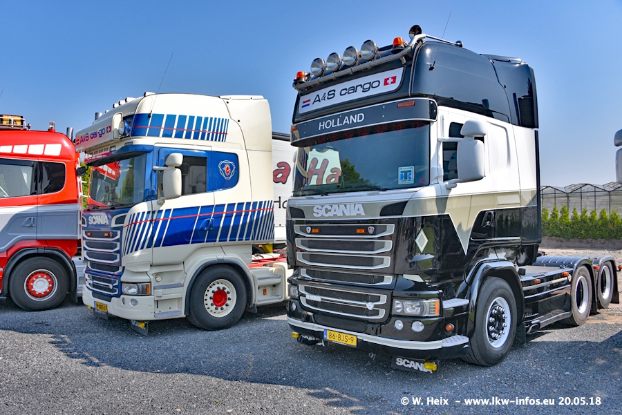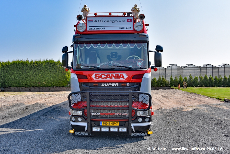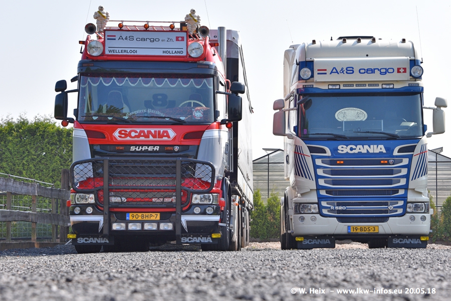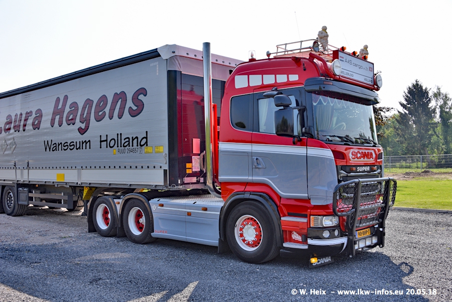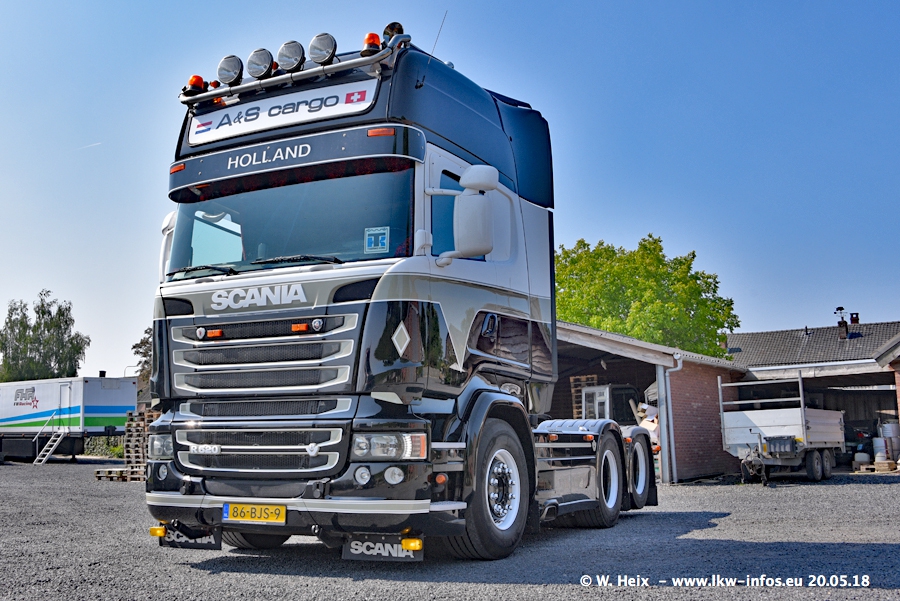 Wir haben ein kleines Fotoshooting bei A&S Cargo zuhause gemacht, wo die LKW am Wochenende stehen. Das sind aktuell 5 SCANIA: 1 schwarzer R 450 Streamline, ein R 520 V8 Streamline in den Farben von M-Trex, ein R 520 V8 Streamline in rot/grau/schwarz, ein R 520 V8 Streamline in A&S-Cargo-Farben und ein R 580 V8 Streamline in A&S-Cargo Farben. Es gibt mittlerweile keine eigenen Auflieger mehr. A&S Cargo fährt als Charter für die Firmen Kempen Transport und Ruud Hagens/Datrans und nutzt entsprechend deren Auflieger.