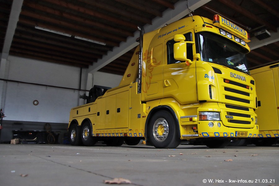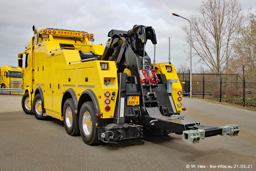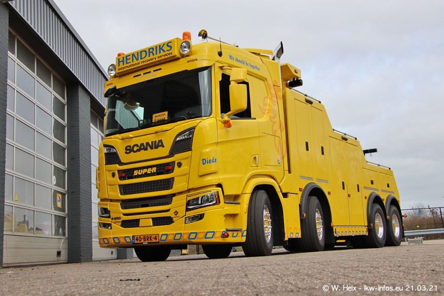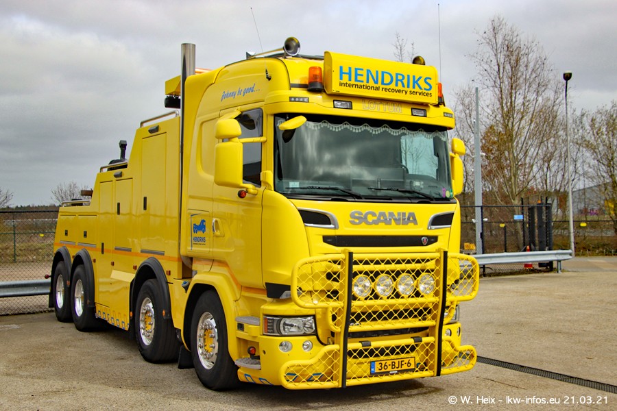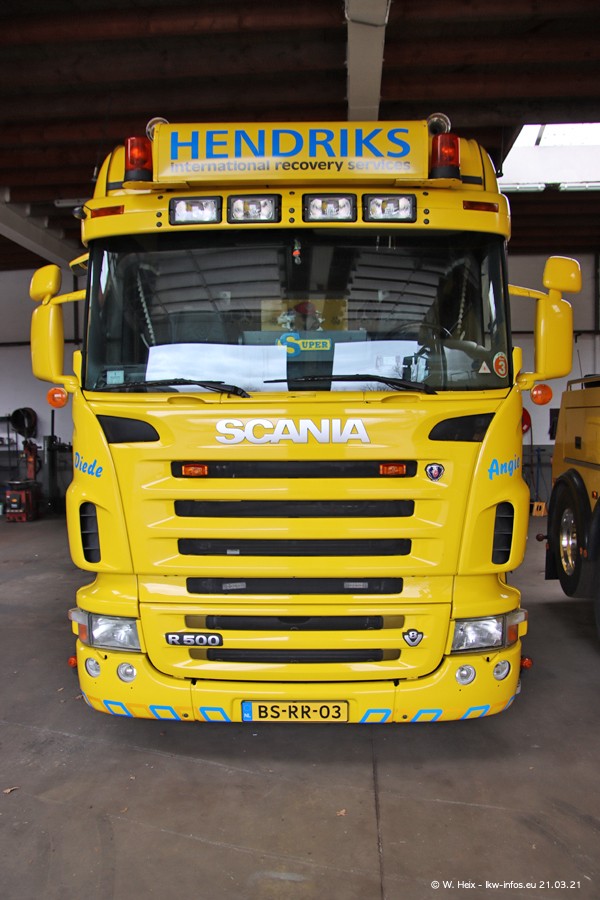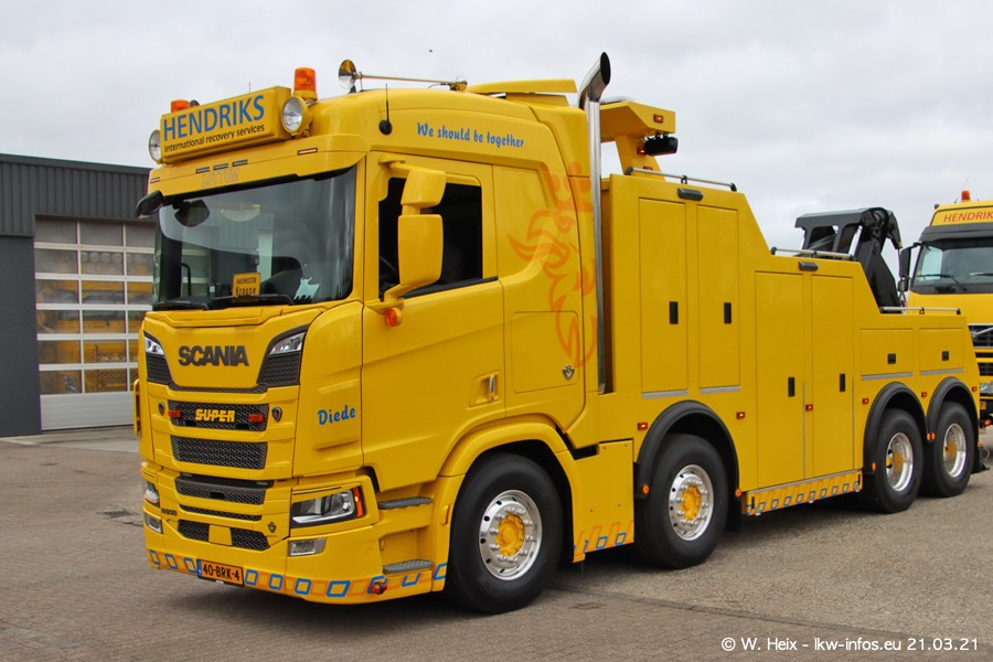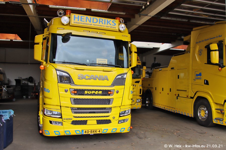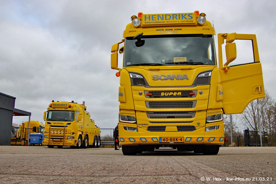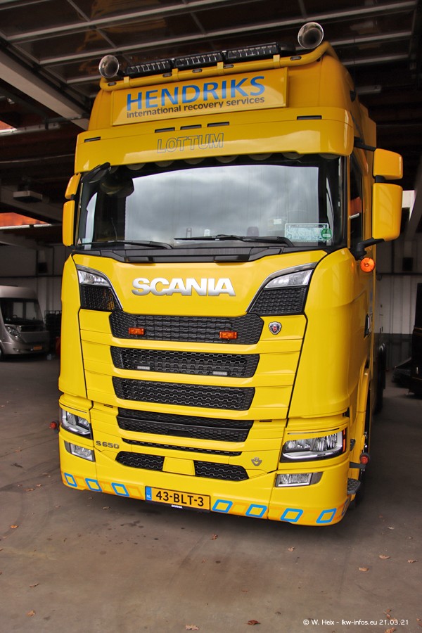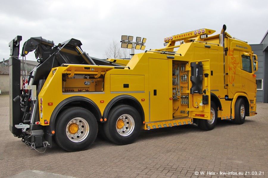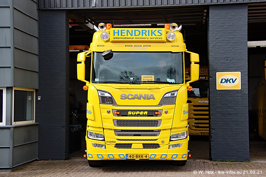 Am heutigen Sonntag war ich kurz bei Hendriks in Lottum. Am Donnerstag hat die Firma einen weiteren neuen Bergetruck bekommen, der heute morgen vom Fahrer getestet wurde und für Fotos bereit stand. Diesmal ist es ein SCANIA R 650 V8 NextGen, der von der Firma Brechtel in Deutschland aufgebaut wurde. Und es waren auch einige weitere LKW zuhause. Das ist an jedem Wochenende anders, da immer gearbeitet und gefahren wird, wie das in dieser Branche eben so ist.