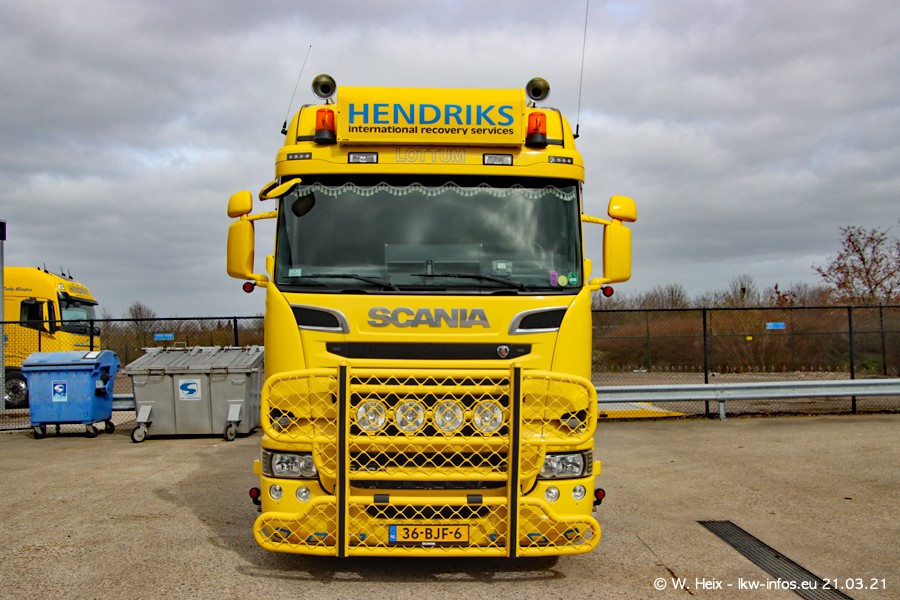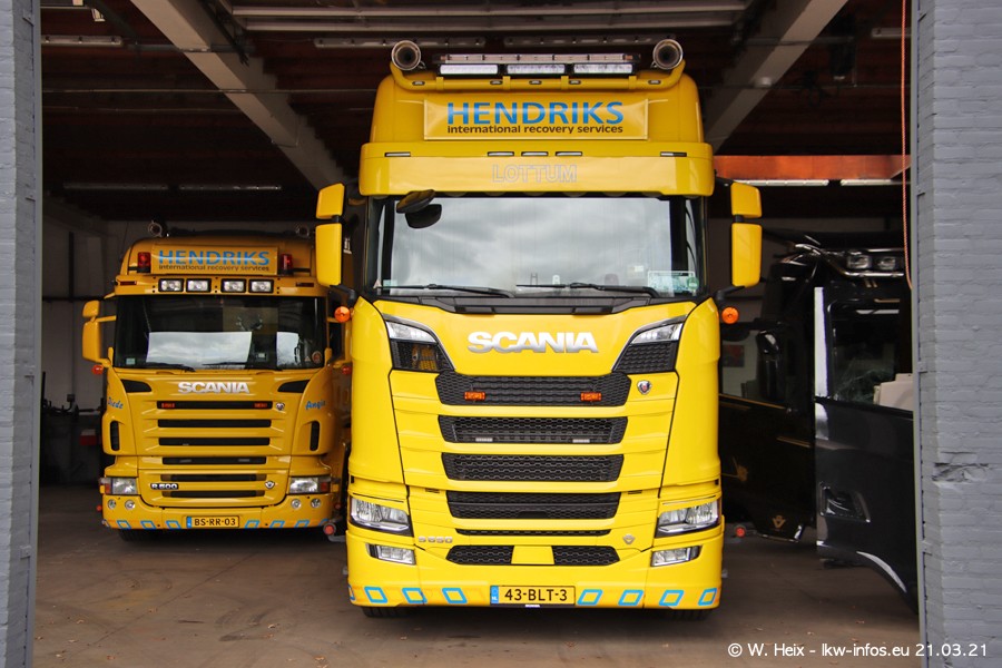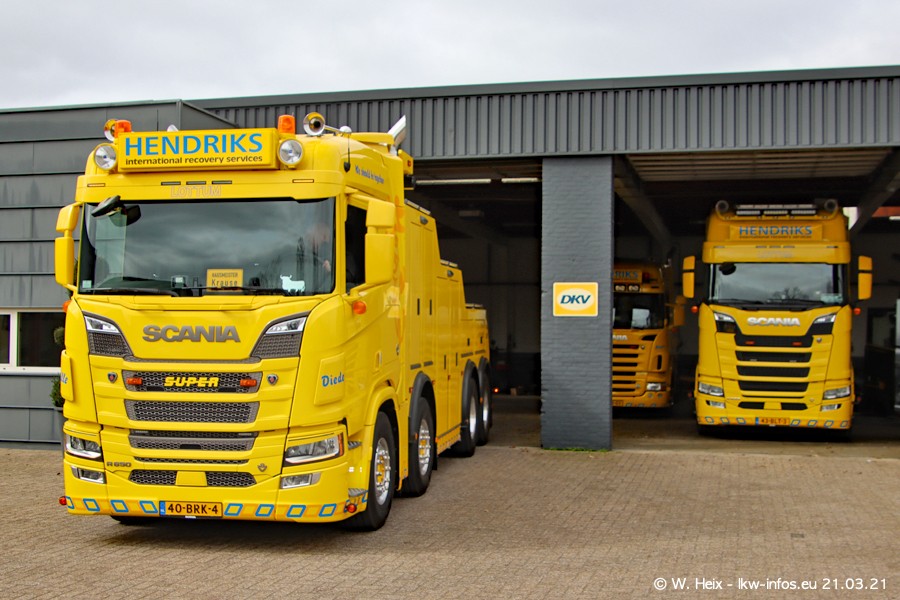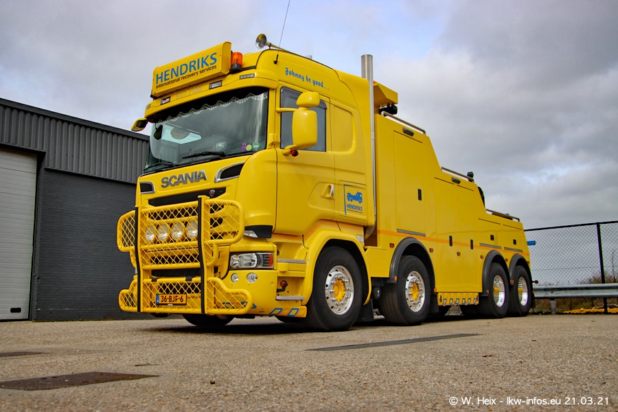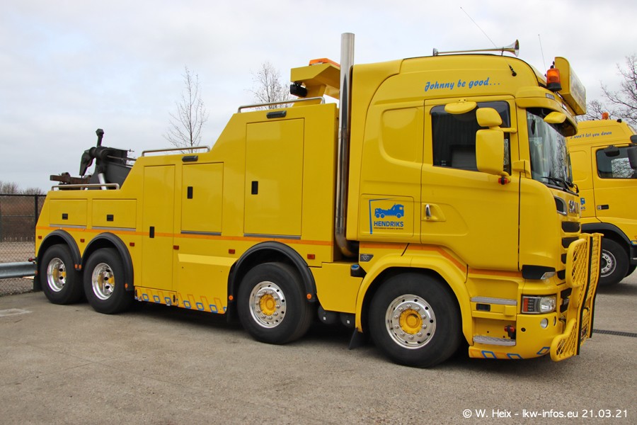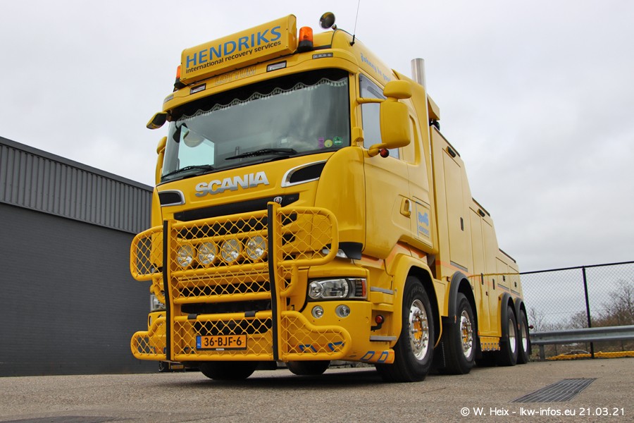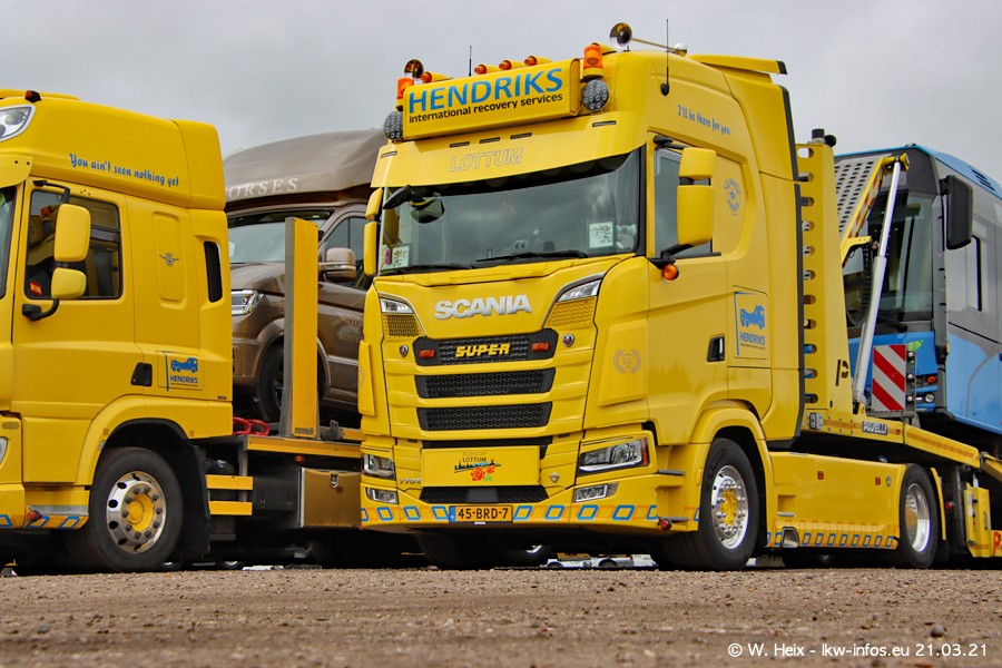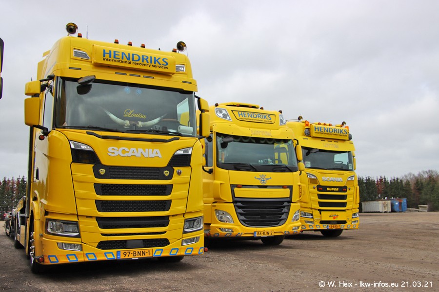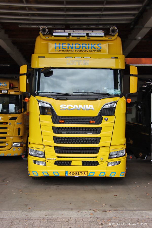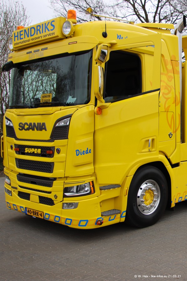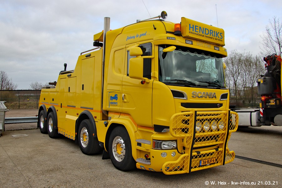 Am heutigen Sonntag war ich kurz bei Hendriks in Lottum. Am Donnerstag hat die Firma einen weiteren neuen Bergetruck bekommen, der heute morgen vom Fahrer getestet wurde und für Fotos bereit stand. Diesmal ist es ein SCANIA R 650 V8 NextGen, der von der Firma Brechtel in Deutschland aufgebaut wurde. Und es waren auch einige weitere LKW zuhause. Das ist an jedem Wochenende anders, da immer gearbeitet und gefahren wird, wie das in dieser Branche eben so ist.