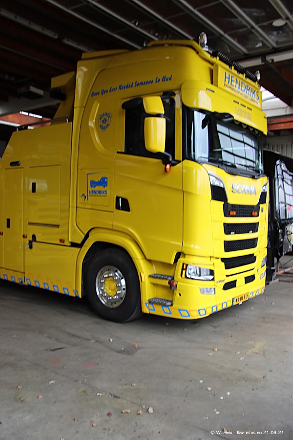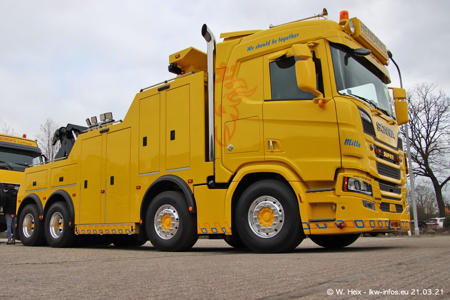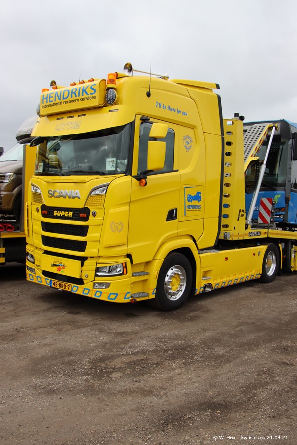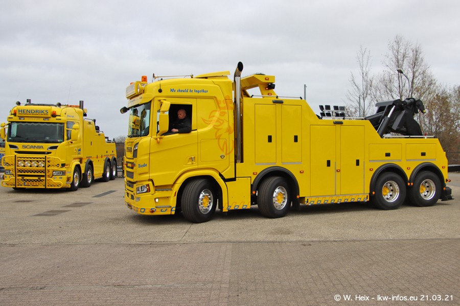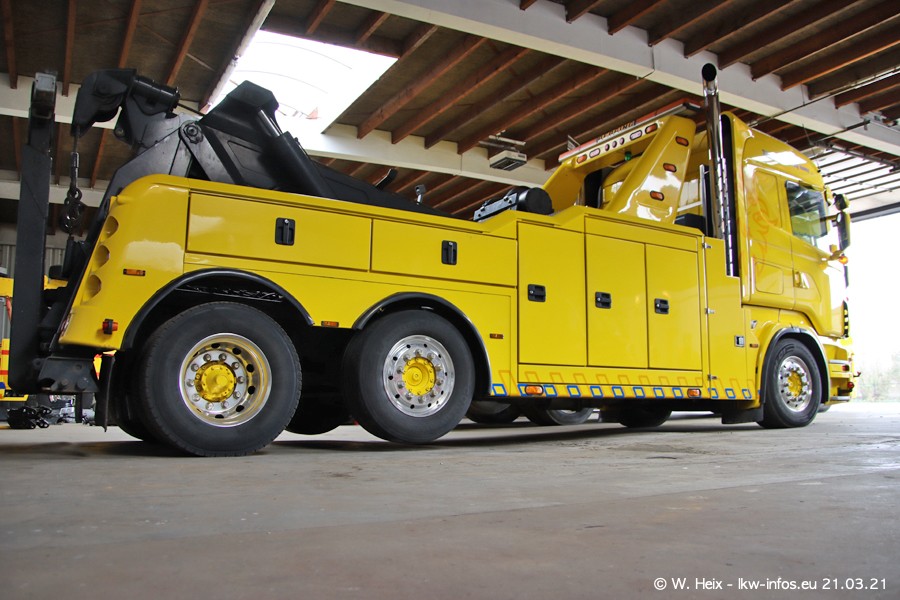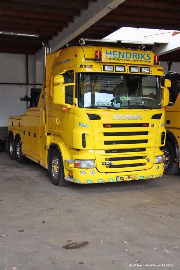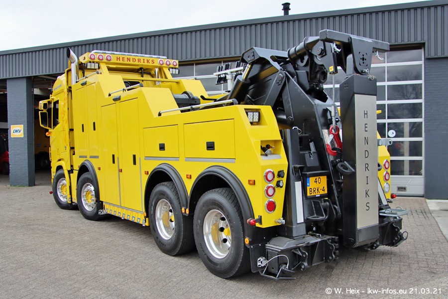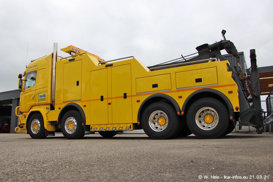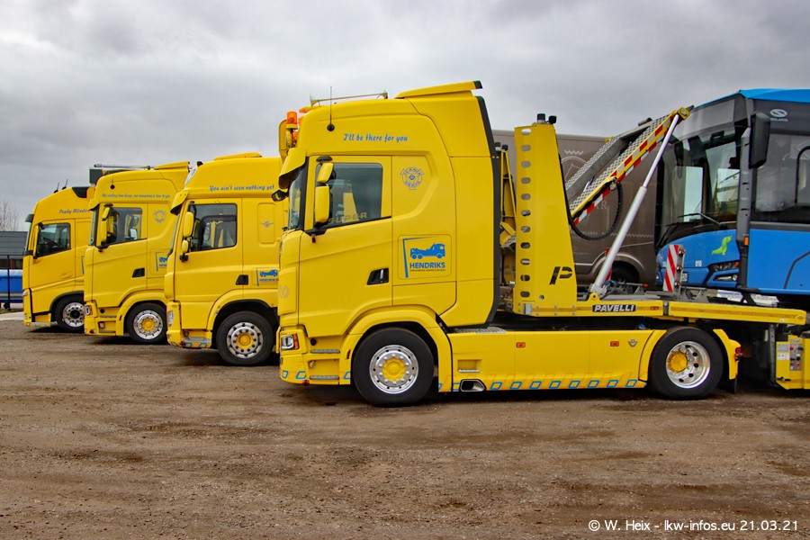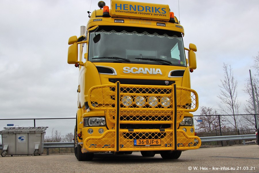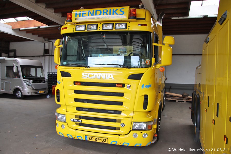 Am heutigen Sonntag war ich kurz bei Hendriks in Lottum. Am Donnerstag hat die Firma einen weiteren neuen Bergetruck bekommen, der heute morgen vom Fahrer getestet wurde und für Fotos bereit stand. Diesmal ist es ein SCANIA R 650 V8 NextGen, der von der Firma Brechtel in Deutschland aufgebaut wurde. Und es waren auch einige weitere LKW zuhause. Das ist an jedem Wochenende anders, da immer gearbeitet und gefahren wird, wie das in dieser Branche eben so ist.