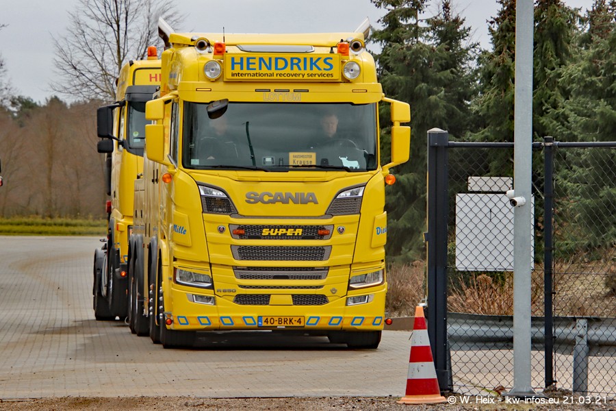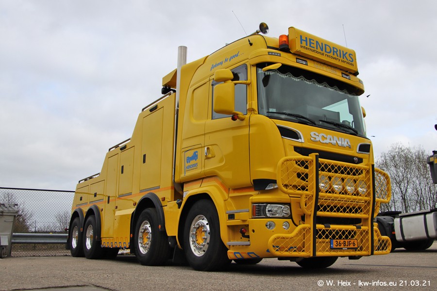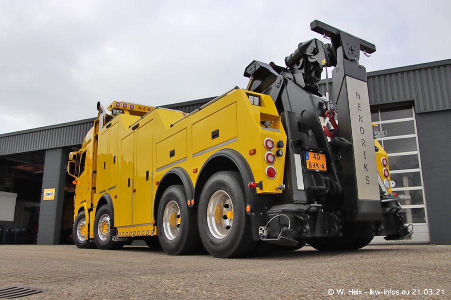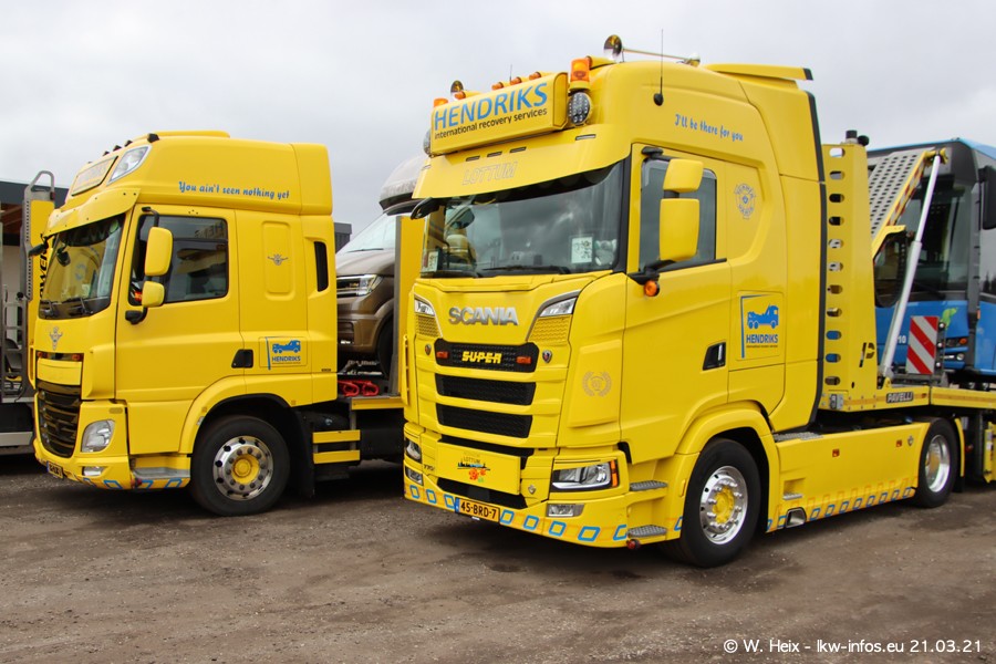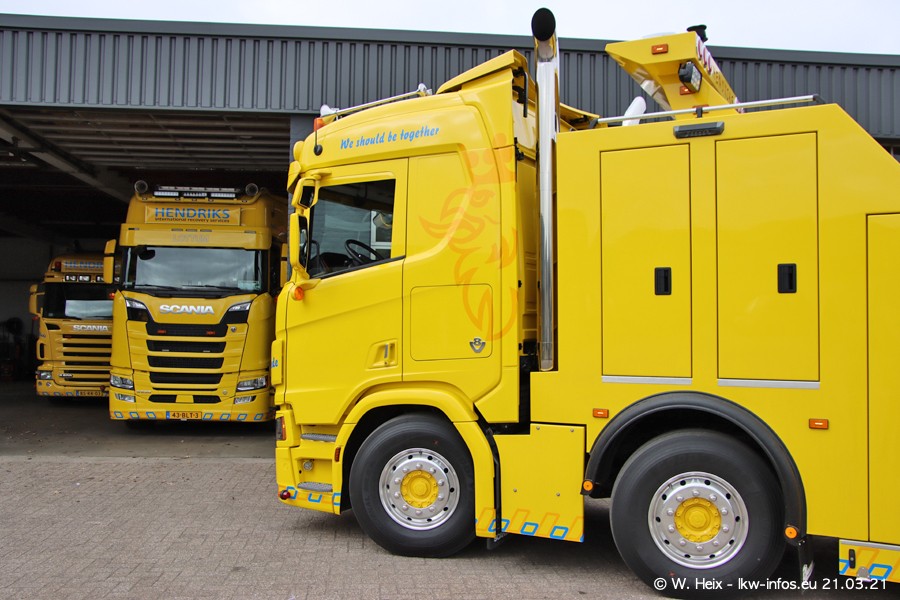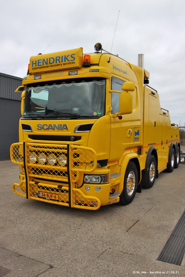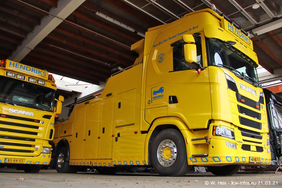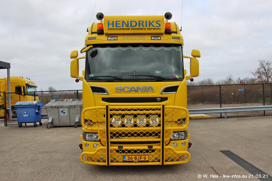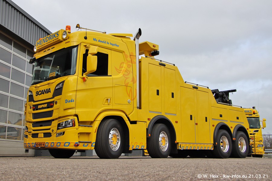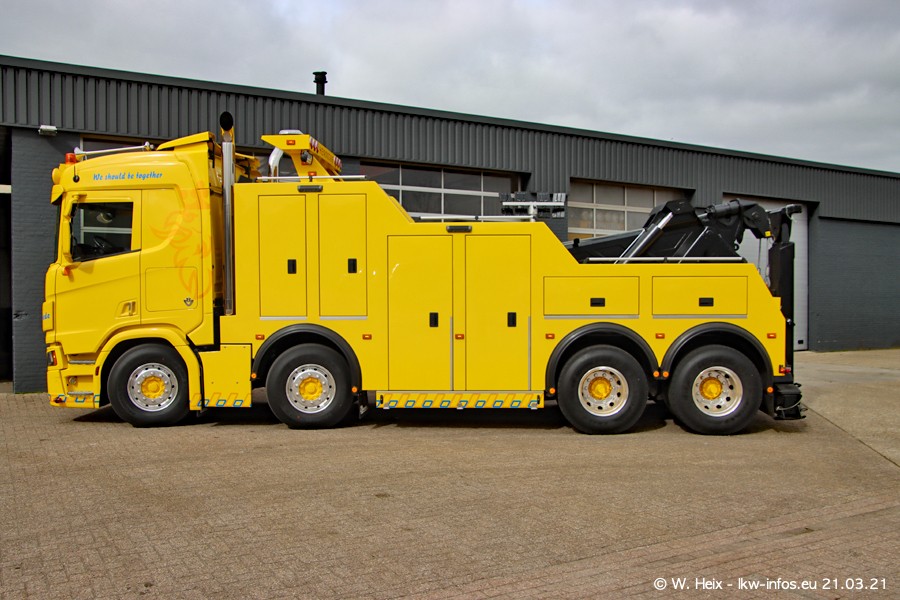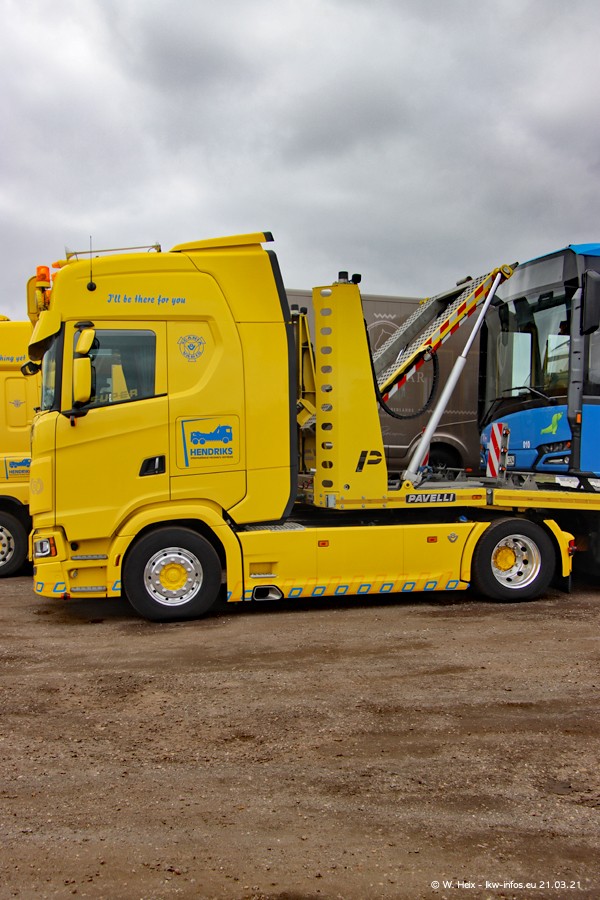 Am heutigen Sonntag war ich kurz bei Hendriks in Lottum. Am Donnerstag hat die Firma einen weiteren neuen Bergetruck bekommen, der heute morgen vom Fahrer getestet wurde und für Fotos bereit stand. Diesmal ist es ein SCANIA R 650 V8 NextGen, der von der Firma Brechtel in Deutschland aufgebaut wurde. Und es waren auch einige weitere LKW zuhause. Das ist an jedem Wochenende anders, da immer gearbeitet und gefahren wird, wie das in dieser Branche eben so ist.