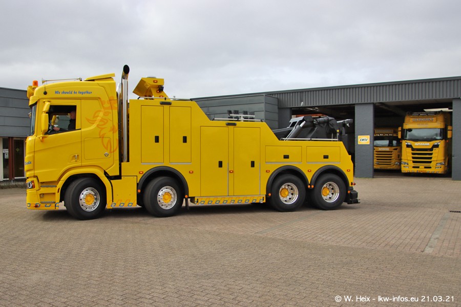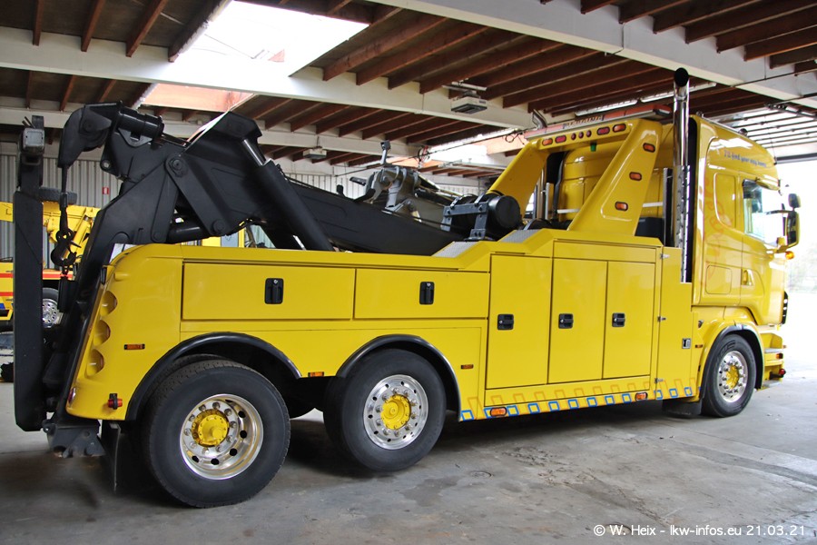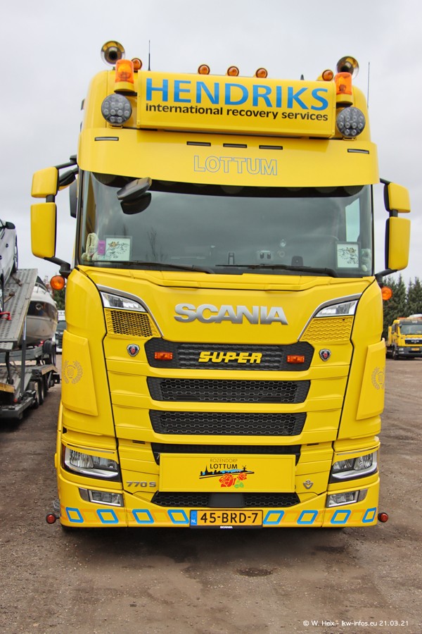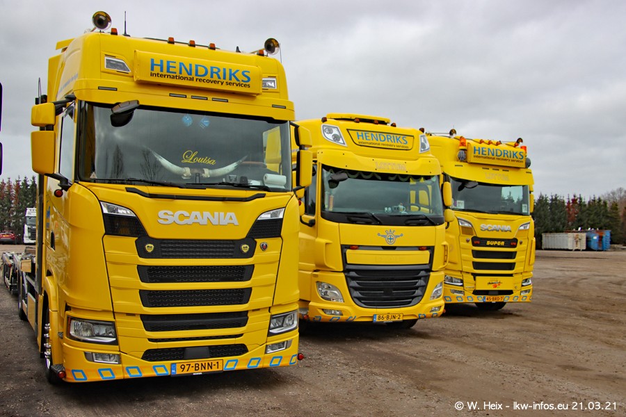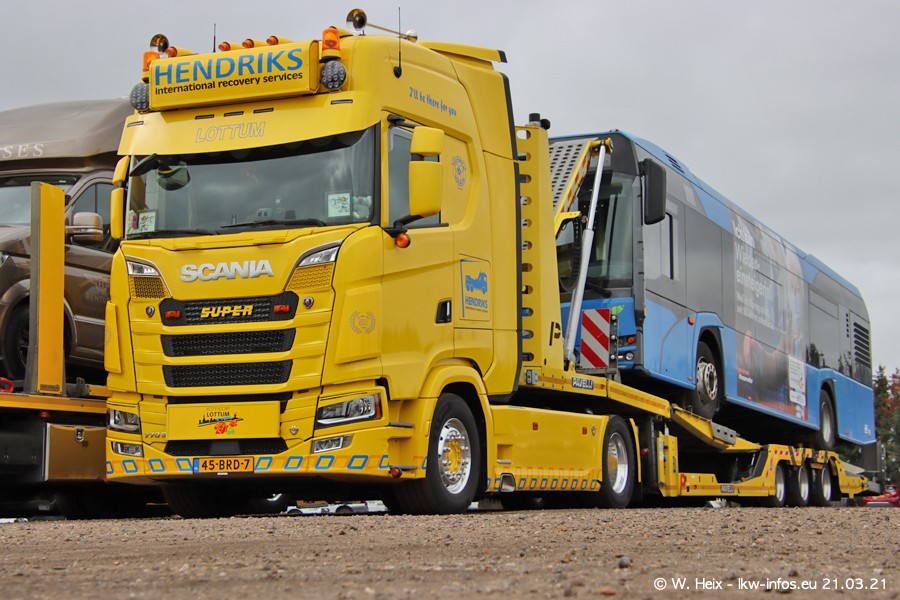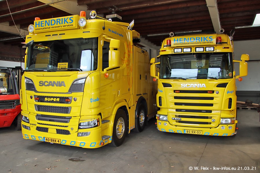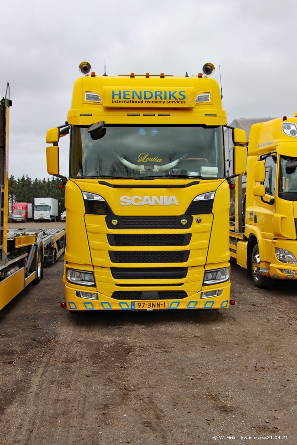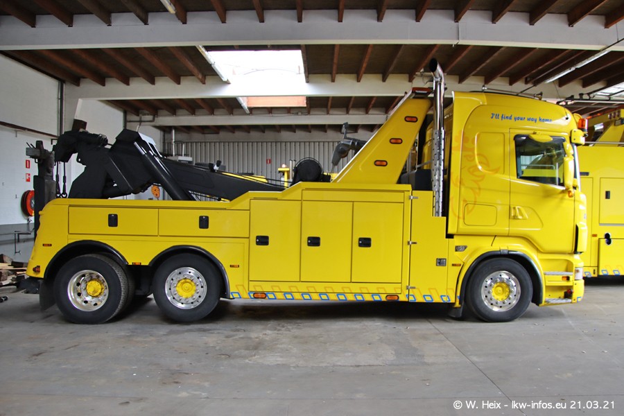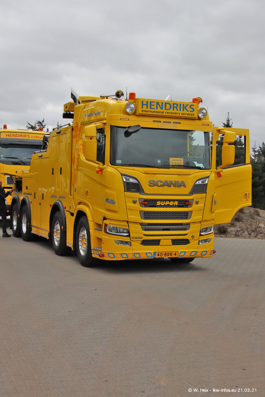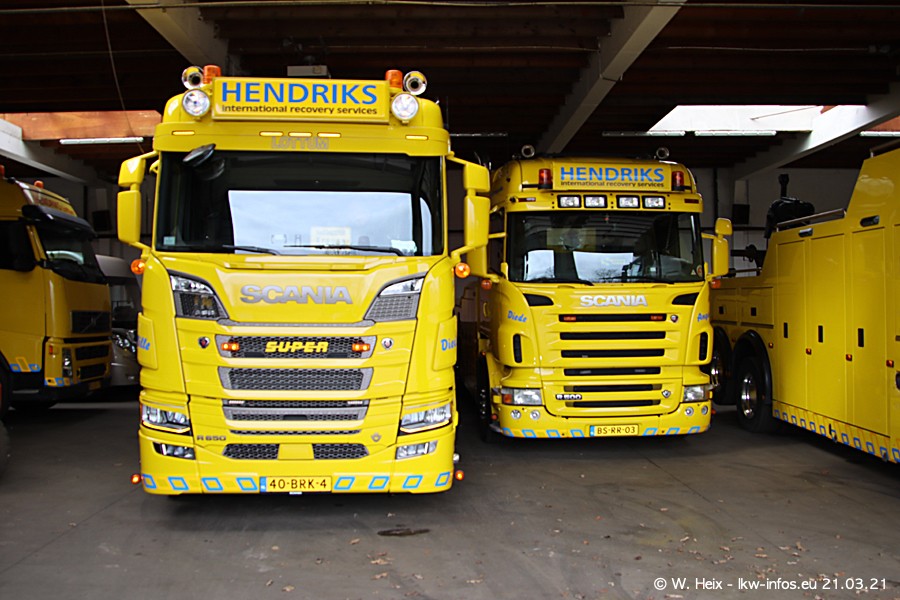 Am heutigen Sonntag war ich kurz bei Hendriks in Lottum. Am Donnerstag hat die Firma einen weiteren neuen Bergetruck bekommen, der heute morgen vom Fahrer getestet wurde und für Fotos bereit stand. Diesmal ist es ein SCANIA R 650 V8 NextGen, der von der Firma Brechtel in Deutschland aufgebaut wurde. Und es waren auch einige weitere LKW zuhause. Das ist an jedem Wochenende anders, da immer gearbeitet und gefahren wird, wie das in dieser Branche eben so ist.