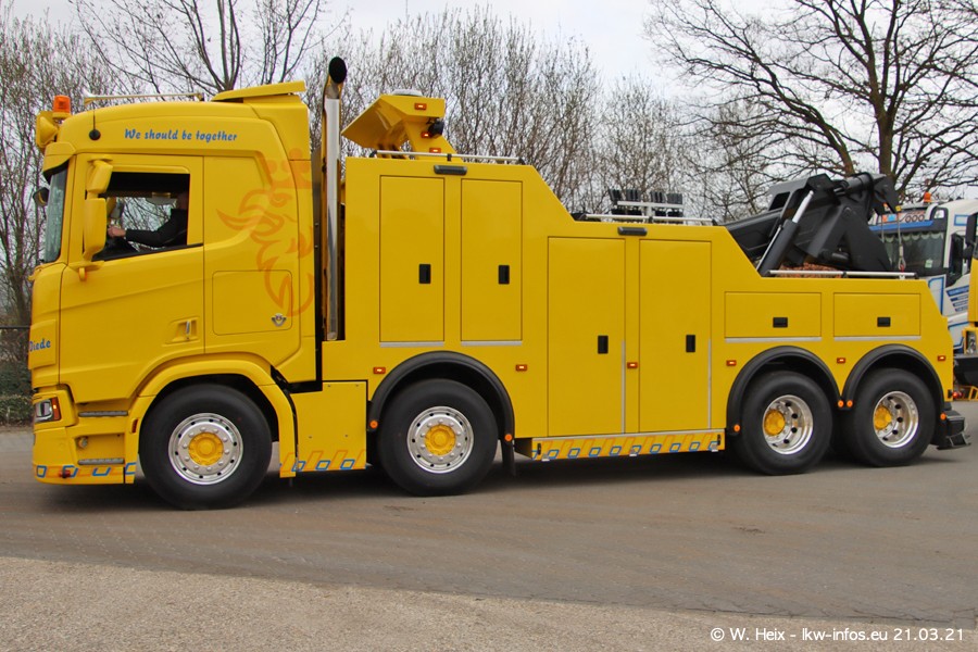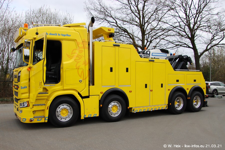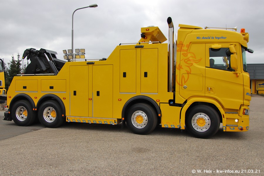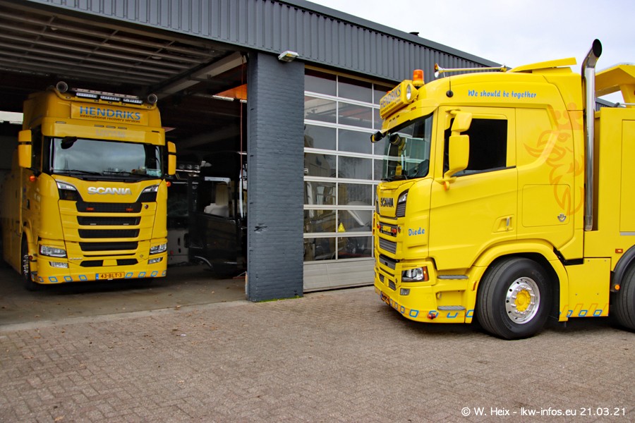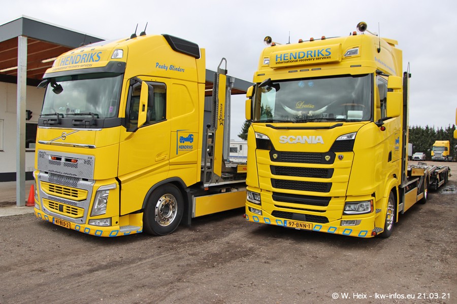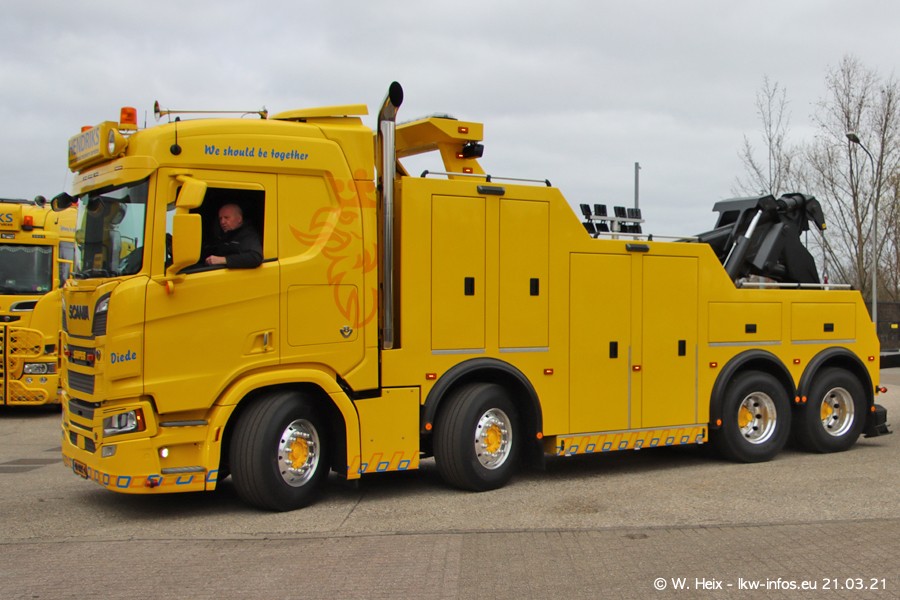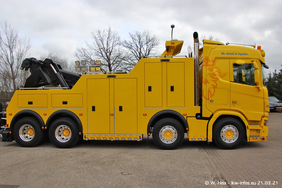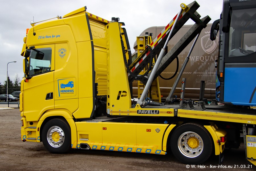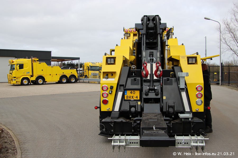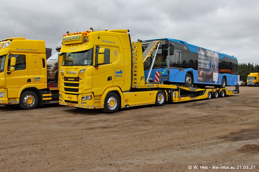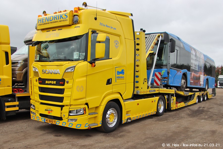 Am heutigen Sonntag war ich kurz bei Hendriks in Lottum. Am Donnerstag hat die Firma einen weiteren neuen Bergetruck bekommen, der heute morgen vom Fahrer getestet wurde und für Fotos bereit stand. Diesmal ist es ein SCANIA R 650 V8 NextGen, der von der Firma Brechtel in Deutschland aufgebaut wurde. Und es waren auch einige weitere LKW zuhause. Das ist an jedem Wochenende anders, da immer gearbeitet und gefahren wird, wie das in dieser Branche eben so ist.