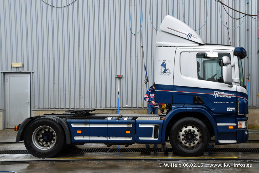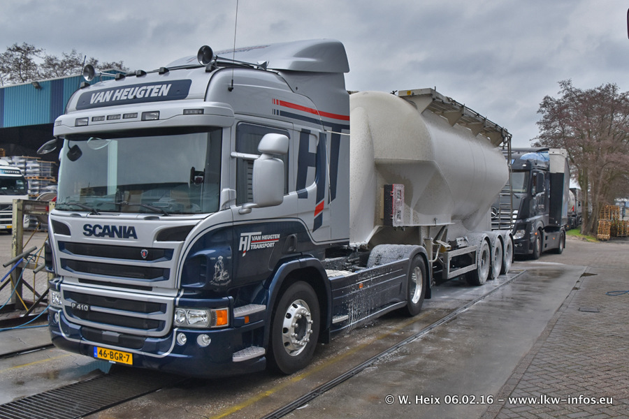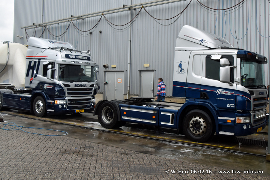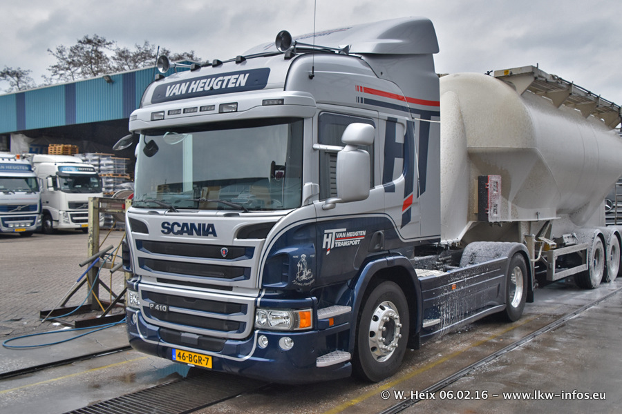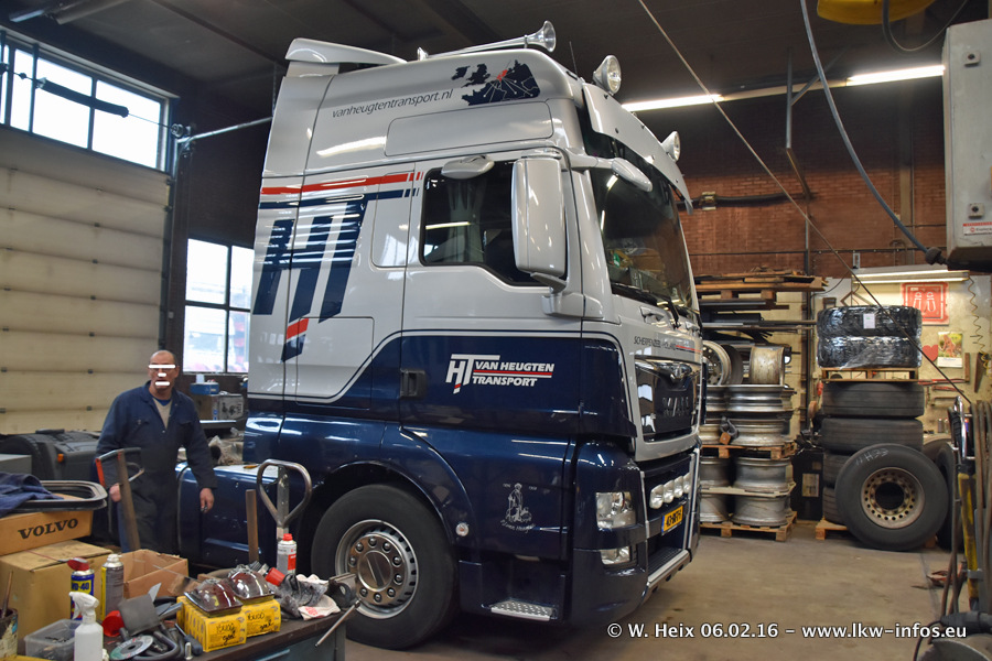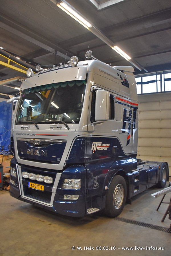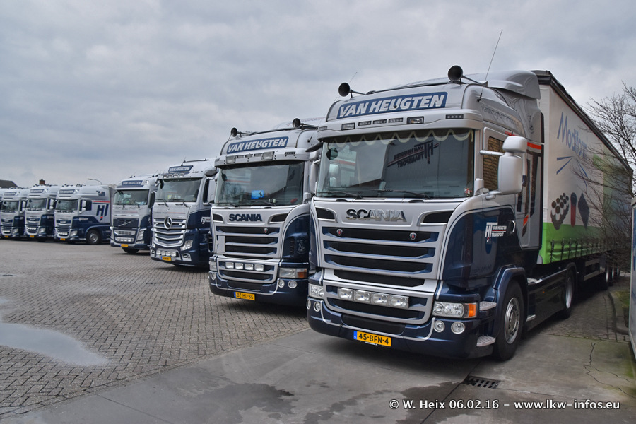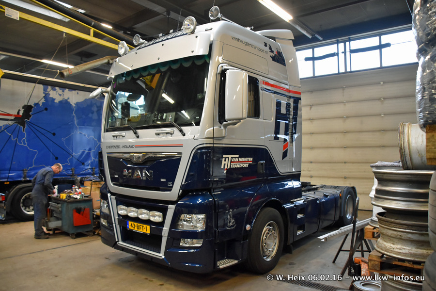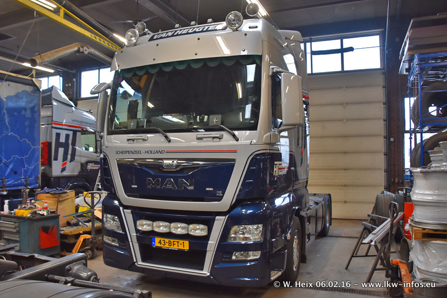 In den letzten 12 Monaten hat van Heugten den Fuhrpark weiter modernisiert. Neu sind vier DAF XF 105 Euro 6, ein Scania P 410 und einige Auflieger. Diesmal konnte ich auch den neuen MAN TGX fotografieren. Dieser ist inzwischen schon knapp ein Jahr alt. Weiter neue Scania und Volvo werden in den nächsten Monaten kommen. Aktuell besteht der Fuhrpark aus rund 50 LKW. Ein großer Teil davon hat inzwischen das neue Design.