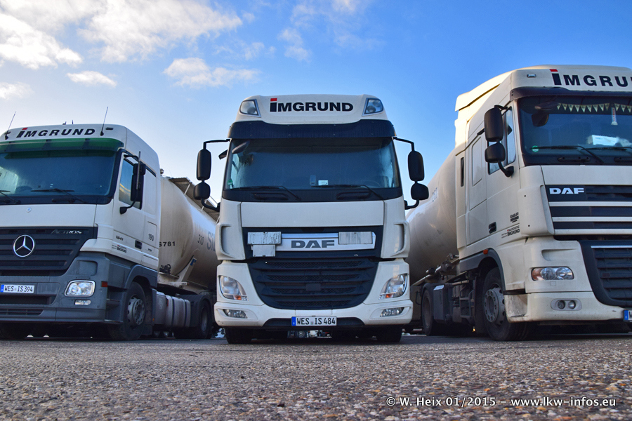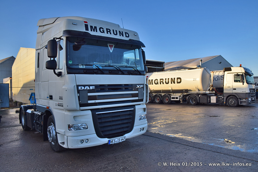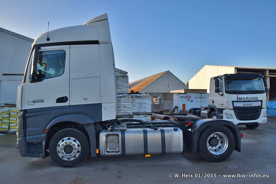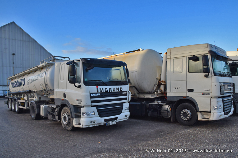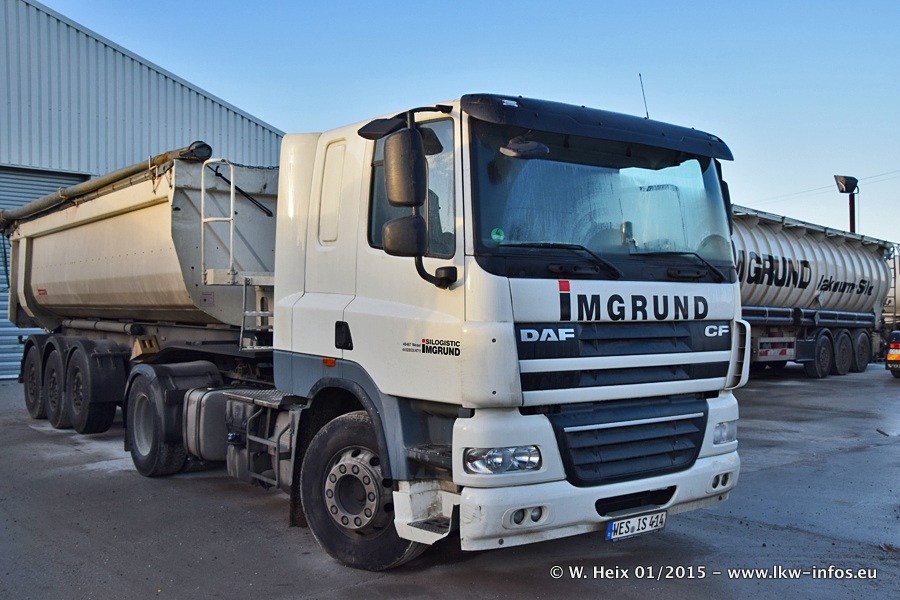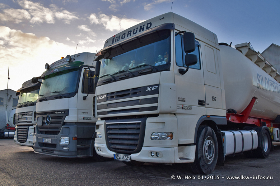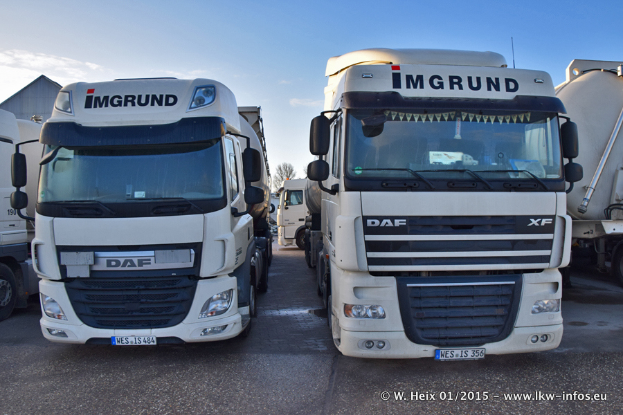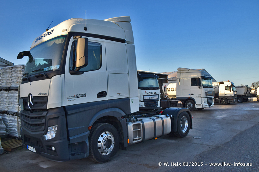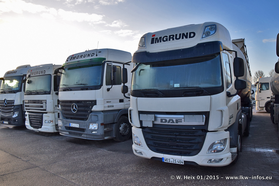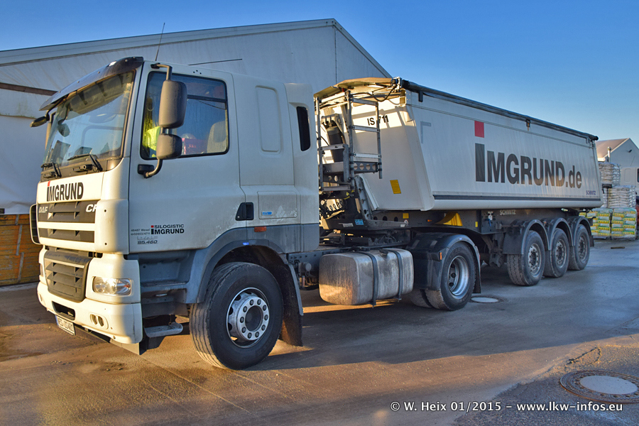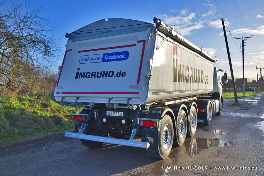 Ich war rund 2 Jahre nicht mehr bei Imgrnd. Entsprechend gibt es einige neue Fahrzeuge. Neben weiteren Mercedes-Benz Actros 4 sind seit eingen Tagen die ersten DAF New CF Euro 6 im Fuhrpark. Die Zugmaschinen ohne Kennzeichen werden in den nächsten Tagen die ersten Neuzulassungen 2015 sein. Neu sind auch die Kippauflieger, die mit den neuen DAF-Zugmaschinen eingesetzt werden.