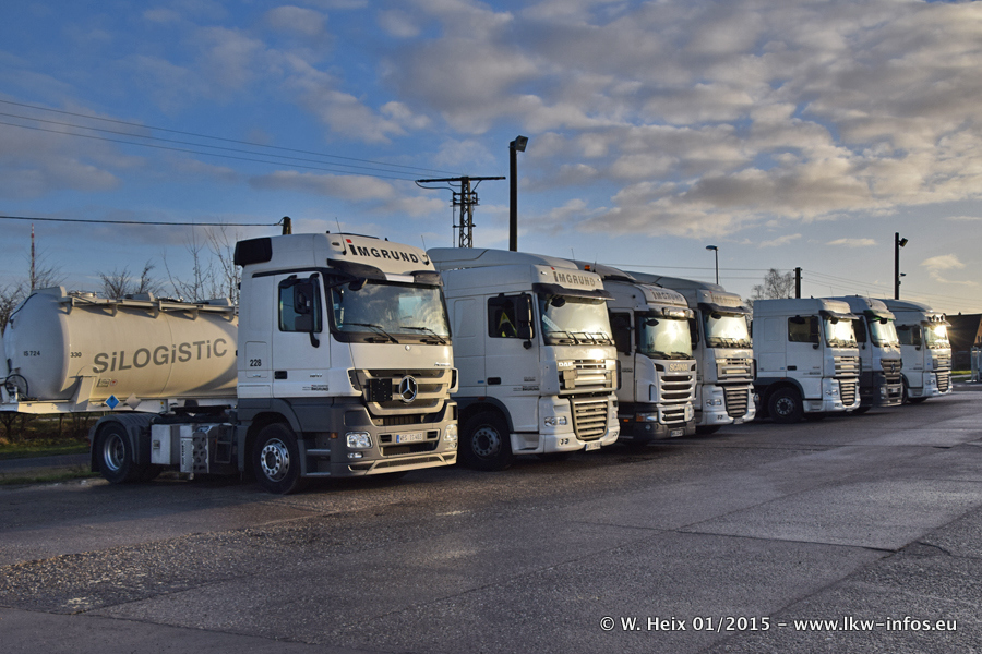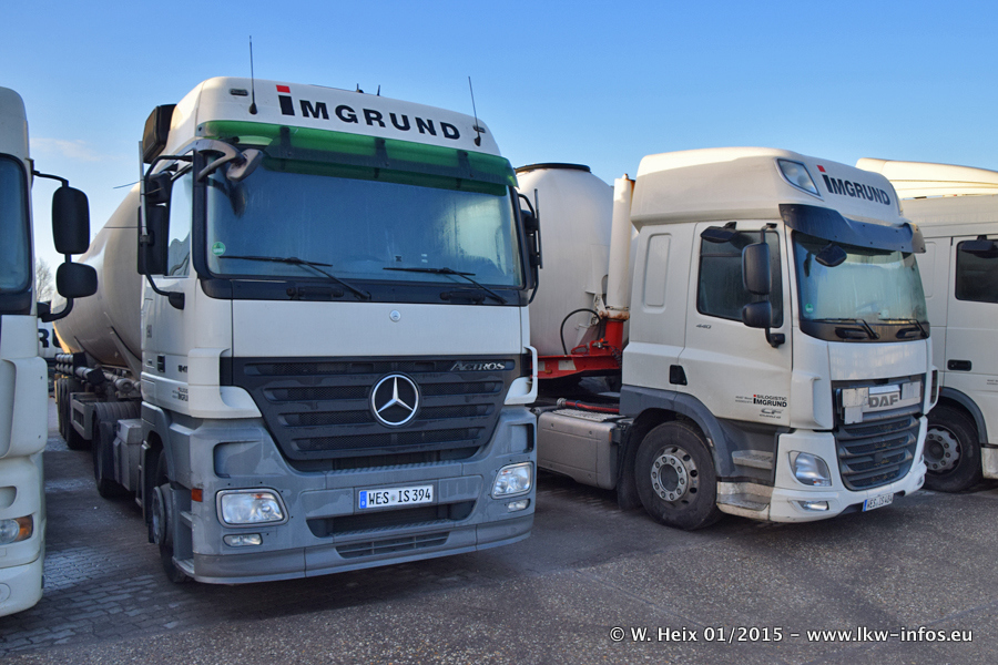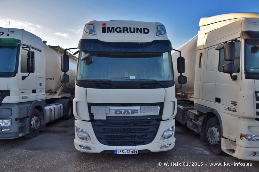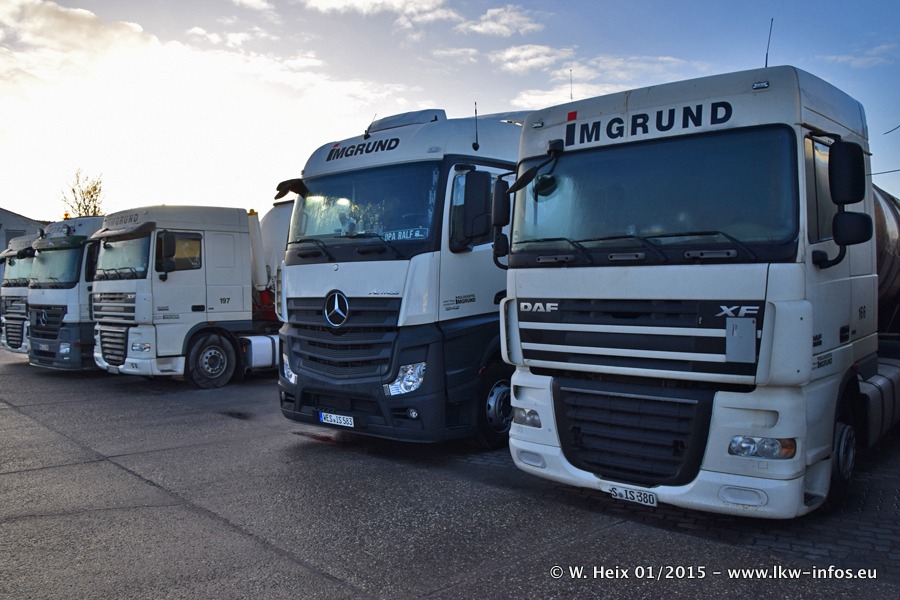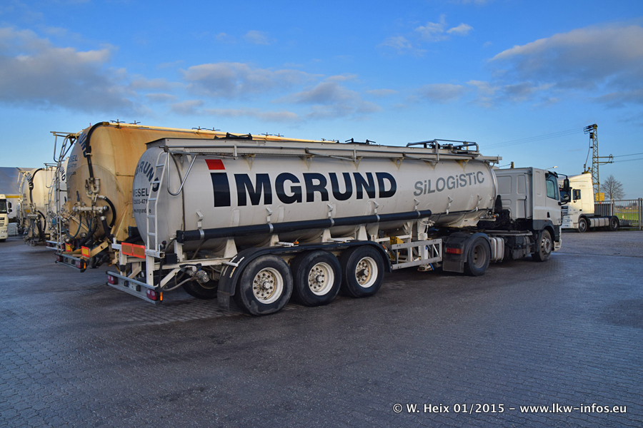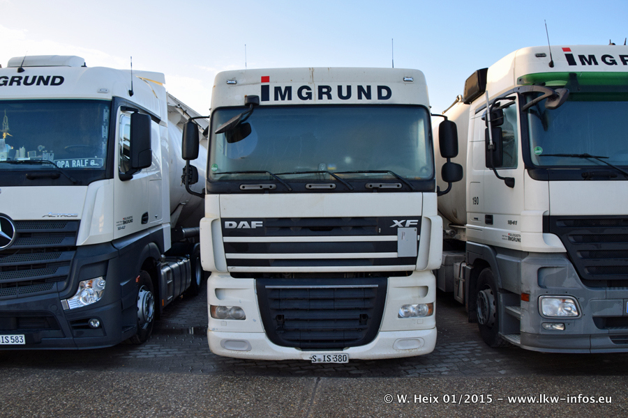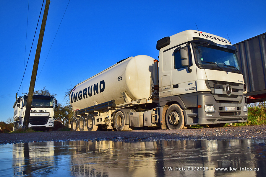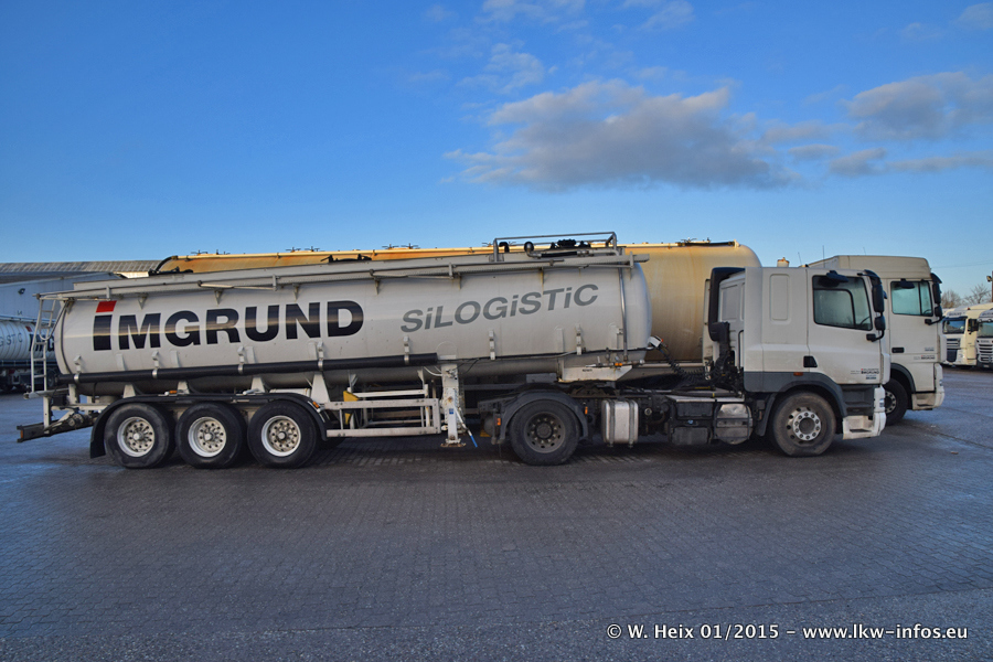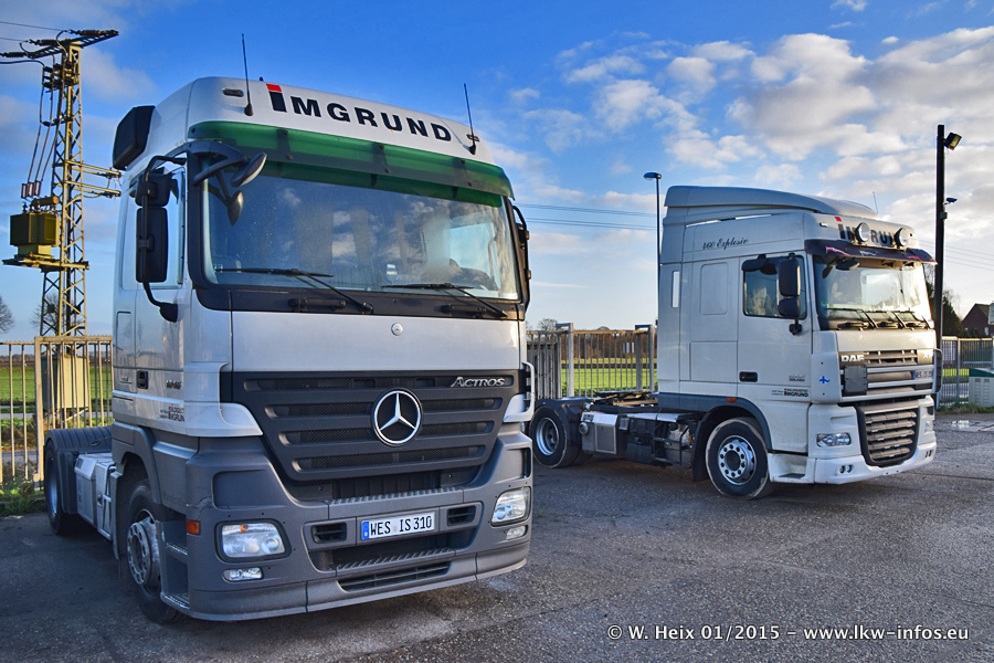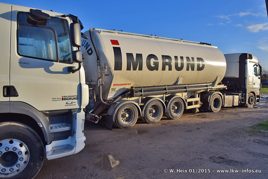 Ich war rund 2 Jahre nicht mehr bei Imgrnd. Entsprechend gibt es einige neue Fahrzeuge. Neben weiteren Mercedes-Benz Actros 4 sind seit eingen Tagen die ersten DAF New CF Euro 6 im Fuhrpark. Die Zugmaschinen ohne Kennzeichen werden in den nächsten Tagen die ersten Neuzulassungen 2015 sein. Neu sind auch die Kippauflieger, die mit den neuen DAF-Zugmaschinen eingesetzt werden.