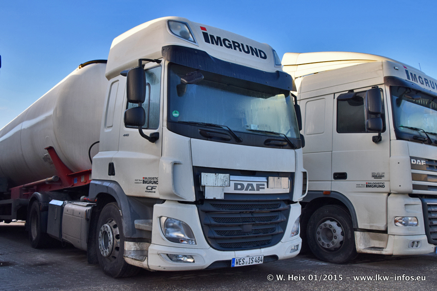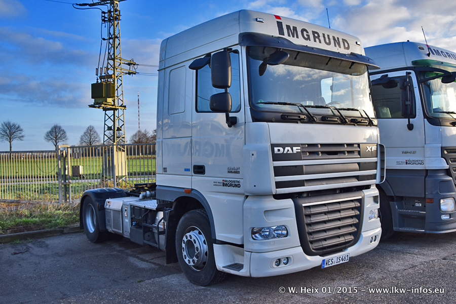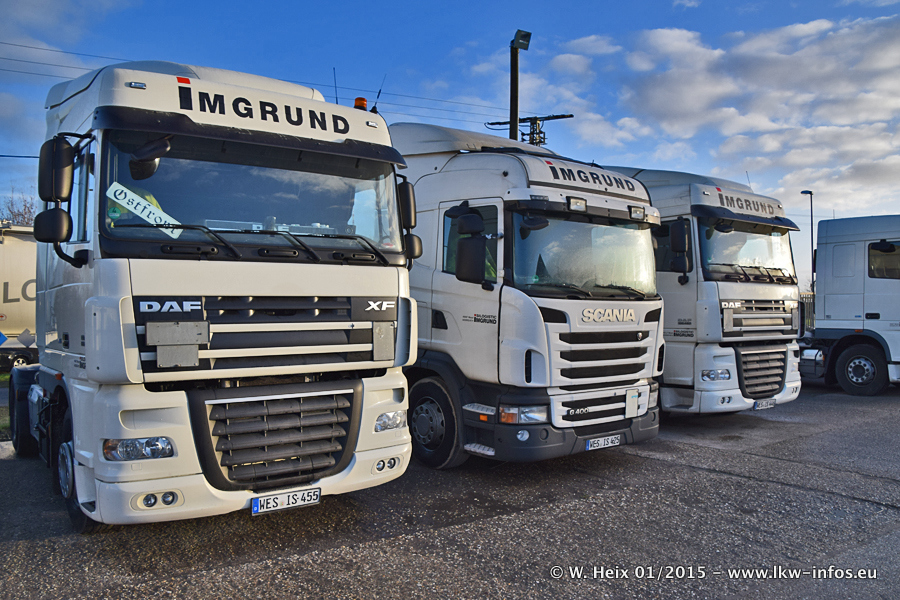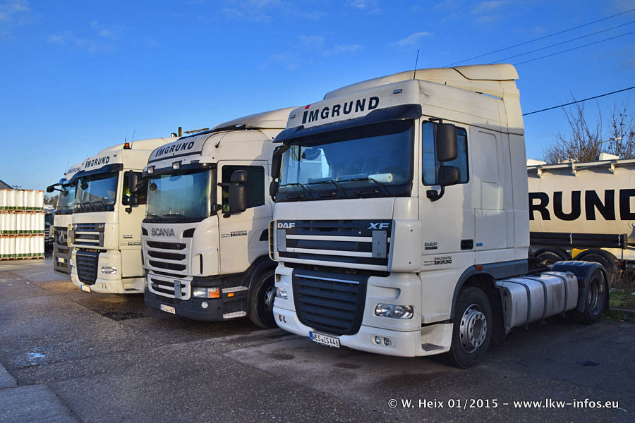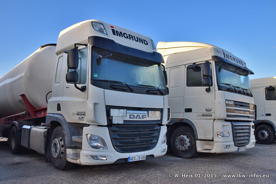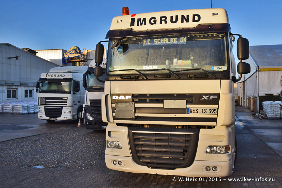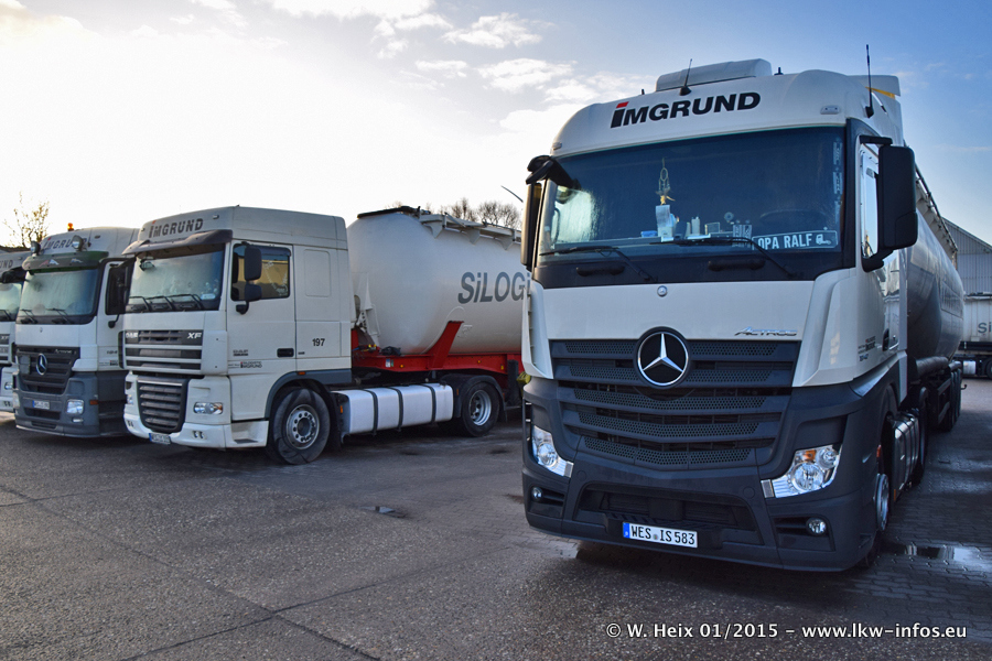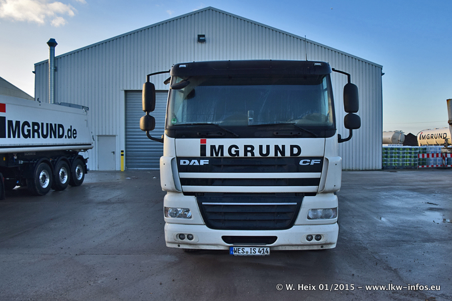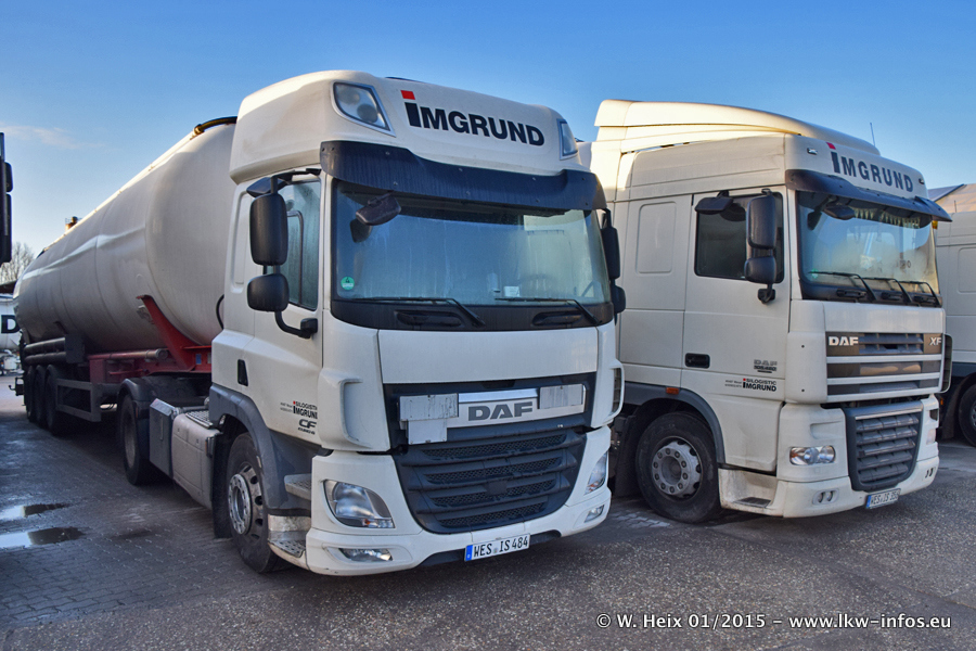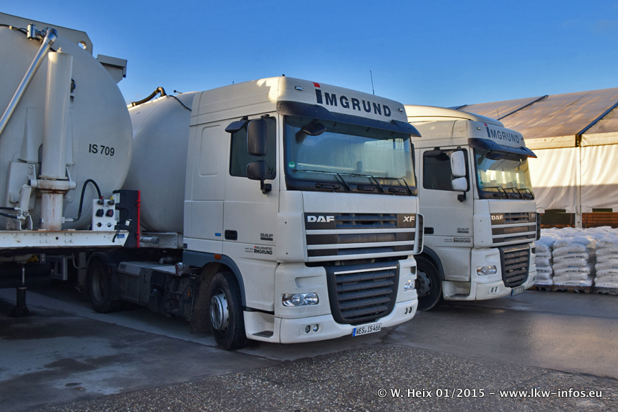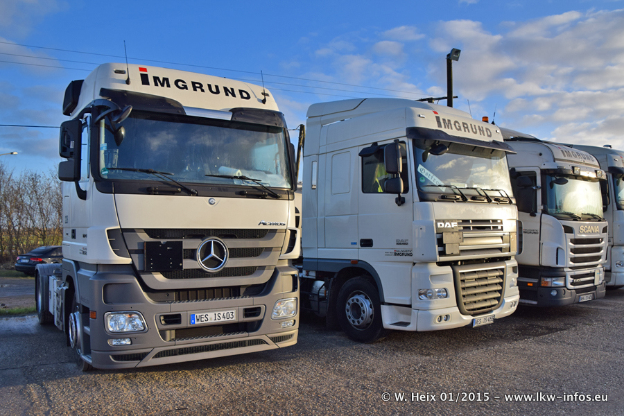 Ich war rund 2 Jahre nicht mehr bei Imgrnd. Entsprechend gibt es einige neue Fahrzeuge. Neben weiteren Mercedes-Benz Actros 4 sind seit eingen Tagen die ersten DAF New CF Euro 6 im Fuhrpark. Die Zugmaschinen ohne Kennzeichen werden in den nächsten Tagen die ersten Neuzulassungen 2015 sein. Neu sind auch die Kippauflieger, die mit den neuen DAF-Zugmaschinen eingesetzt werden.