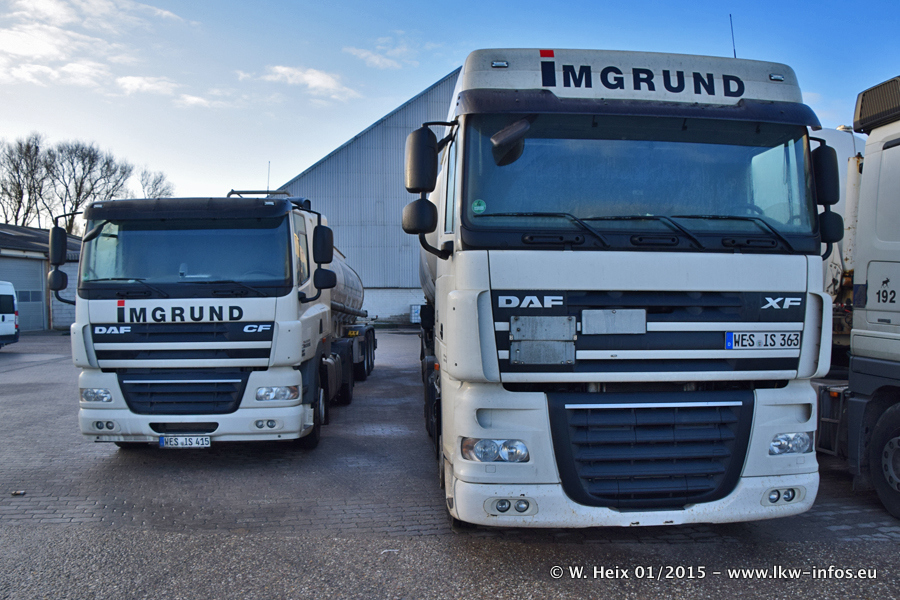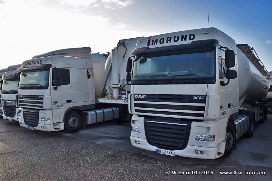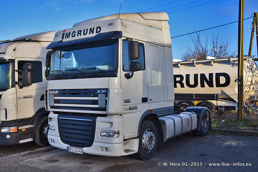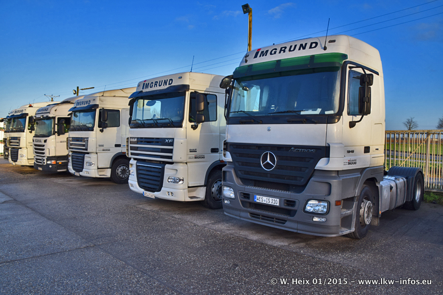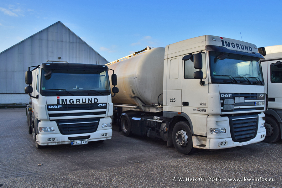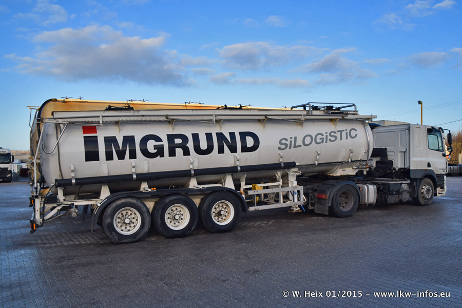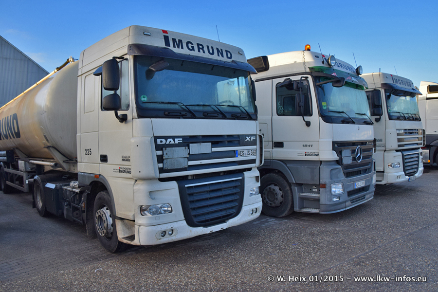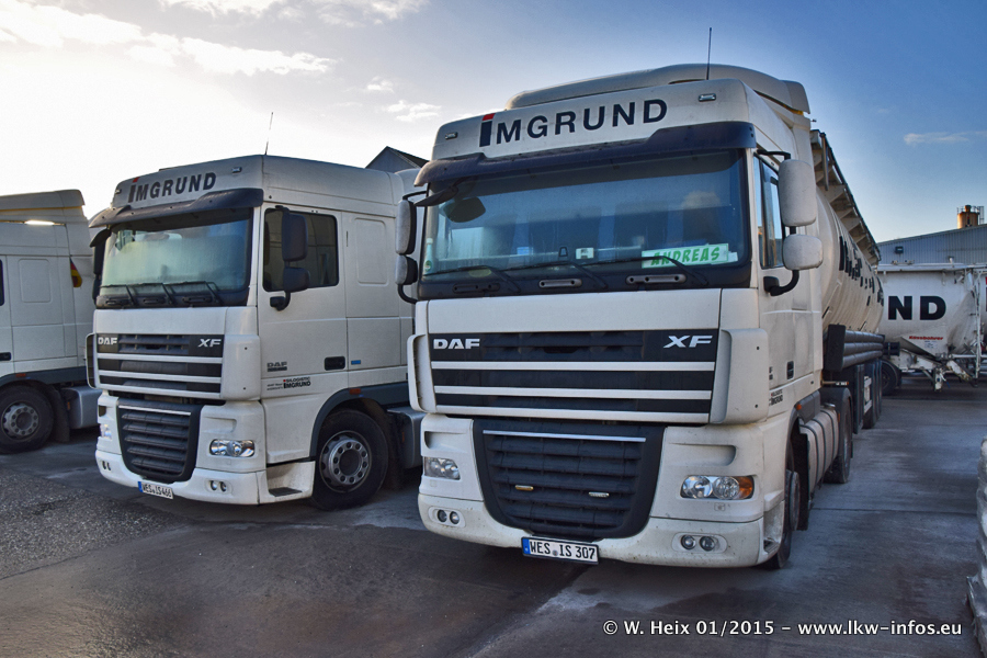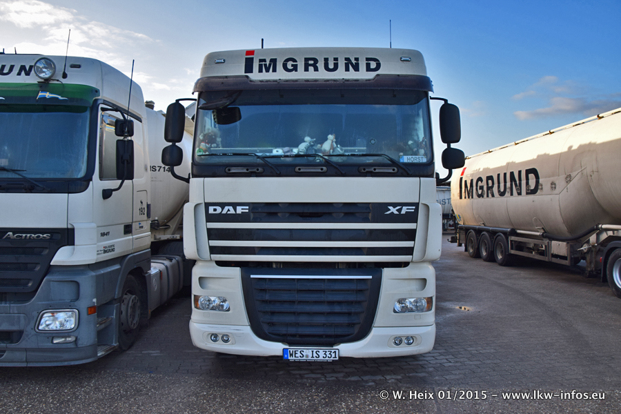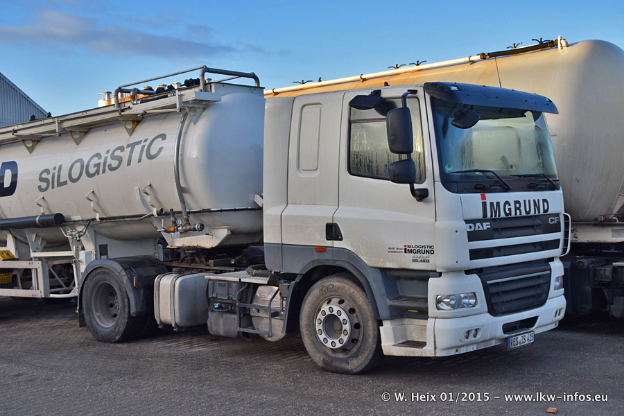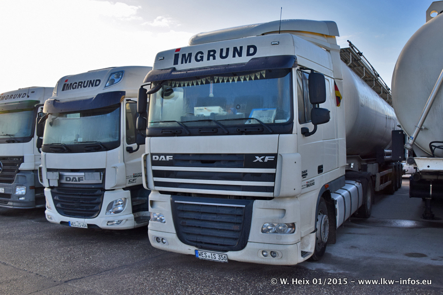 Ich war rund 2 Jahre nicht mehr bei Imgrnd. Entsprechend gibt es einige neue Fahrzeuge. Neben weiteren Mercedes-Benz Actros 4 sind seit eingen Tagen die ersten DAF New CF Euro 6 im Fuhrpark. Die Zugmaschinen ohne Kennzeichen werden in den nächsten Tagen die ersten Neuzulassungen 2015 sein. Neu sind auch die Kippauflieger, die mit den neuen DAF-Zugmaschinen eingesetzt werden.