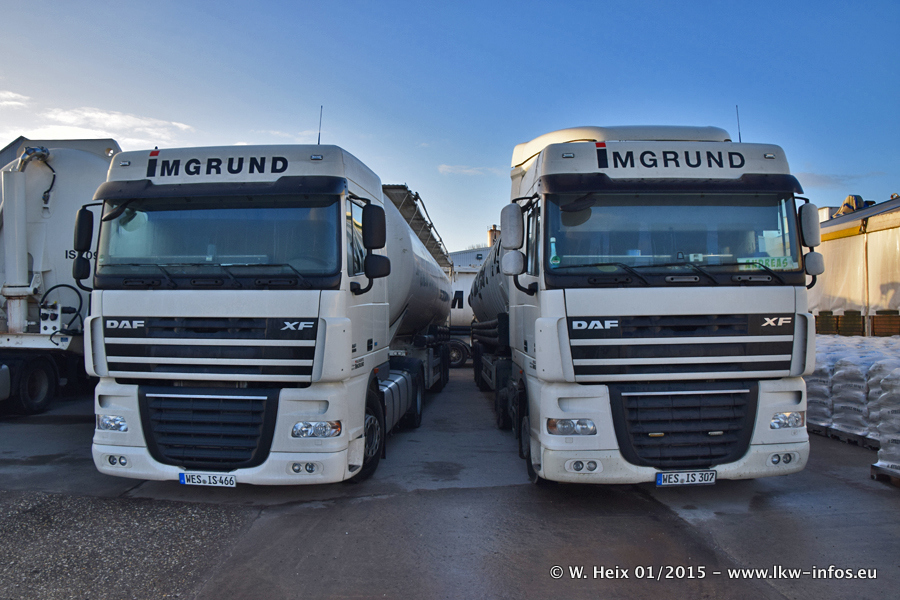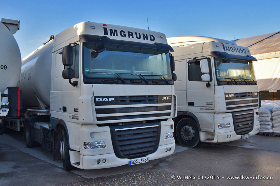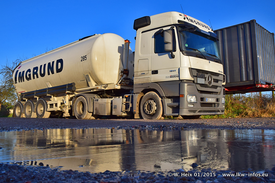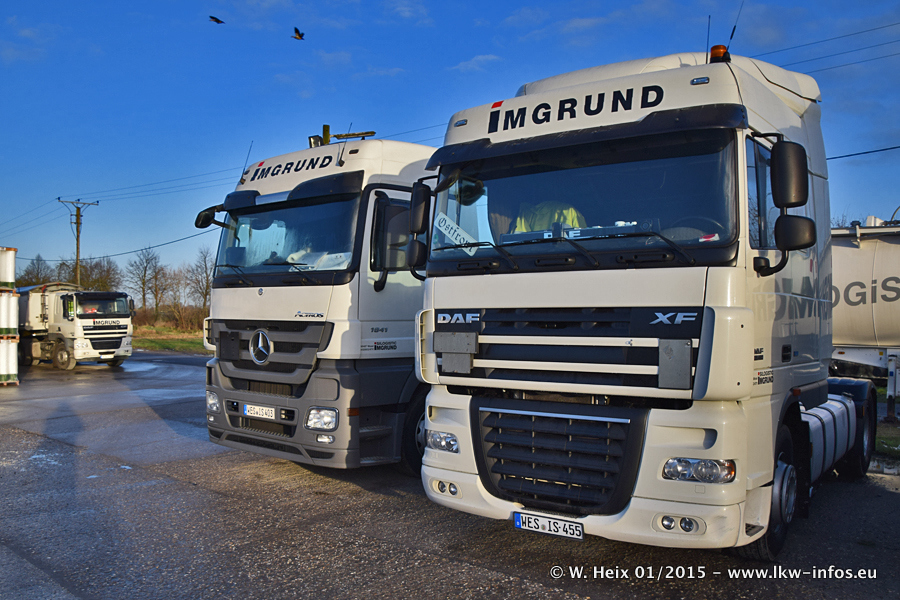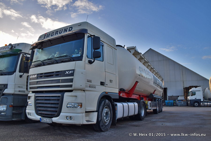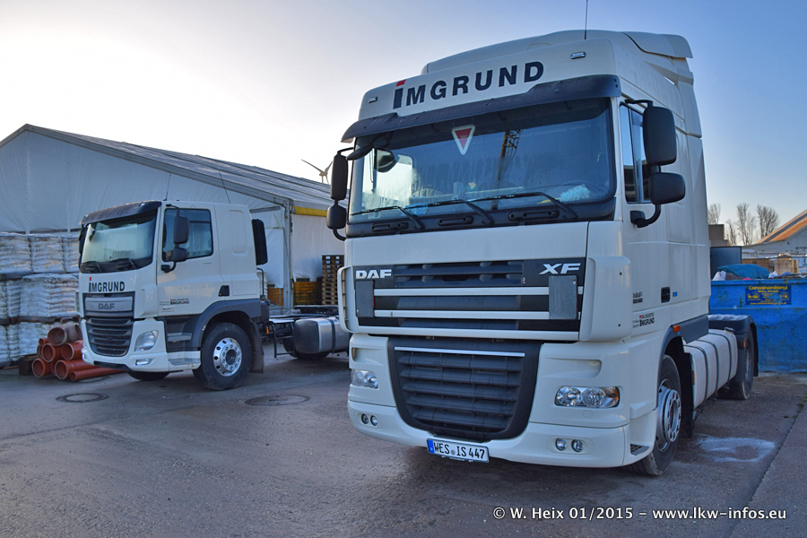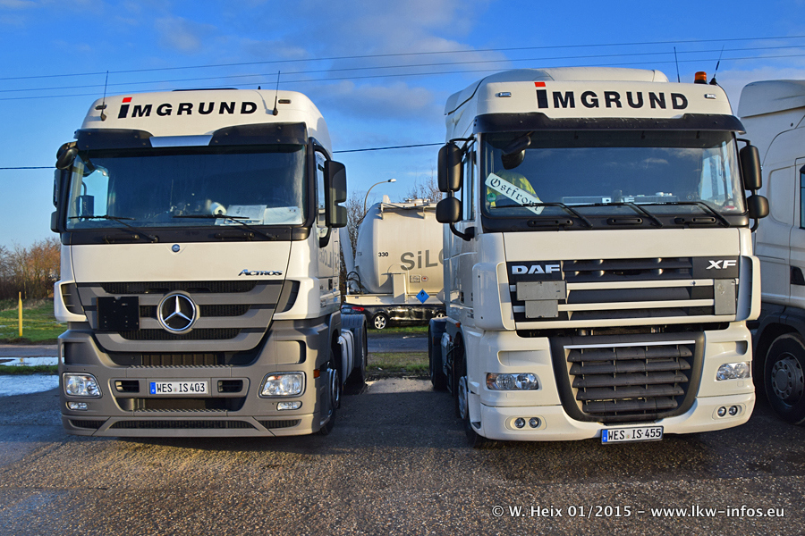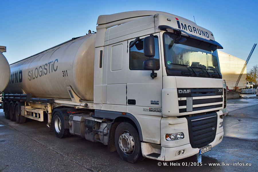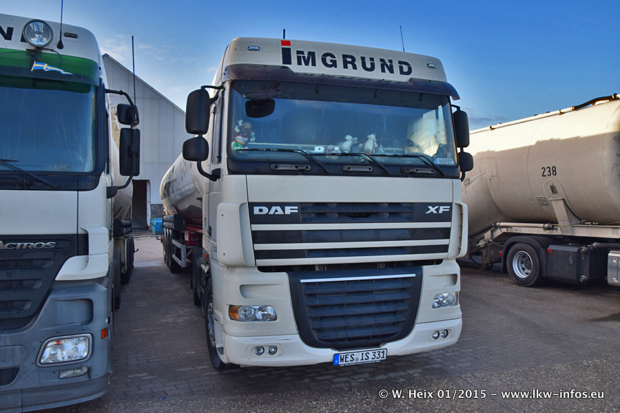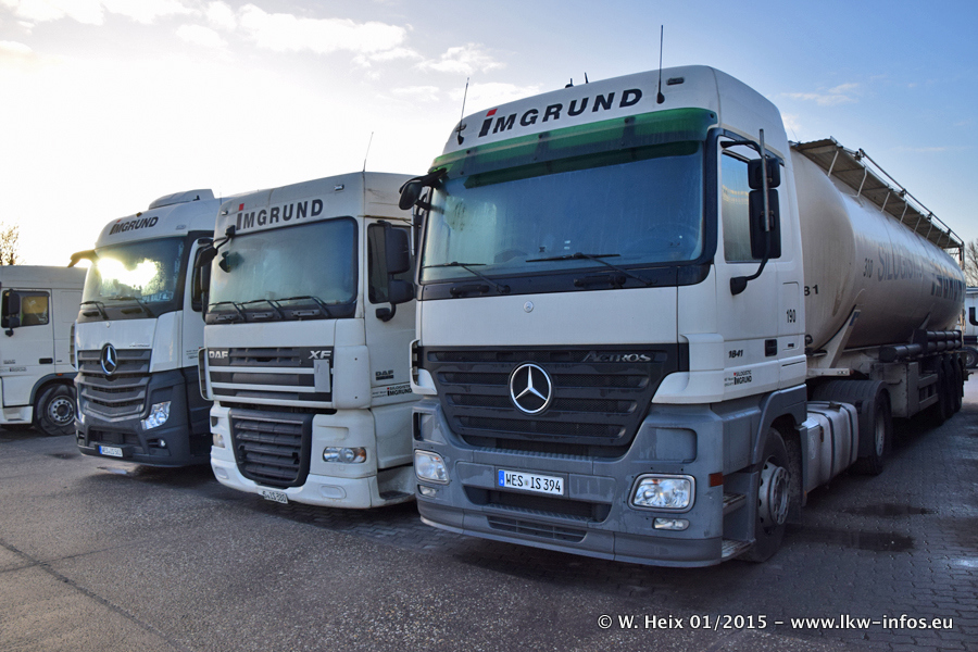 Ich war rund 2 Jahre nicht mehr bei Imgrnd. Entsprechend gibt es einige neue Fahrzeuge. Neben weiteren Mercedes-Benz Actros 4 sind seit eingen Tagen die ersten DAF New CF Euro 6 im Fuhrpark. Die Zugmaschinen ohne Kennzeichen werden in den nächsten Tagen die ersten Neuzulassungen 2015 sein. Neu sind auch die Kippauflieger, die mit den neuen DAF-Zugmaschinen eingesetzt werden.