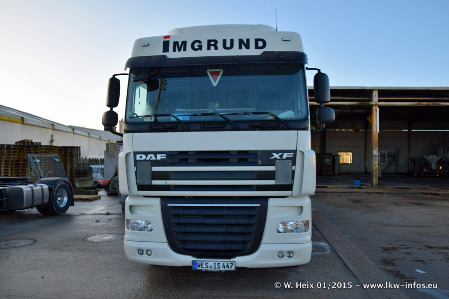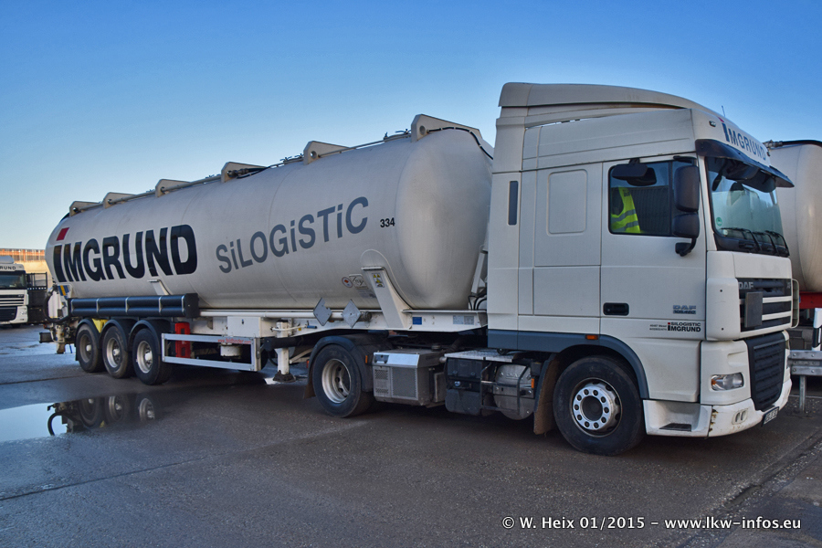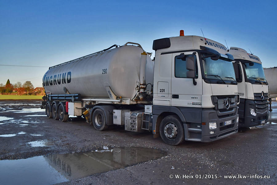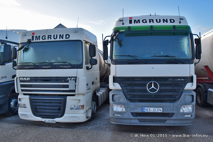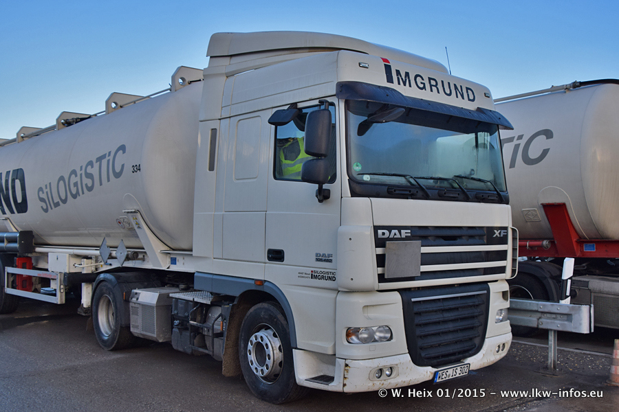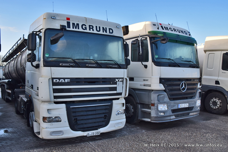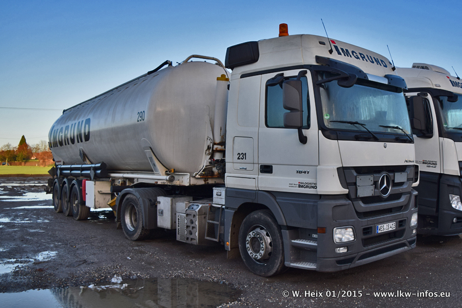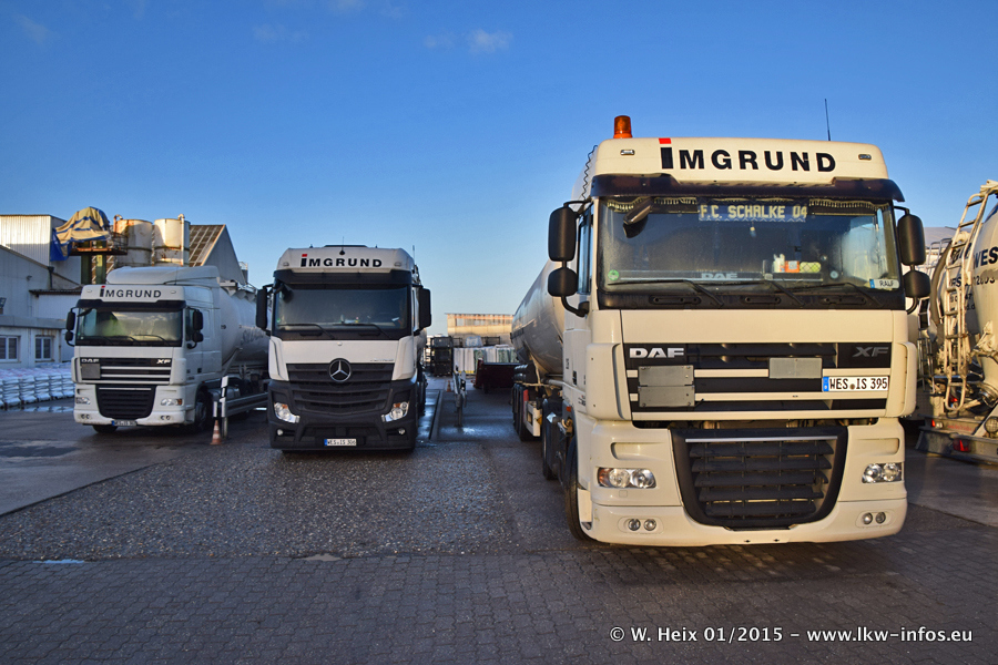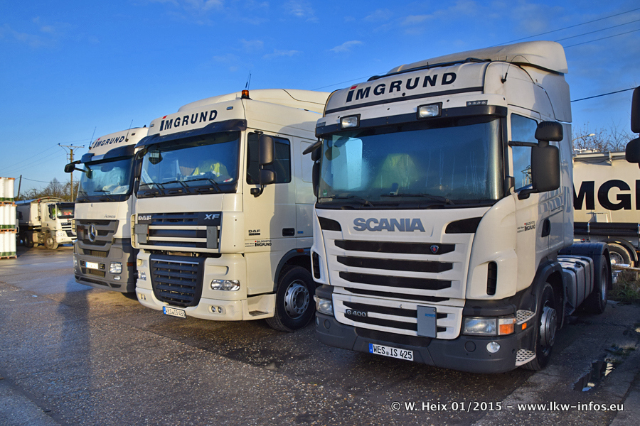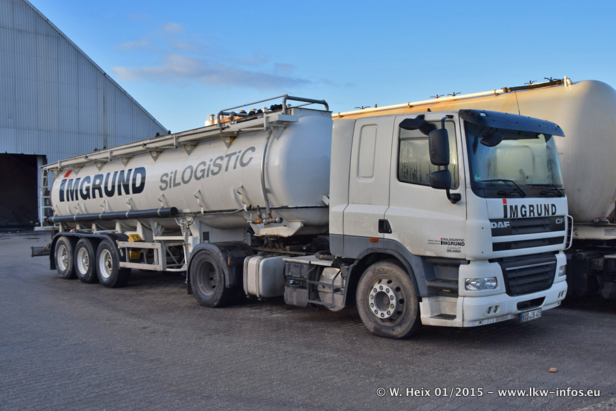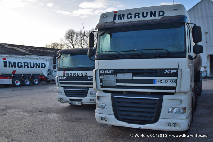 Ich war rund 2 Jahre nicht mehr bei Imgrnd. Entsprechend gibt es einige neue Fahrzeuge. Neben weiteren Mercedes-Benz Actros 4 sind seit eingen Tagen die ersten DAF New CF Euro 6 im Fuhrpark. Die Zugmaschinen ohne Kennzeichen werden in den nächsten Tagen die ersten Neuzulassungen 2015 sein. Neu sind auch die Kippauflieger, die mit den neuen DAF-Zugmaschinen eingesetzt werden.
