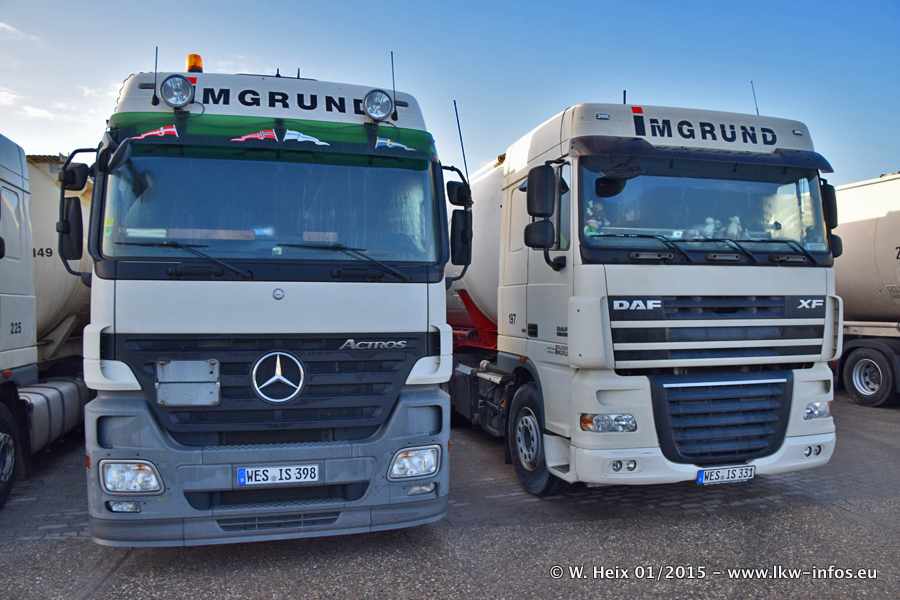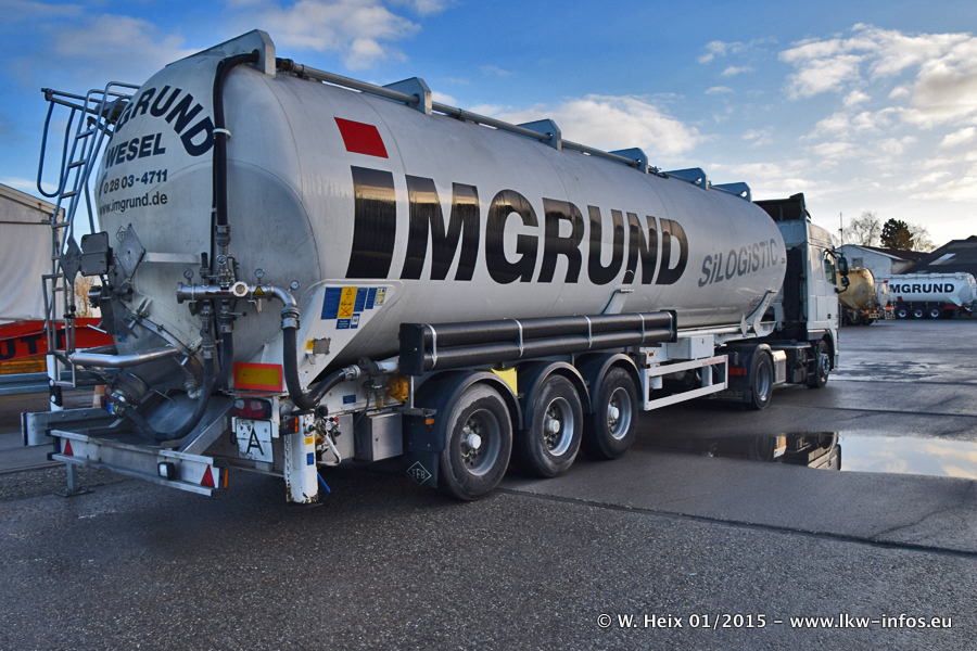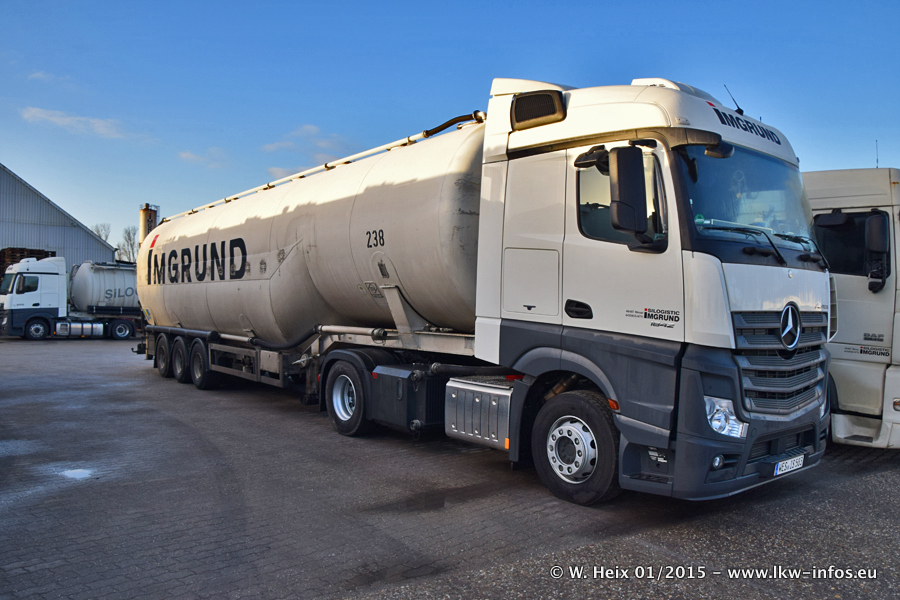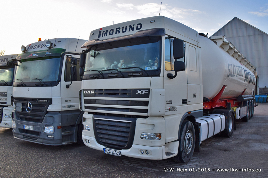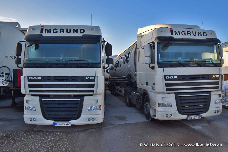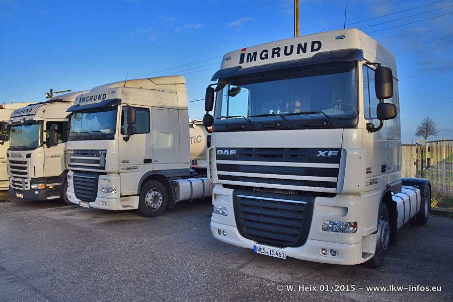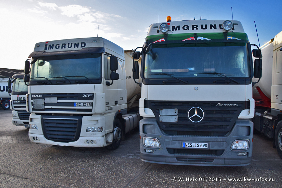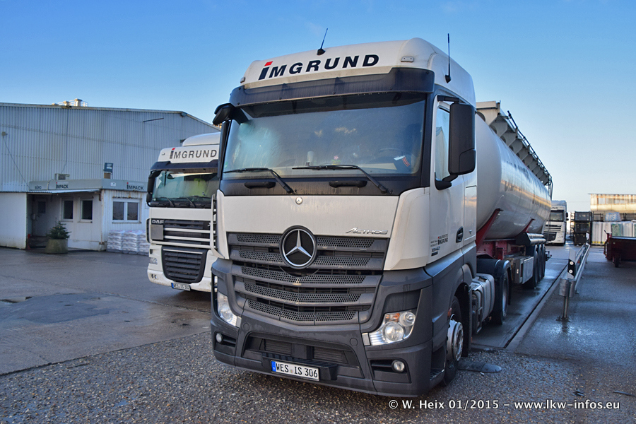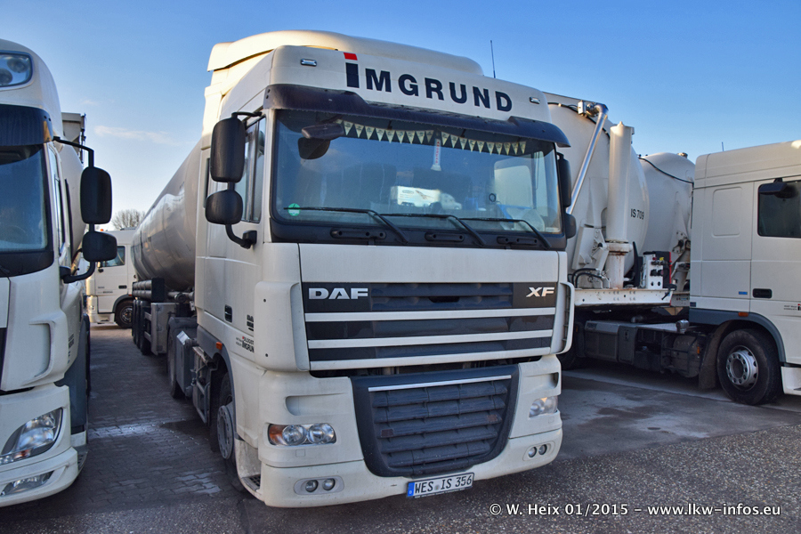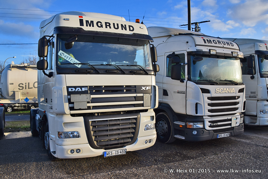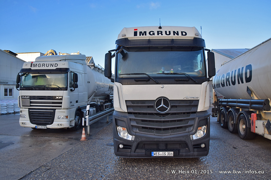 Ich war rund 2 Jahre nicht mehr bei Imgrnd. Entsprechend gibt es einige neue Fahrzeuge. Neben weiteren Mercedes-Benz Actros 4 sind seit eingen Tagen die ersten DAF New CF Euro 6 im Fuhrpark. Die Zugmaschinen ohne Kennzeichen werden in den nächsten Tagen die ersten Neuzulassungen 2015 sein. Neu sind auch die Kippauflieger, die mit den neuen DAF-Zugmaschinen eingesetzt werden.