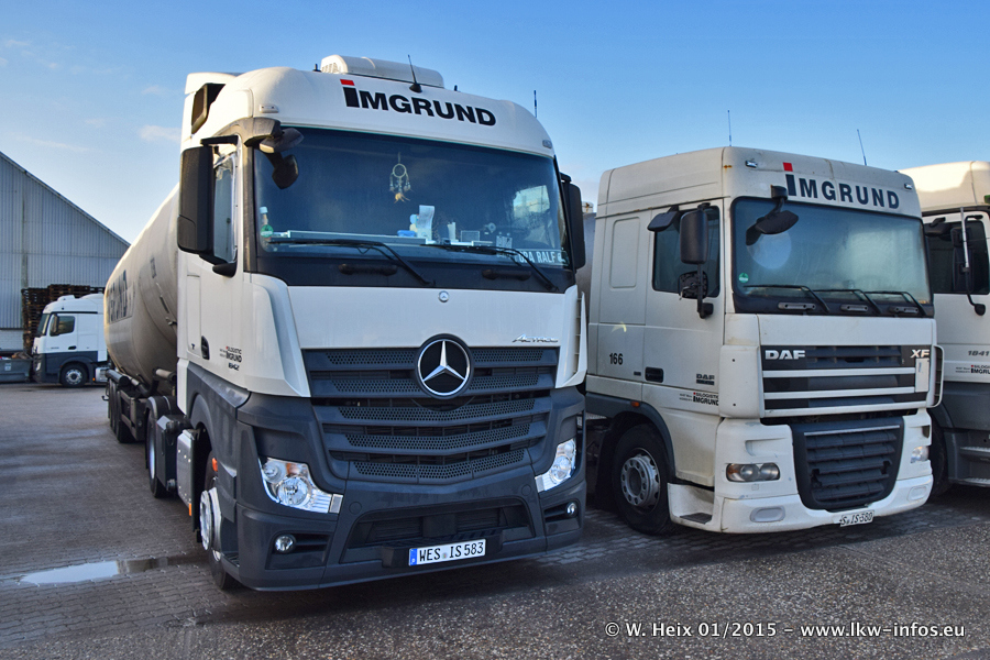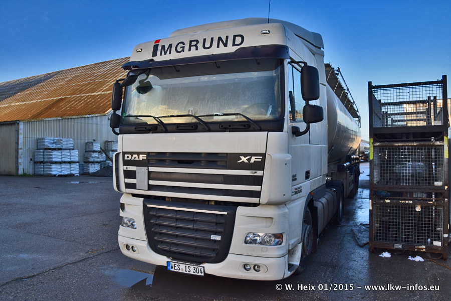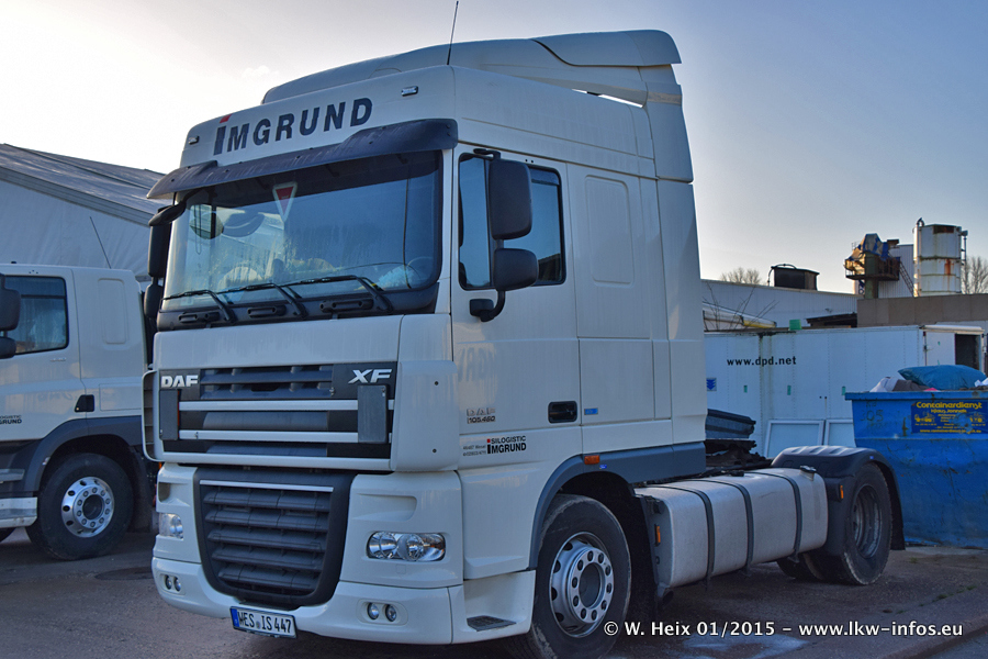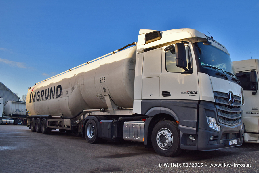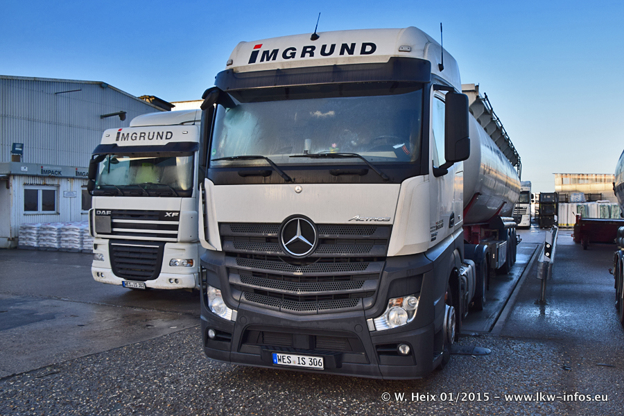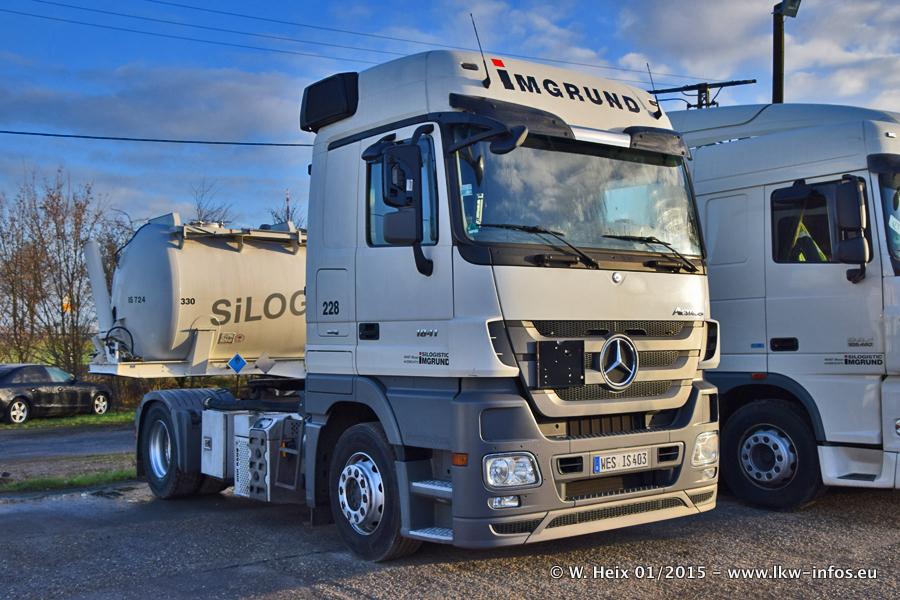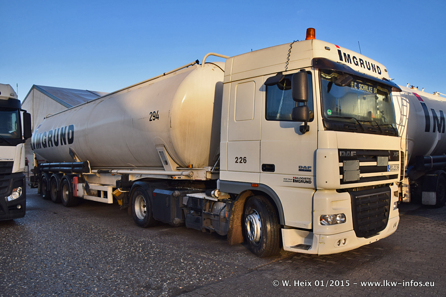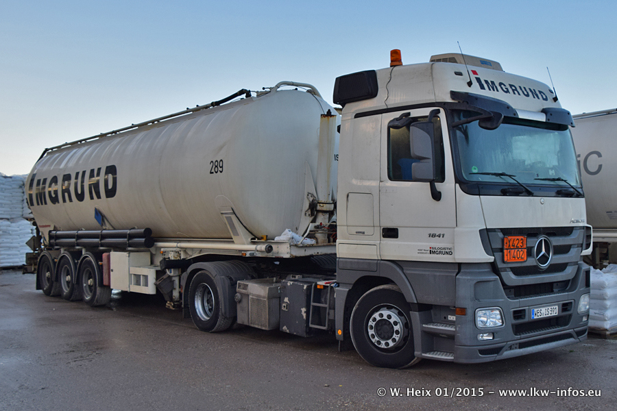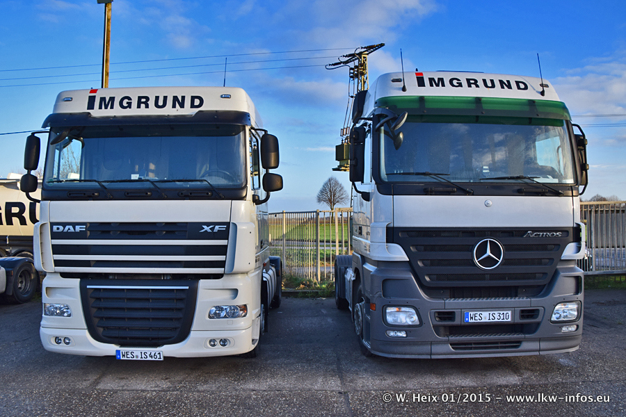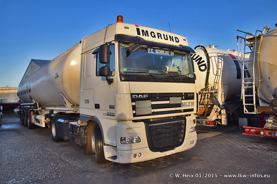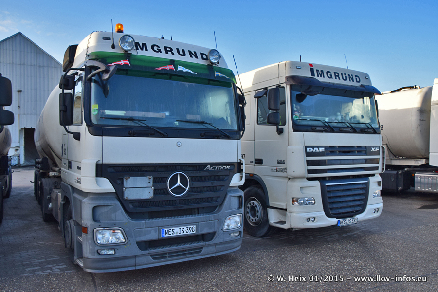 Ich war rund 2 Jahre nicht mehr bei Imgrnd. Entsprechend gibt es einige neue Fahrzeuge. Neben weiteren Mercedes-Benz Actros 4 sind seit eingen Tagen die ersten DAF New CF Euro 6 im Fuhrpark. Die Zugmaschinen ohne Kennzeichen werden in den nächsten Tagen die ersten Neuzulassungen 2015 sein. Neu sind auch die Kippauflieger, die mit den neuen DAF-Zugmaschinen eingesetzt werden.