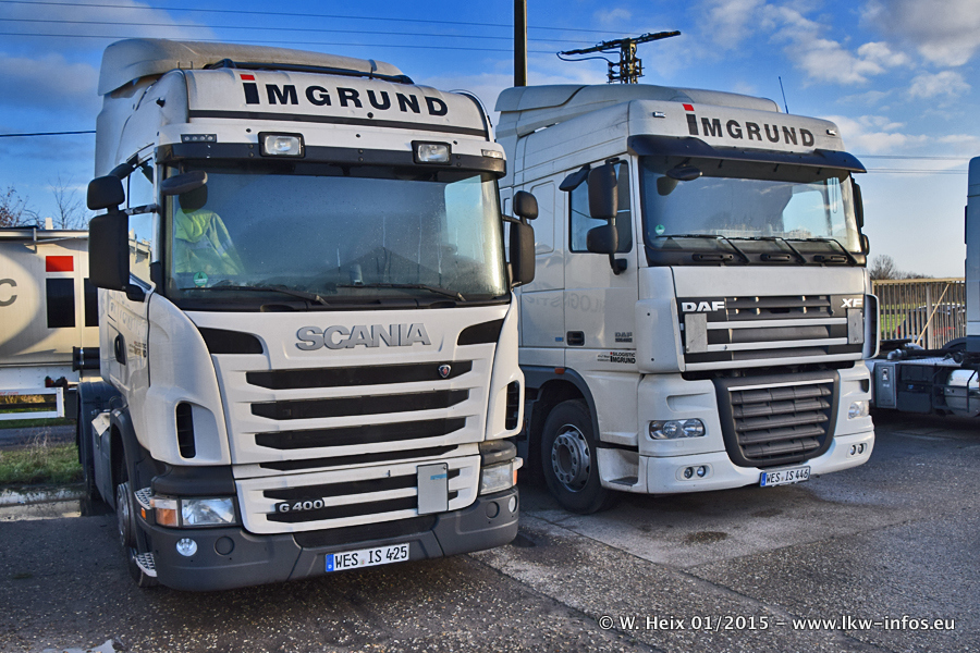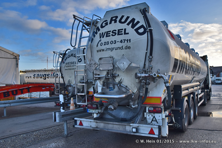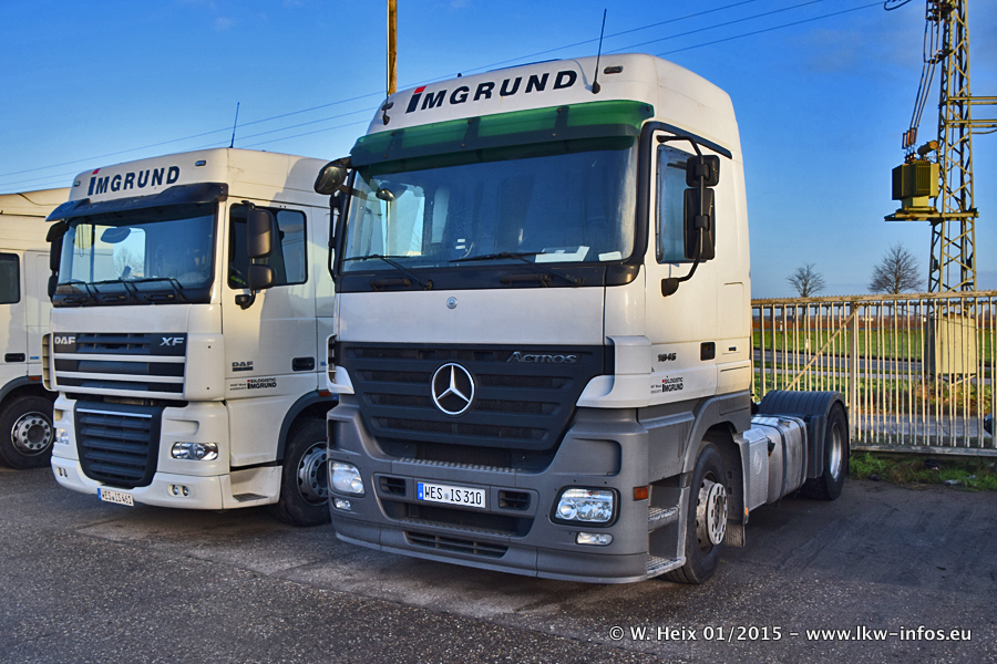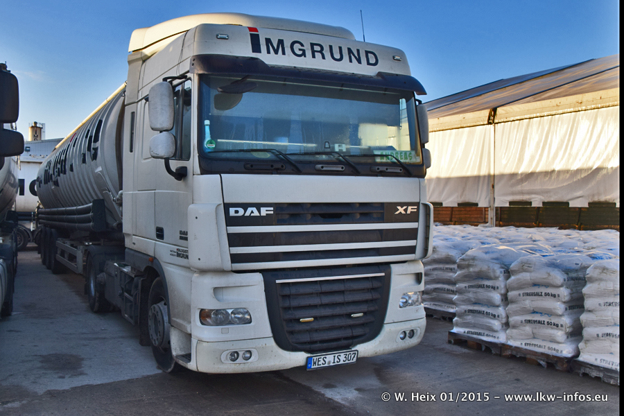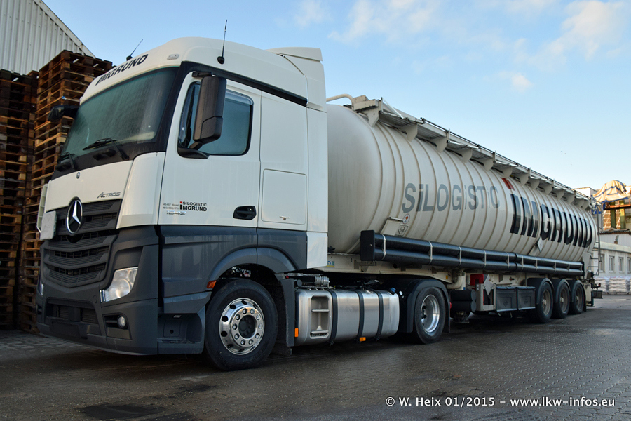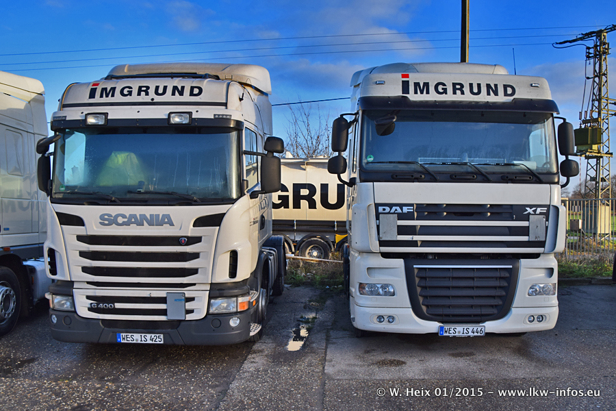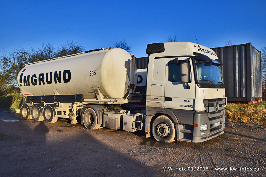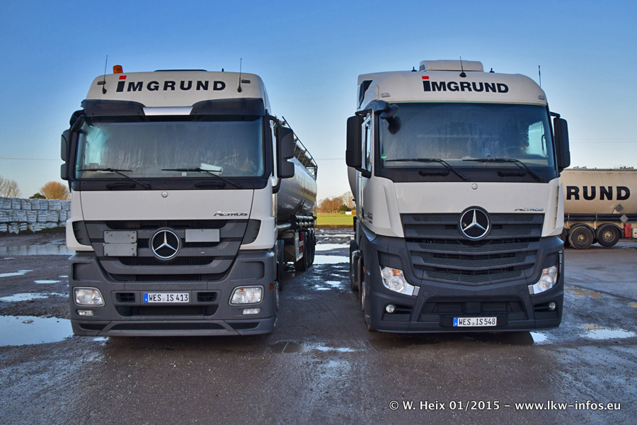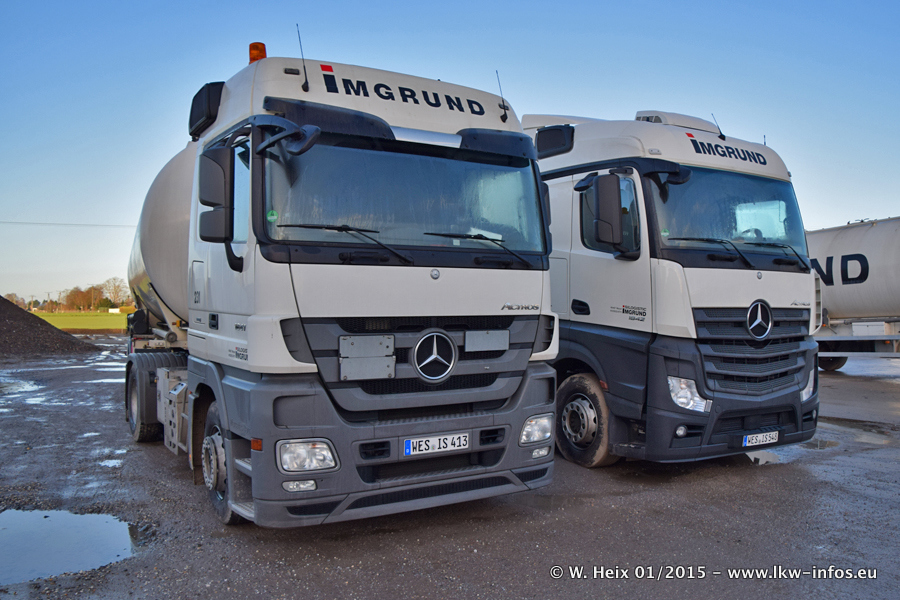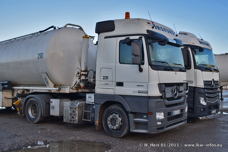 Ich war rund 2 Jahre nicht mehr bei Imgrnd. Entsprechend gibt es einige neue Fahrzeuge. Neben weiteren Mercedes-Benz Actros 4 sind seit eingen Tagen die ersten DAF New CF Euro 6 im Fuhrpark. Die Zugmaschinen ohne Kennzeichen werden in den nächsten Tagen die ersten Neuzulassungen 2015 sein. Neu sind auch die Kippauflieger, die mit den neuen DAF-Zugmaschinen eingesetzt werden.