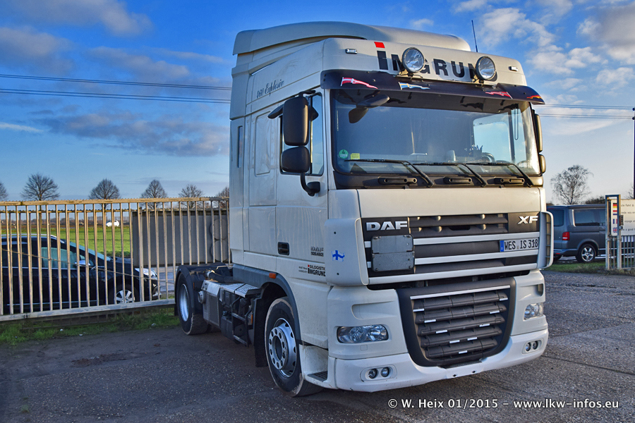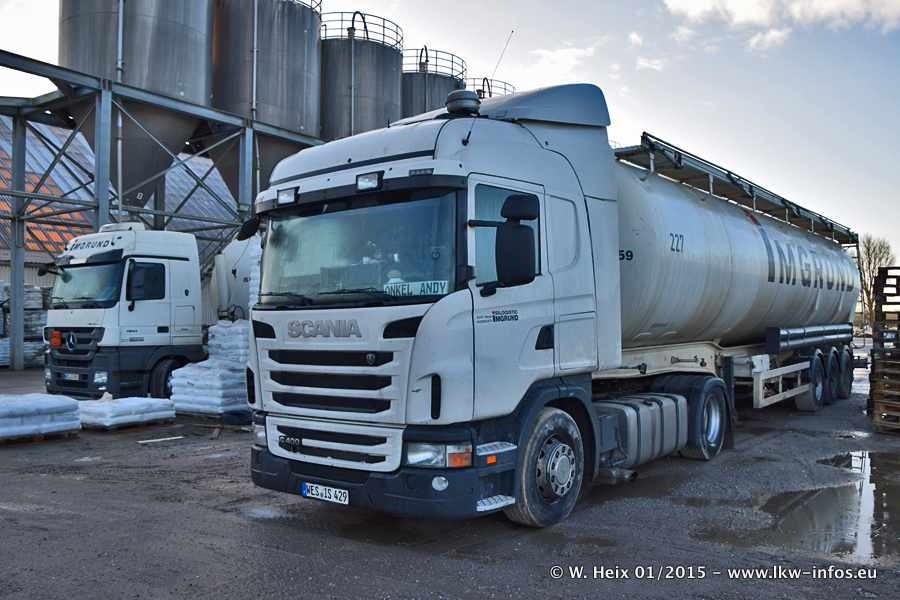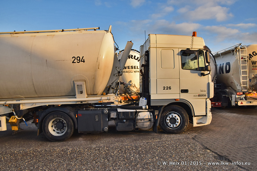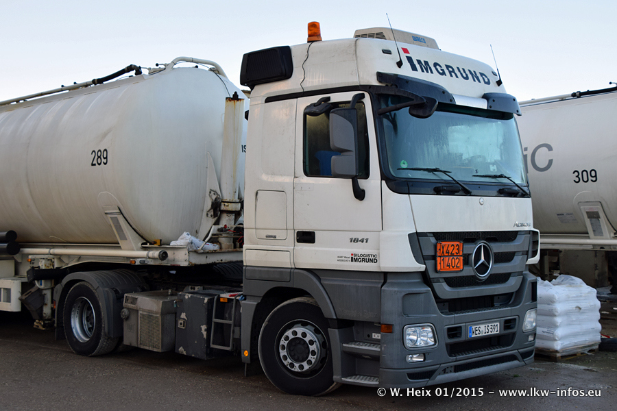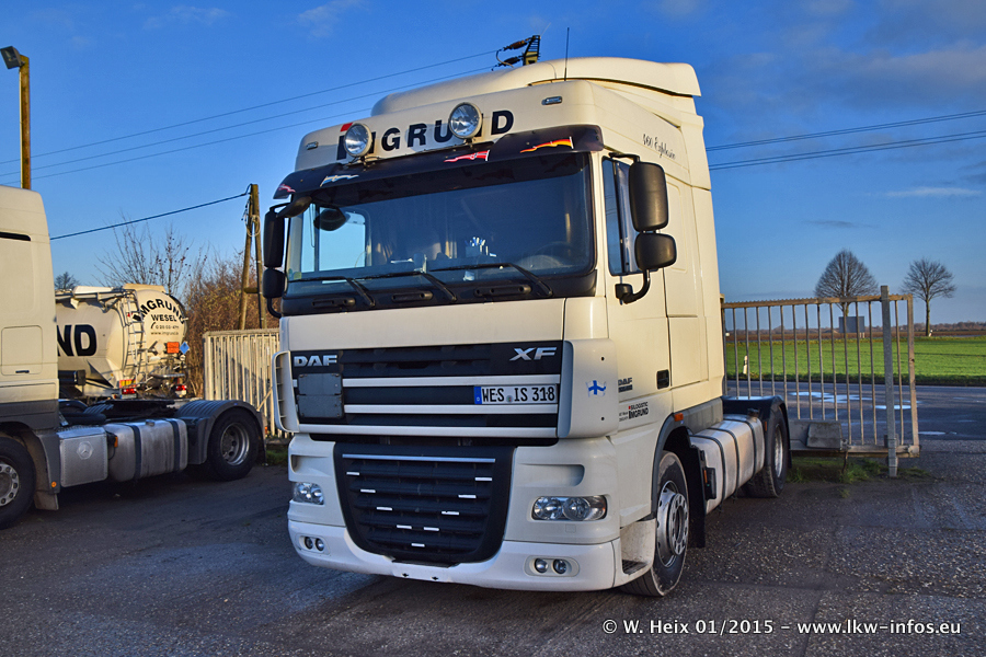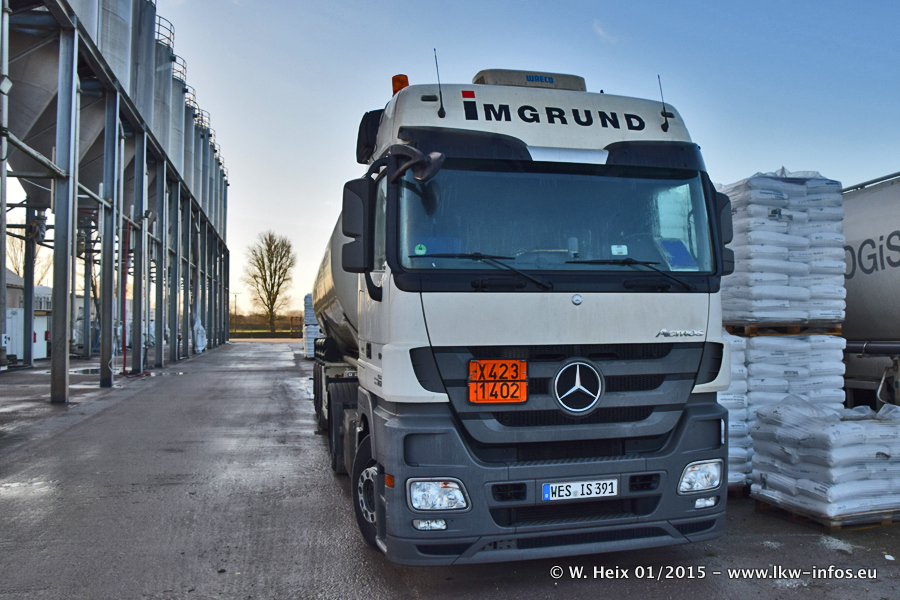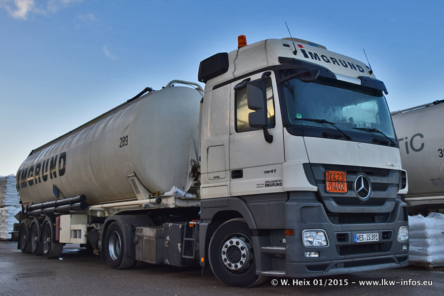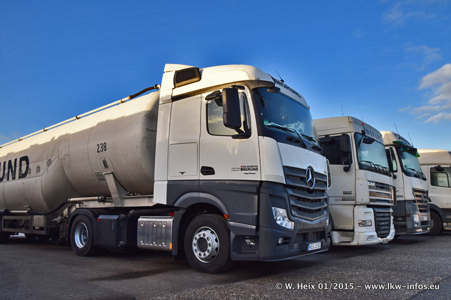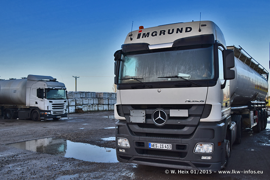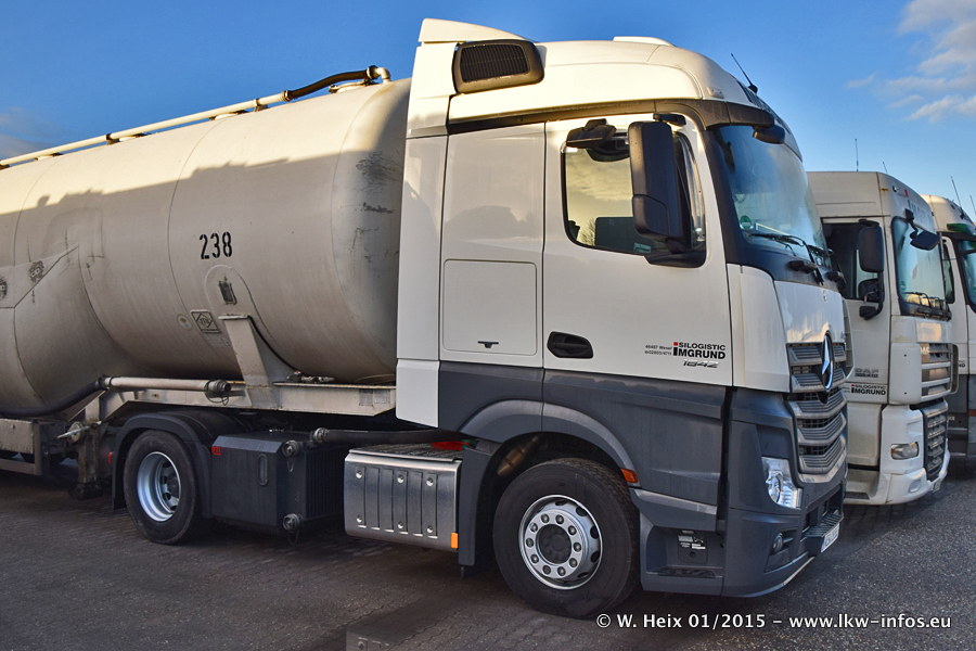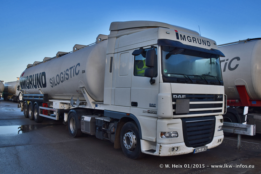 Ich war rund 2 Jahre nicht mehr bei Imgrnd. Entsprechend gibt es einige neue Fahrzeuge. Neben weiteren Mercedes-Benz Actros 4 sind seit eingen Tagen die ersten DAF New CF Euro 6 im Fuhrpark. Die Zugmaschinen ohne Kennzeichen werden in den nächsten Tagen die ersten Neuzulassungen 2015 sein. Neu sind auch die Kippauflieger, die mit den neuen DAF-Zugmaschinen eingesetzt werden.