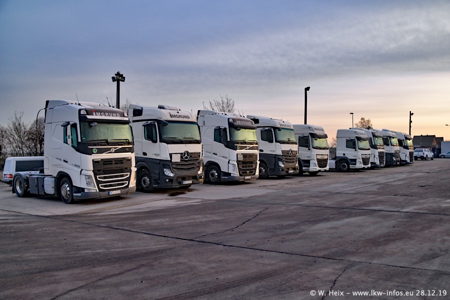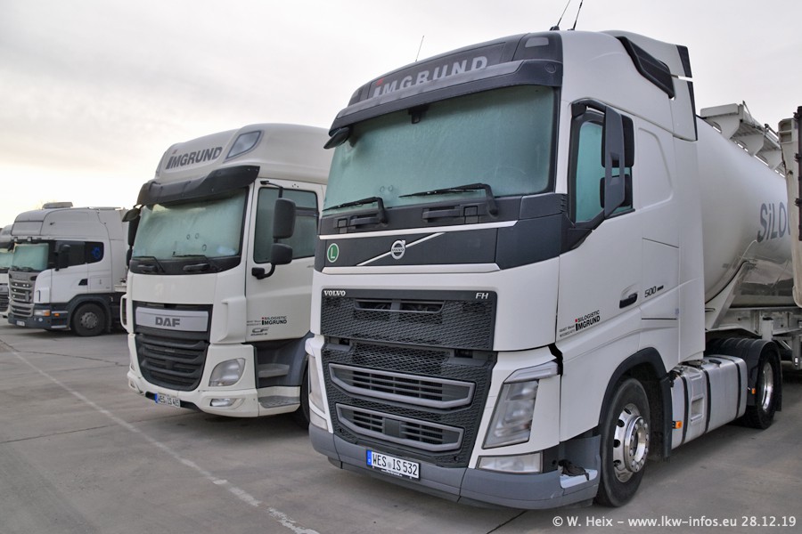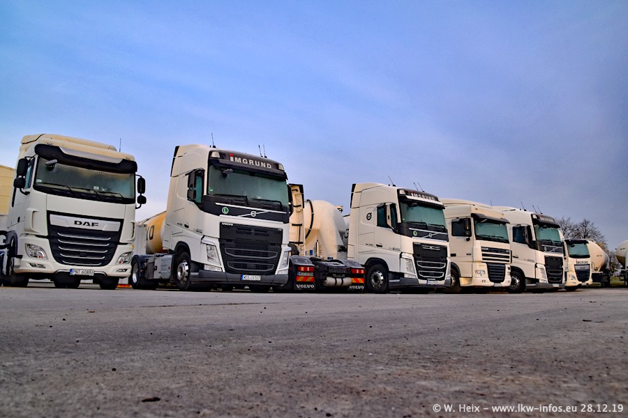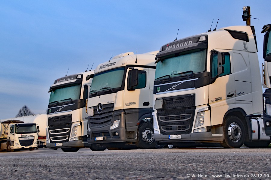 Nach 14 Monaten Pause habe ich mal wieder die Spedition Imgrund besucht. Kurz nach Sonnenaufgang und bei winterlichem Wetter mit -2°C konnte ich einige schöne Bilder machen. Es fällt auf, dass so einige VOLVO FH 4 neu in den Fuhrpark gekommen sind seit Oktober 2018. Wegen des extrem schlechten Wetters der letzten Wochen und Tage sind einige Fahrzeuge schmutzig, was sich nicht vermeiden lässt.