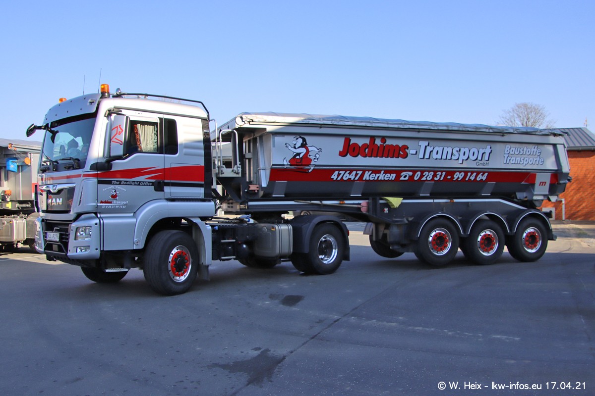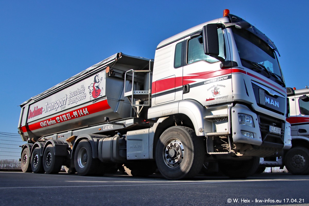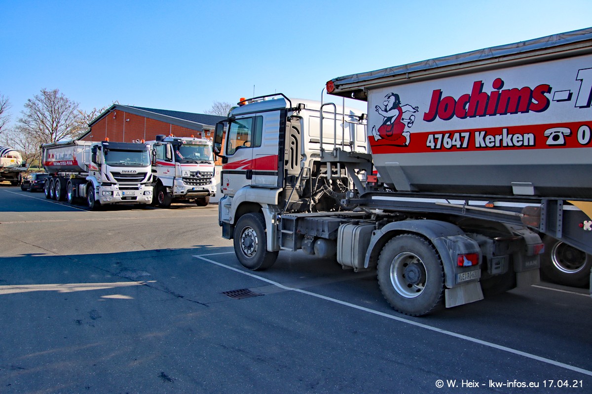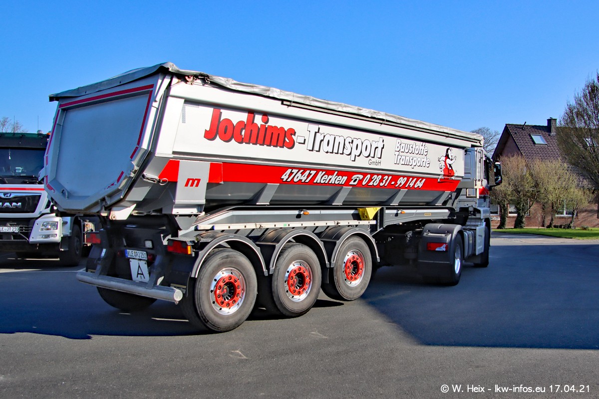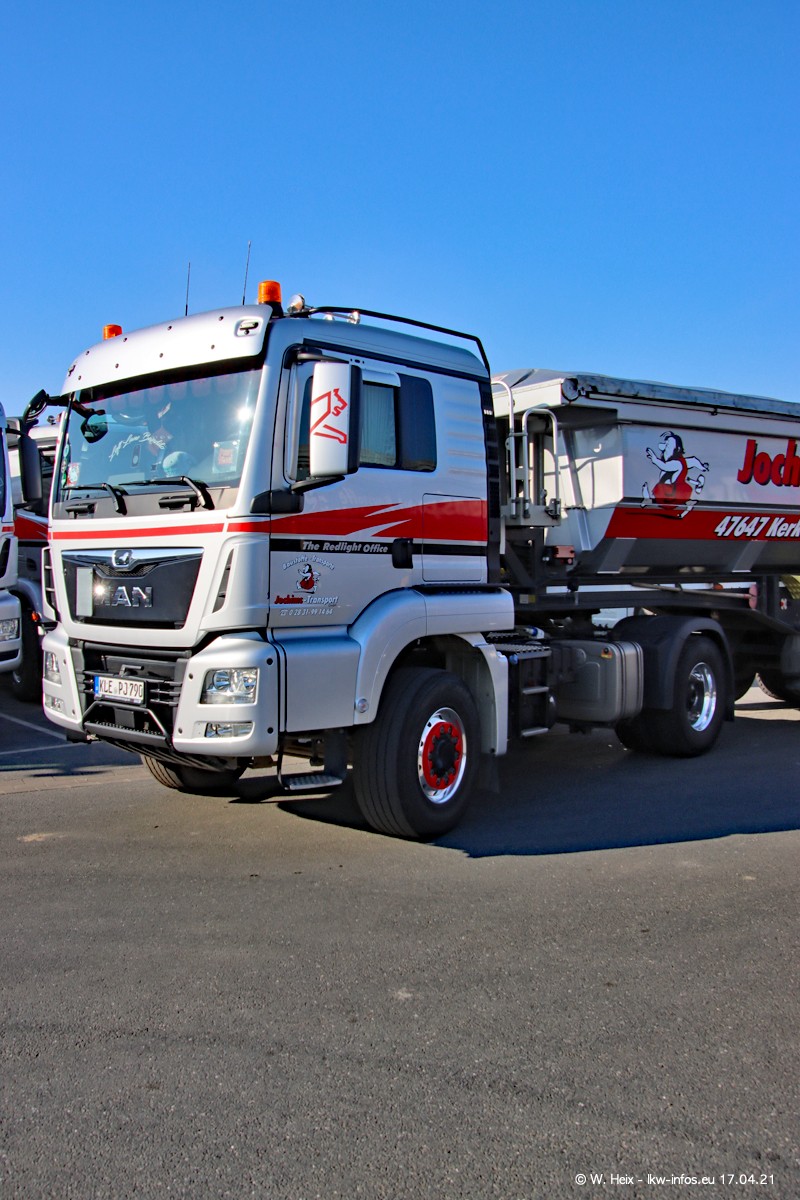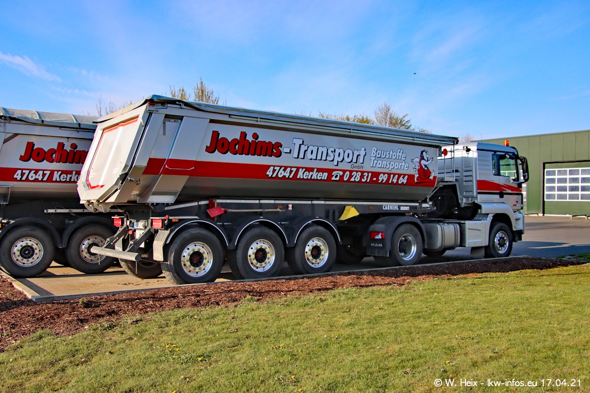 Es sind schon wieder fast 1,5 Jahre vergangen, seit ich zuletzt bei Jochims zu Besuch war. Entsprechend gibt es viele neue LKW. Das sind meines Wissens alles Zugmaschinen von MAN, zu erkennen an den jetzt geänderten Kennzeichen mit der Kombination "KLE JT" und nicht mehr "KLE PJ". Jochims hat in der letzten Zeit noch viele MAN TGS der jetzt alten Baureihe gekauft, aber jetzt ist auch seit einigen Wochen der erste neue MAN TGS im Fuhrpark. Wir haben ein kleines Fotoshooting auf den Gelände gemacht und den alten und den neuen MAN nebeneinander gestellt. Im Sommer kommen voraussichtlich weitere neue LKW. Alle Bilder sind vom Hauptsitz in Kerken, wo ungefähr die Hälfe der Fahrzeuge steht.