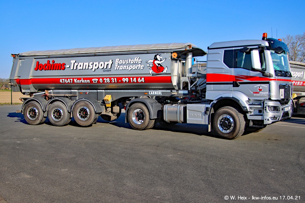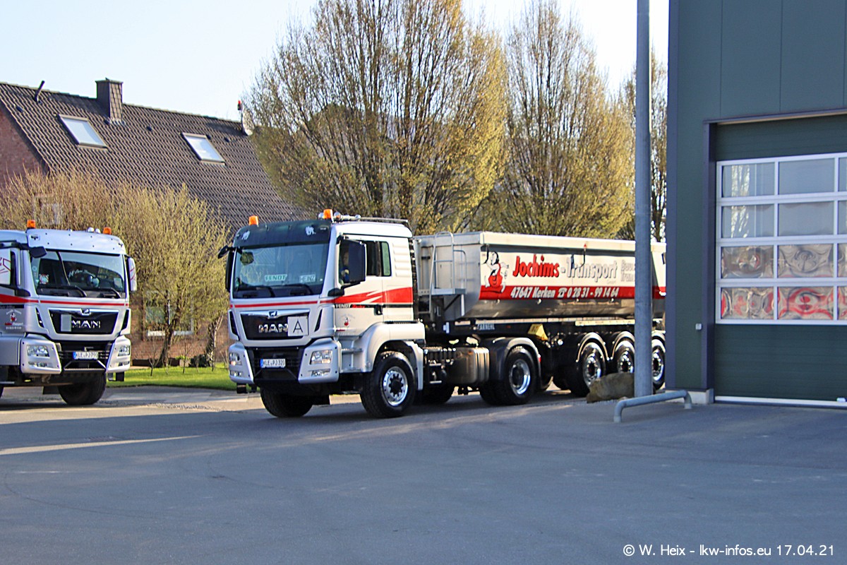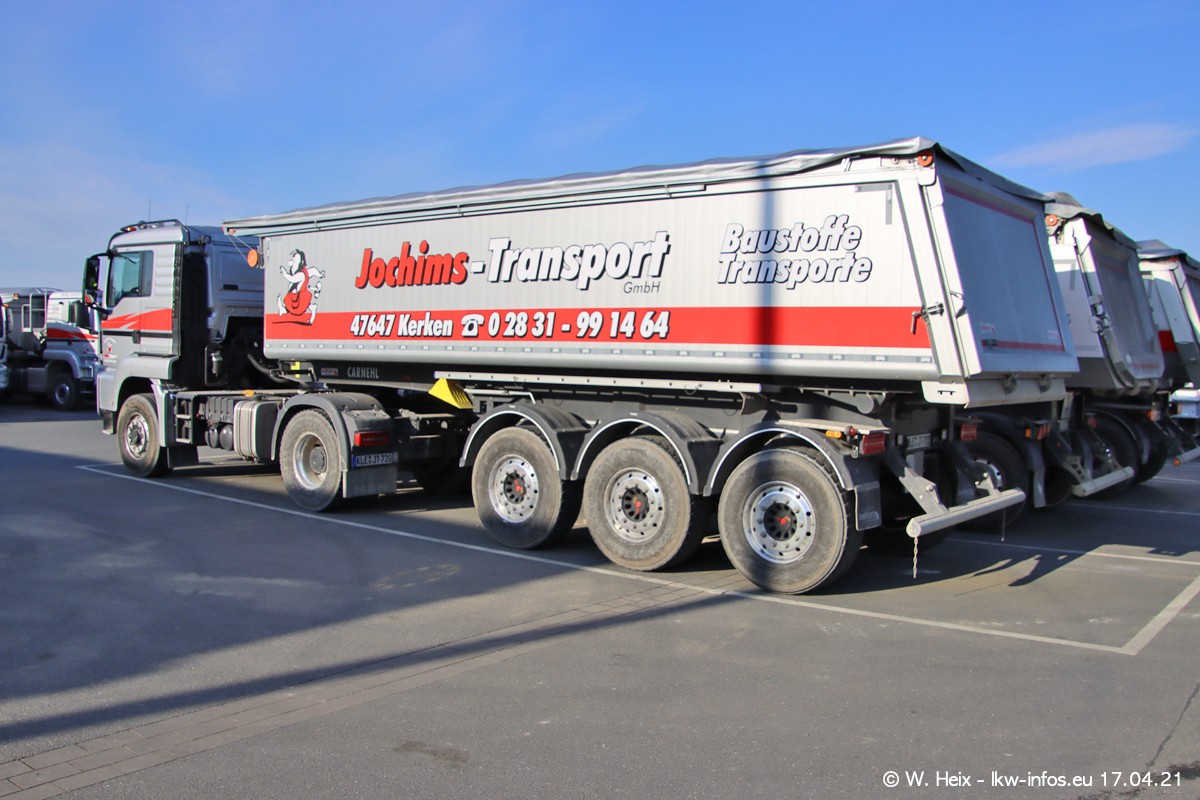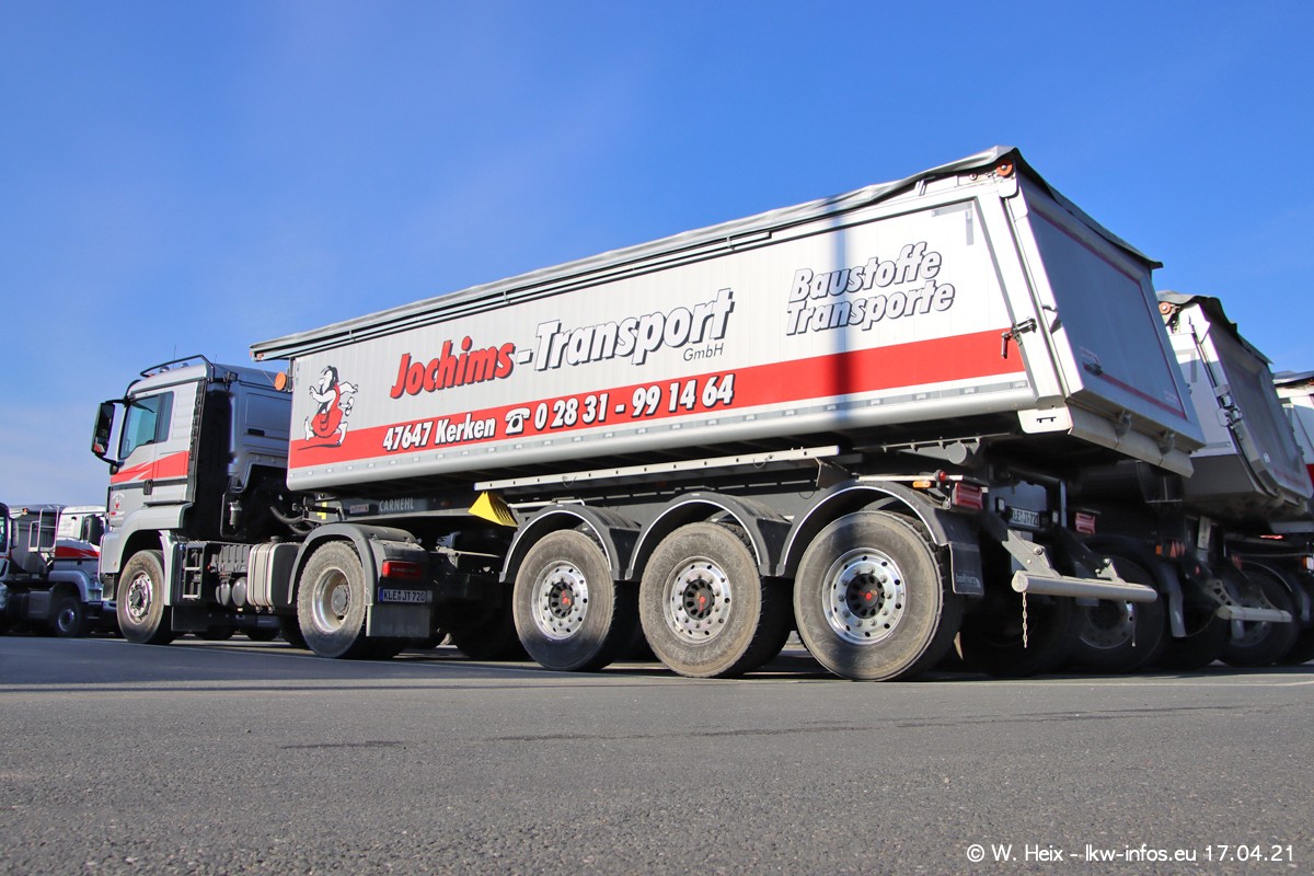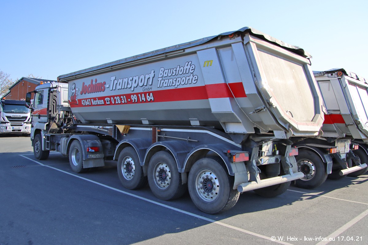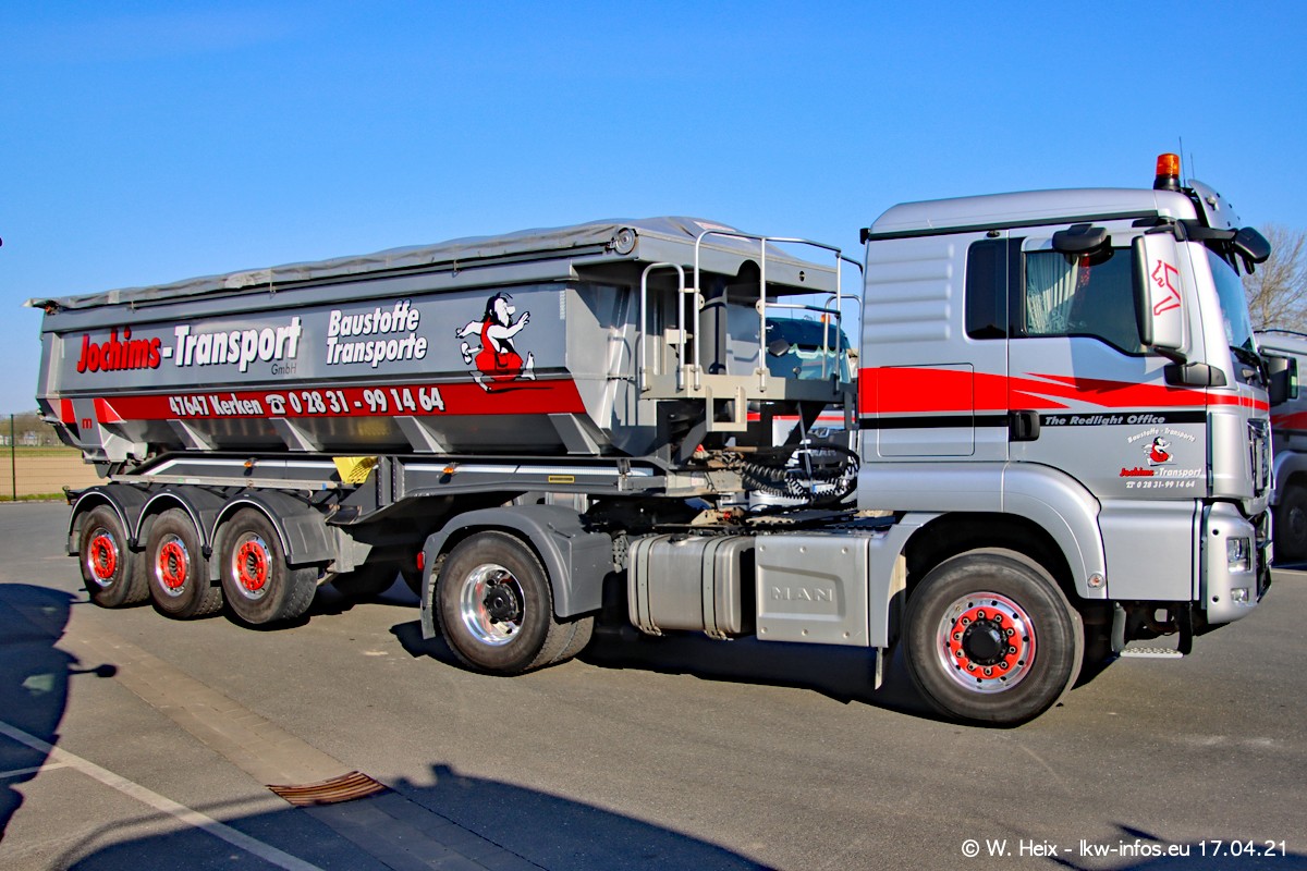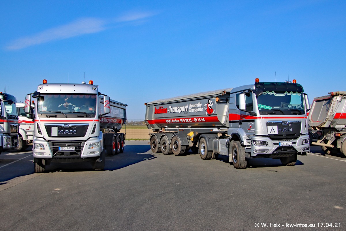 Es sind schon wieder fast 1,5 Jahre vergangen, seit ich zuletzt bei Jochims zu Besuch war. Entsprechend gibt es viele neue LKW. Das sind meines Wissens alles Zugmaschinen von MAN, zu erkennen an den jetzt geänderten Kennzeichen mit der Kombination "KLE JT" und nicht mehr "KLE PJ". Jochims hat in der letzten Zeit noch viele MAN TGS der jetzt alten Baureihe gekauft, aber jetzt ist auch seit einigen Wochen der erste neue MAN TGS im Fuhrpark. Wir haben ein kleines Fotoshooting auf den Gelände gemacht und den alten und den neuen MAN nebeneinander gestellt. Im Sommer kommen voraussichtlich weitere neue LKW. Alle Bilder sind vom Hauptsitz in Kerken, wo ungefähr die Hälfe der Fahrzeuge steht.