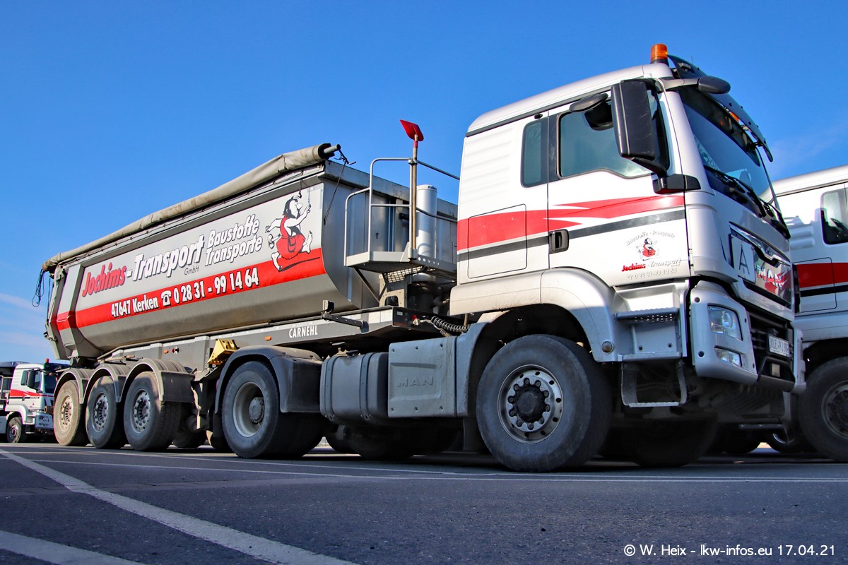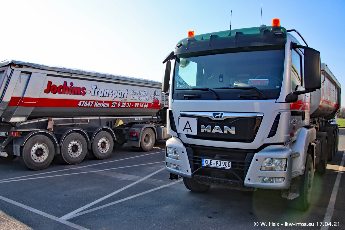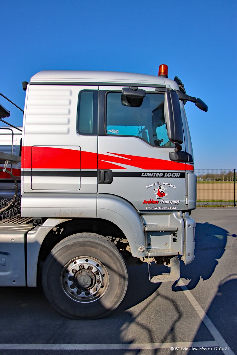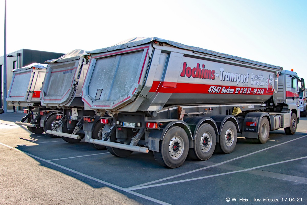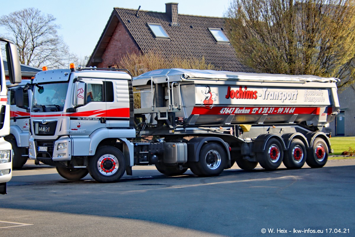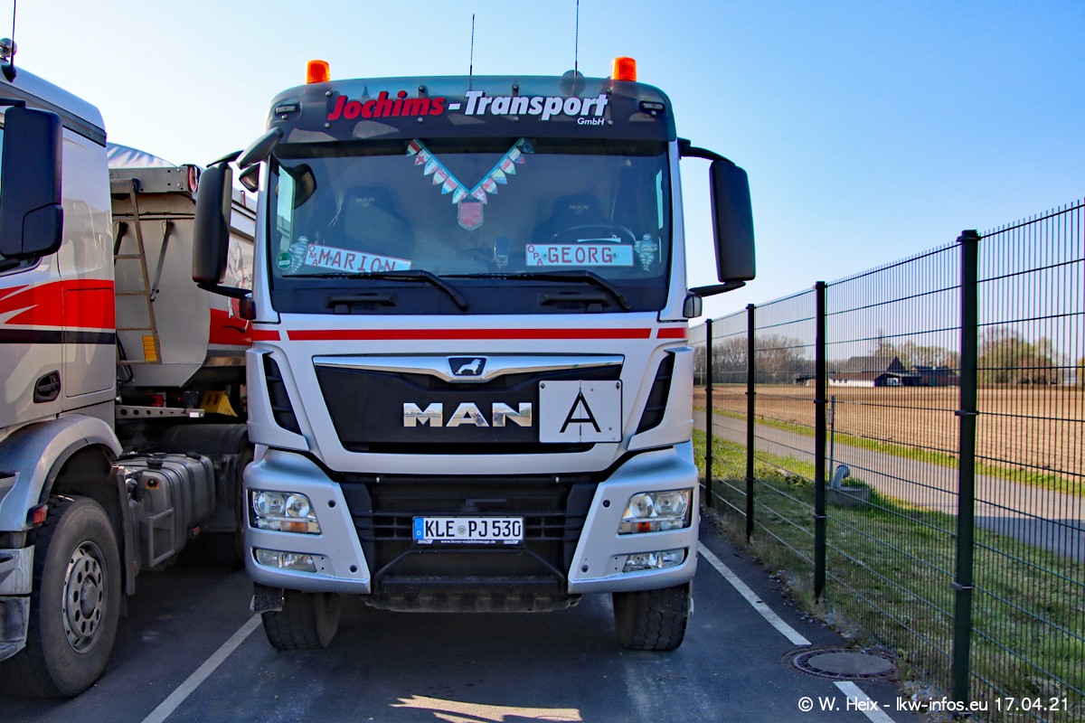 Es sind schon wieder fast 1,5 Jahre vergangen, seit ich zuletzt bei Jochims zu Besuch war. Entsprechend gibt es viele neue LKW. Das sind meines Wissens alles Zugmaschinen von MAN, zu erkennen an den jetzt geänderten Kennzeichen mit der Kombination "KLE JT" und nicht mehr "KLE PJ". Jochims hat in der letzten Zeit noch viele MAN TGS der jetzt alten Baureihe gekauft, aber jetzt ist auch seit einigen Wochen der erste neue MAN TGS im Fuhrpark. Wir haben ein kleines Fotoshooting auf den Gelände gemacht und den alten und den neuen MAN nebeneinander gestellt. Im Sommer kommen voraussichtlich weitere neue LKW. Alle Bilder sind vom Hauptsitz in Kerken, wo ungefähr die Hälfe der Fahrzeuge steht.