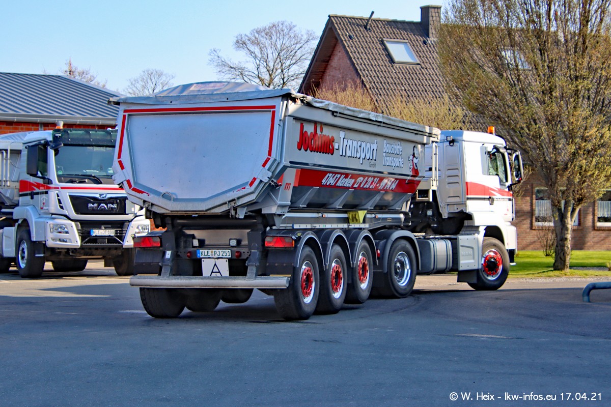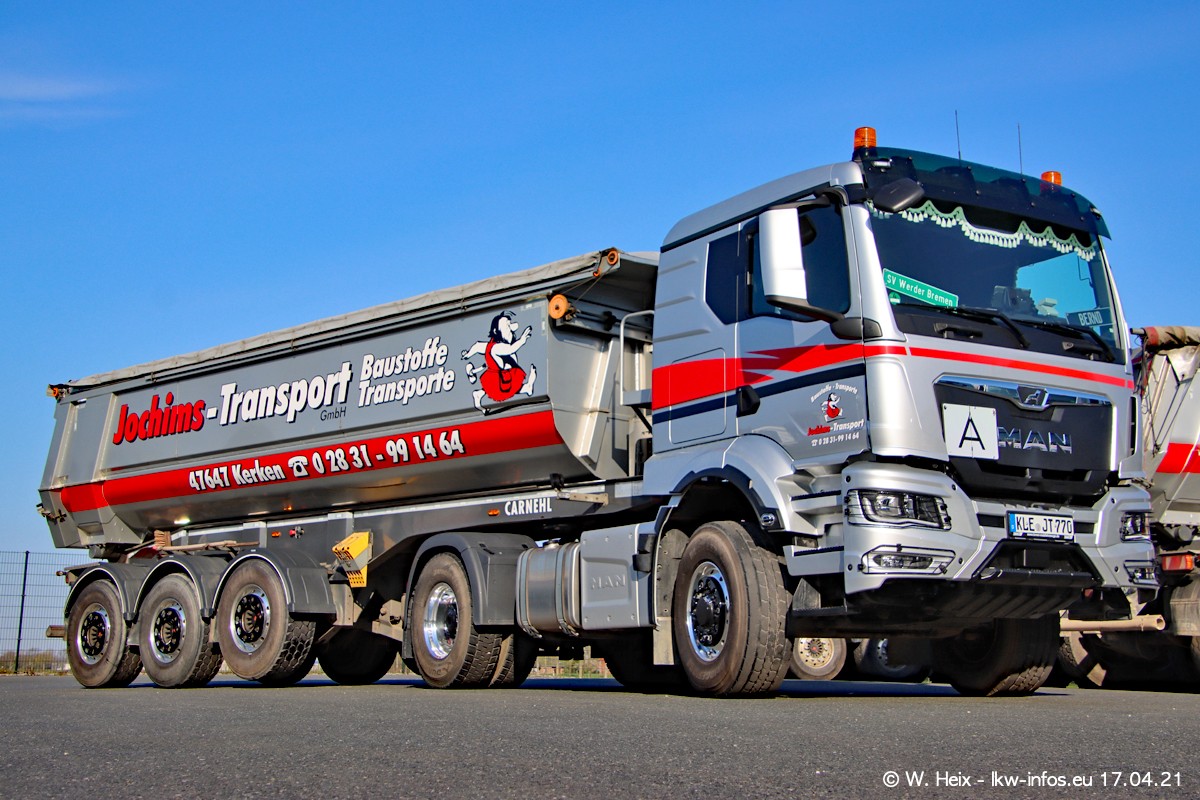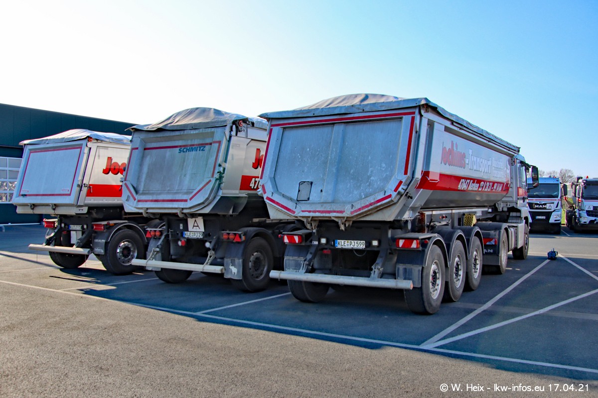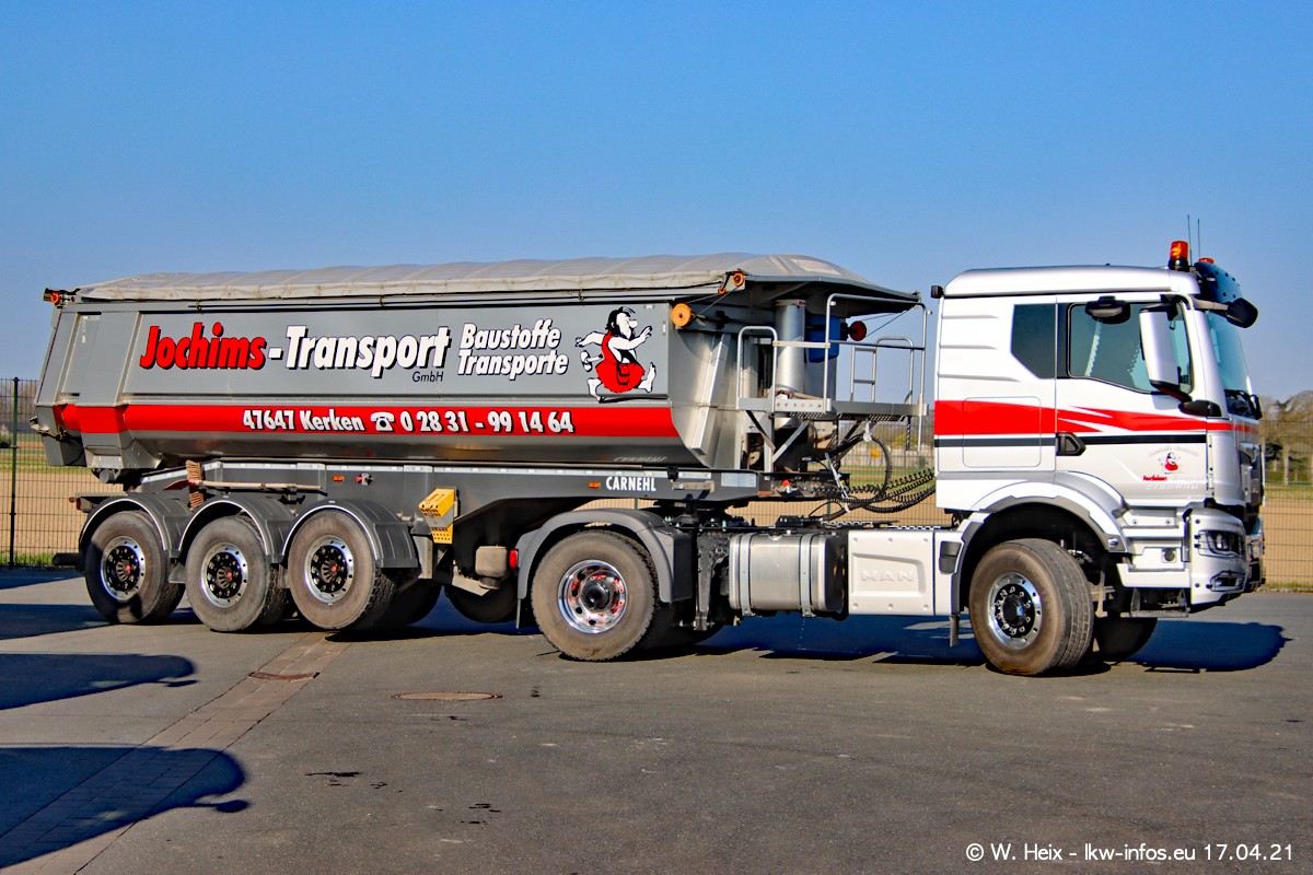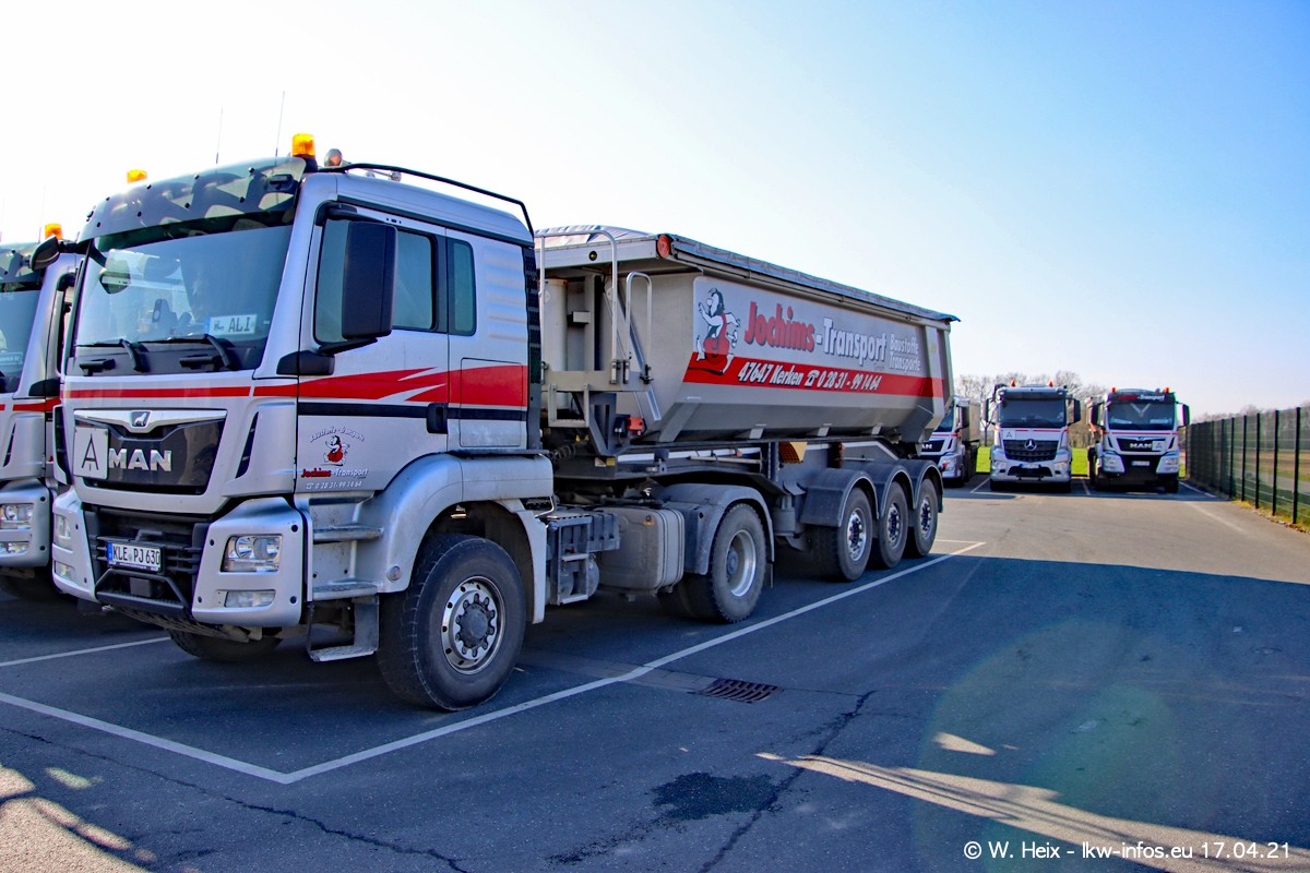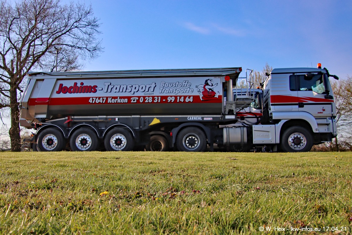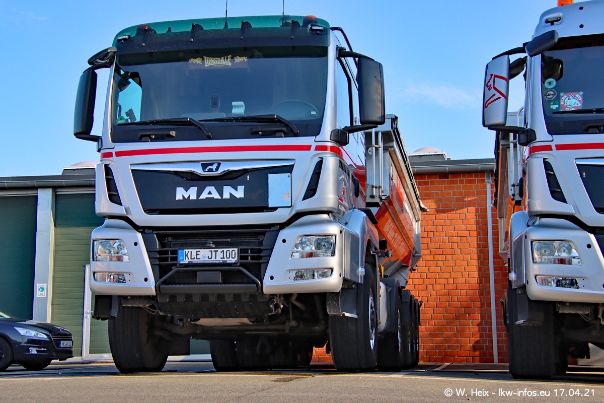 Es sind schon wieder fast 1,5 Jahre vergangen, seit ich zuletzt bei Jochims zu Besuch war. Entsprechend gibt es viele neue LKW. Das sind meines Wissens alles Zugmaschinen von MAN, zu erkennen an den jetzt geänderten Kennzeichen mit der Kombination "KLE JT" und nicht mehr "KLE PJ". Jochims hat in der letzten Zeit noch viele MAN TGS der jetzt alten Baureihe gekauft, aber jetzt ist auch seit einigen Wochen der erste neue MAN TGS im Fuhrpark. Wir haben ein kleines Fotoshooting auf den Gelände gemacht und den alten und den neuen MAN nebeneinander gestellt. Im Sommer kommen voraussichtlich weitere neue LKW. Alle Bilder sind vom Hauptsitz in Kerken, wo ungefähr die Hälfe der Fahrzeuge steht.
