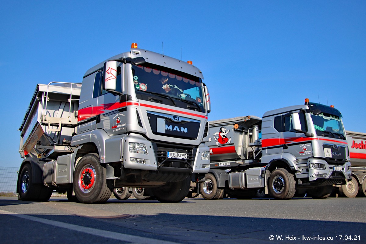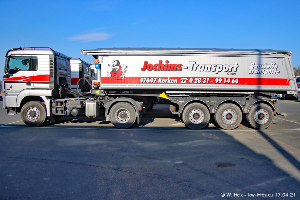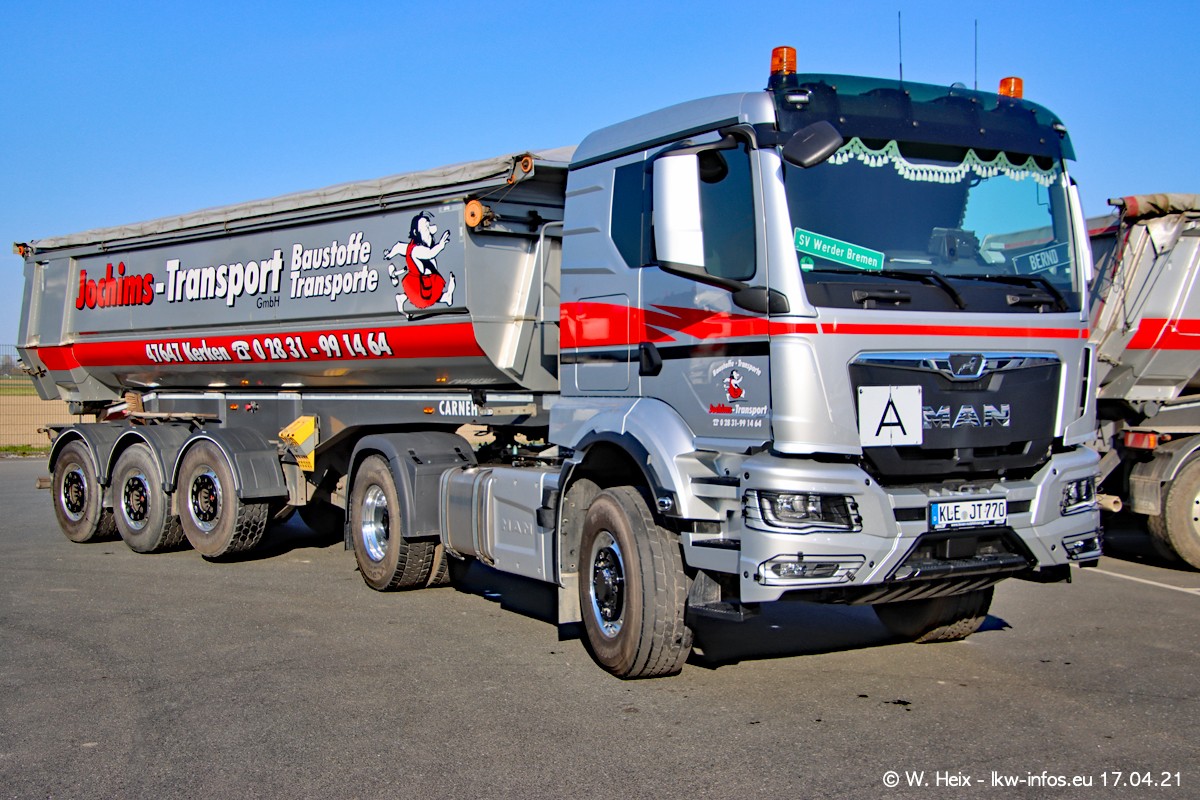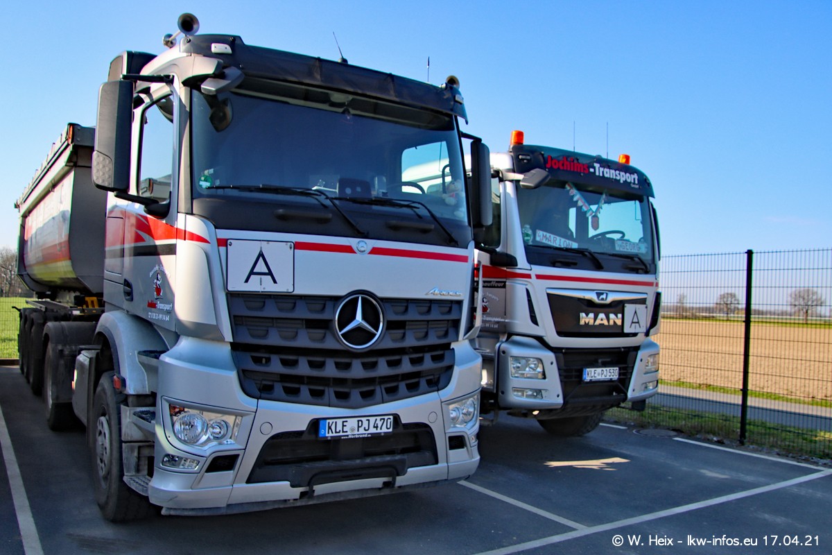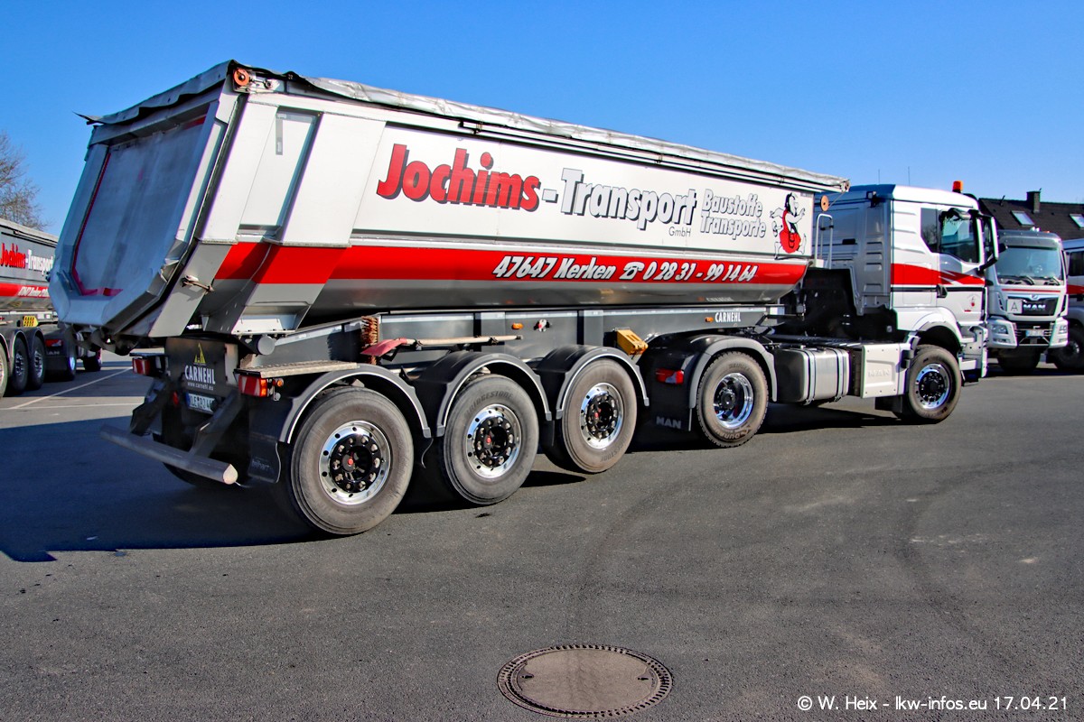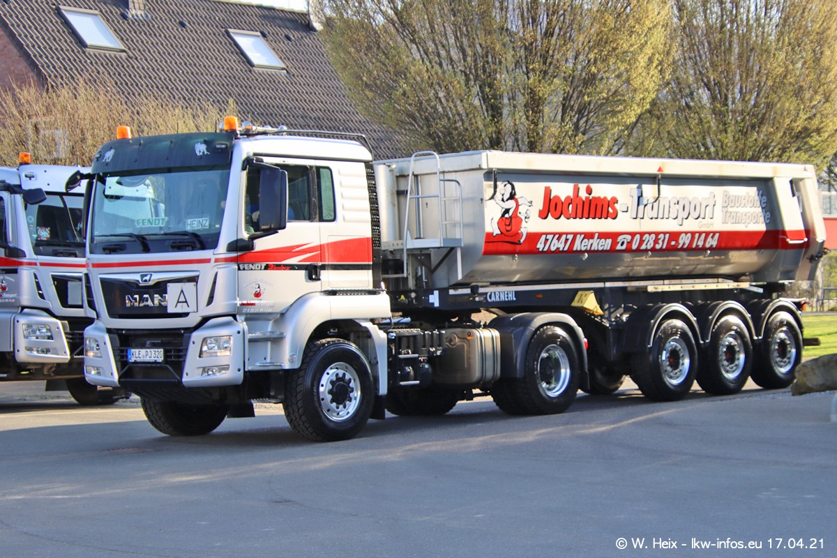 Es sind schon wieder fast 1,5 Jahre vergangen, seit ich zuletzt bei Jochims zu Besuch war. Entsprechend gibt es viele neue LKW. Das sind meines Wissens alles Zugmaschinen von MAN, zu erkennen an den jetzt geänderten Kennzeichen mit der Kombination "KLE JT" und nicht mehr "KLE PJ". Jochims hat in der letzten Zeit noch viele MAN TGS der jetzt alten Baureihe gekauft, aber jetzt ist auch seit einigen Wochen der erste neue MAN TGS im Fuhrpark. Wir haben ein kleines Fotoshooting auf den Gelände gemacht und den alten und den neuen MAN nebeneinander gestellt. Im Sommer kommen voraussichtlich weitere neue LKW. Alle Bilder sind vom Hauptsitz in Kerken, wo ungefähr die Hälfe der Fahrzeuge steht.
