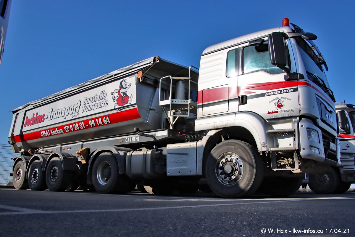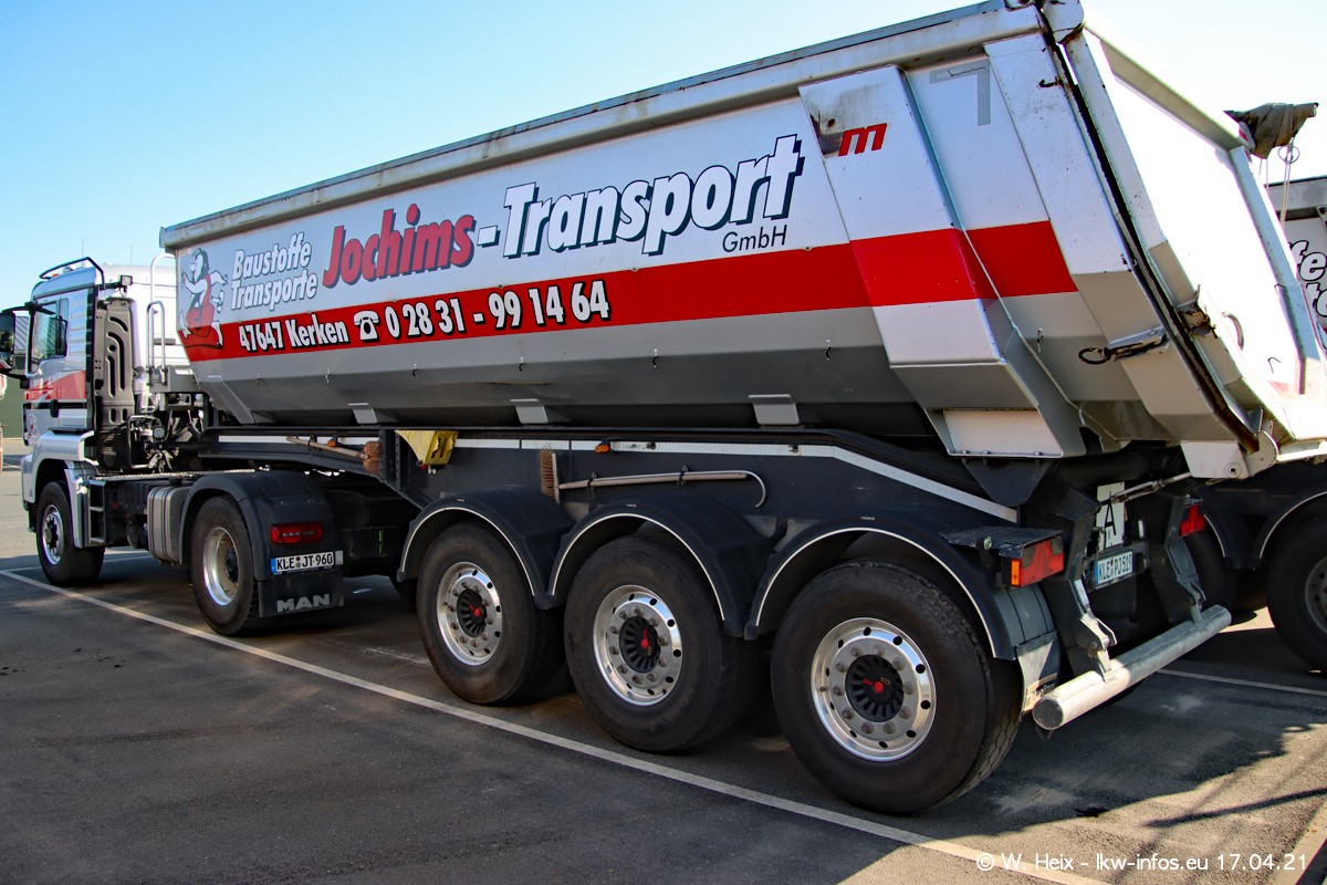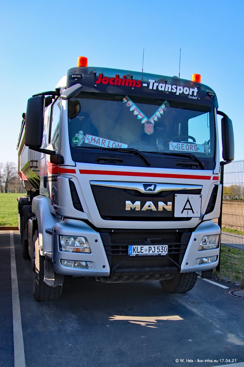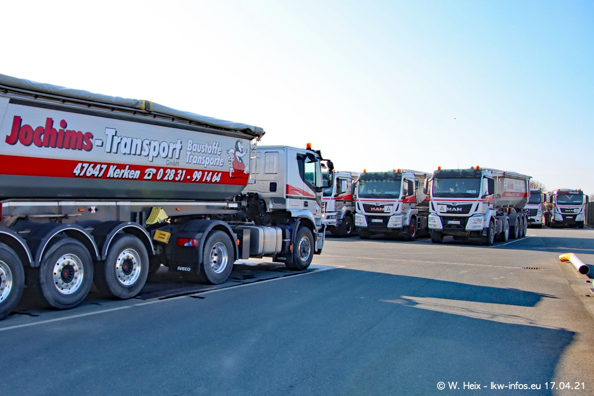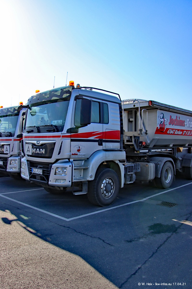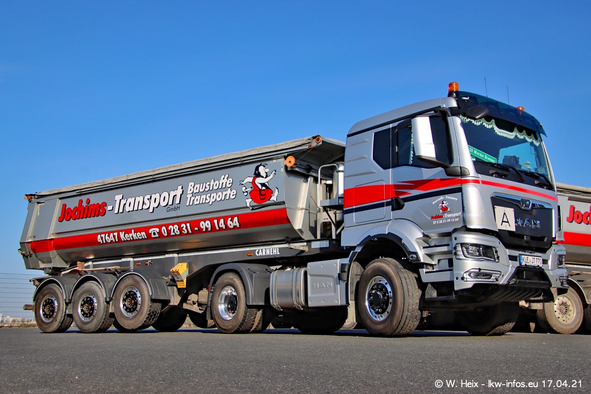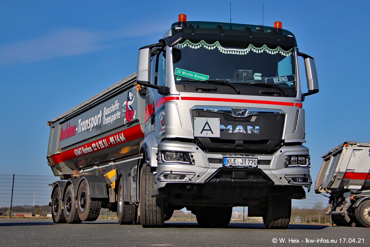 Es sind schon wieder fast 1,5 Jahre vergangen, seit ich zuletzt bei Jochims zu Besuch war. Entsprechend gibt es viele neue LKW. Das sind meines Wissens alles Zugmaschinen von MAN, zu erkennen an den jetzt geänderten Kennzeichen mit der Kombination "KLE JT" und nicht mehr "KLE PJ". Jochims hat in der letzten Zeit noch viele MAN TGS der jetzt alten Baureihe gekauft, aber jetzt ist auch seit einigen Wochen der erste neue MAN TGS im Fuhrpark. Wir haben ein kleines Fotoshooting auf den Gelände gemacht und den alten und den neuen MAN nebeneinander gestellt. Im Sommer kommen voraussichtlich weitere neue LKW. Alle Bilder sind vom Hauptsitz in Kerken, wo ungefähr die Hälfe der Fahrzeuge steht.