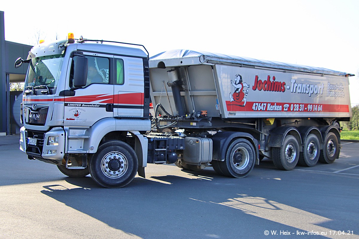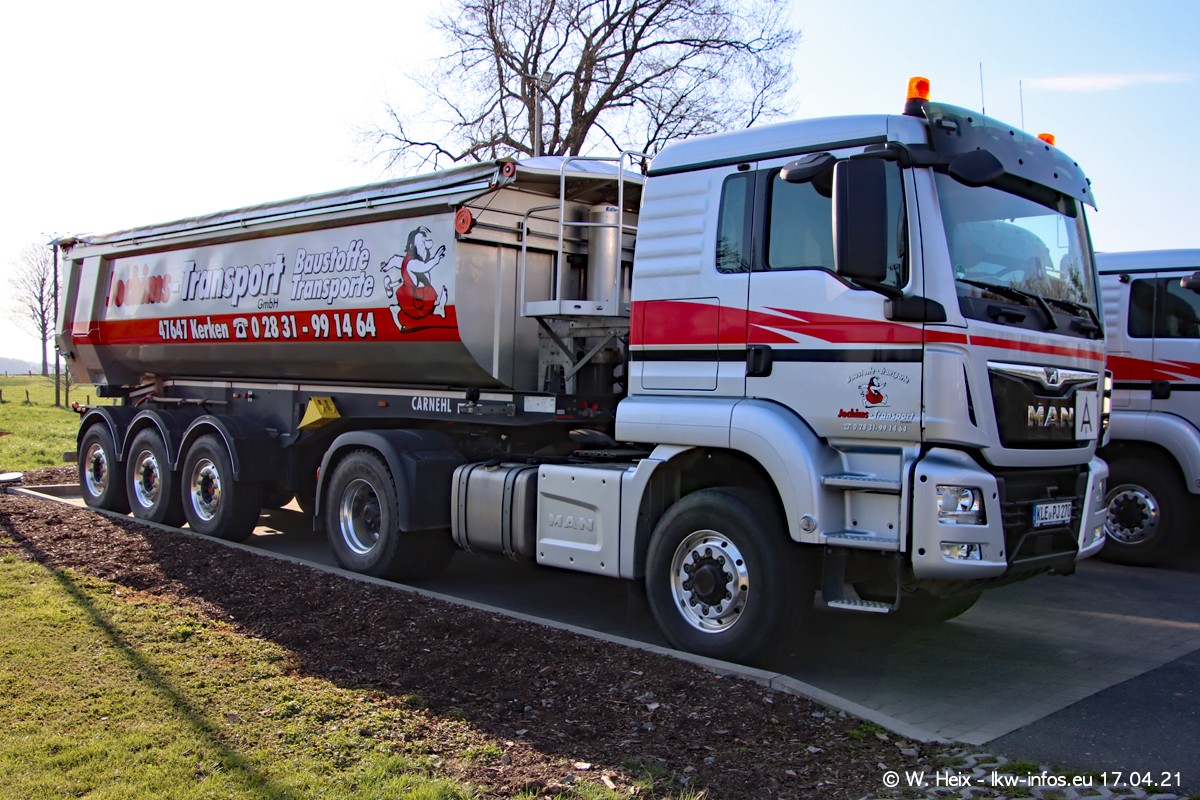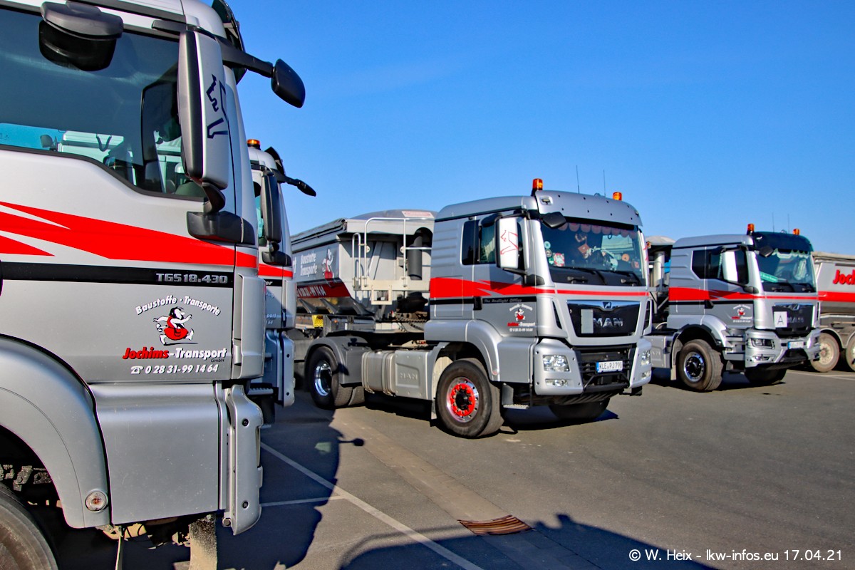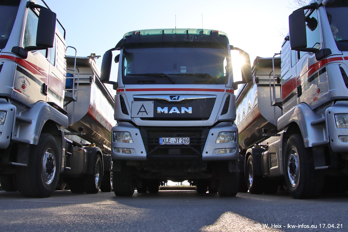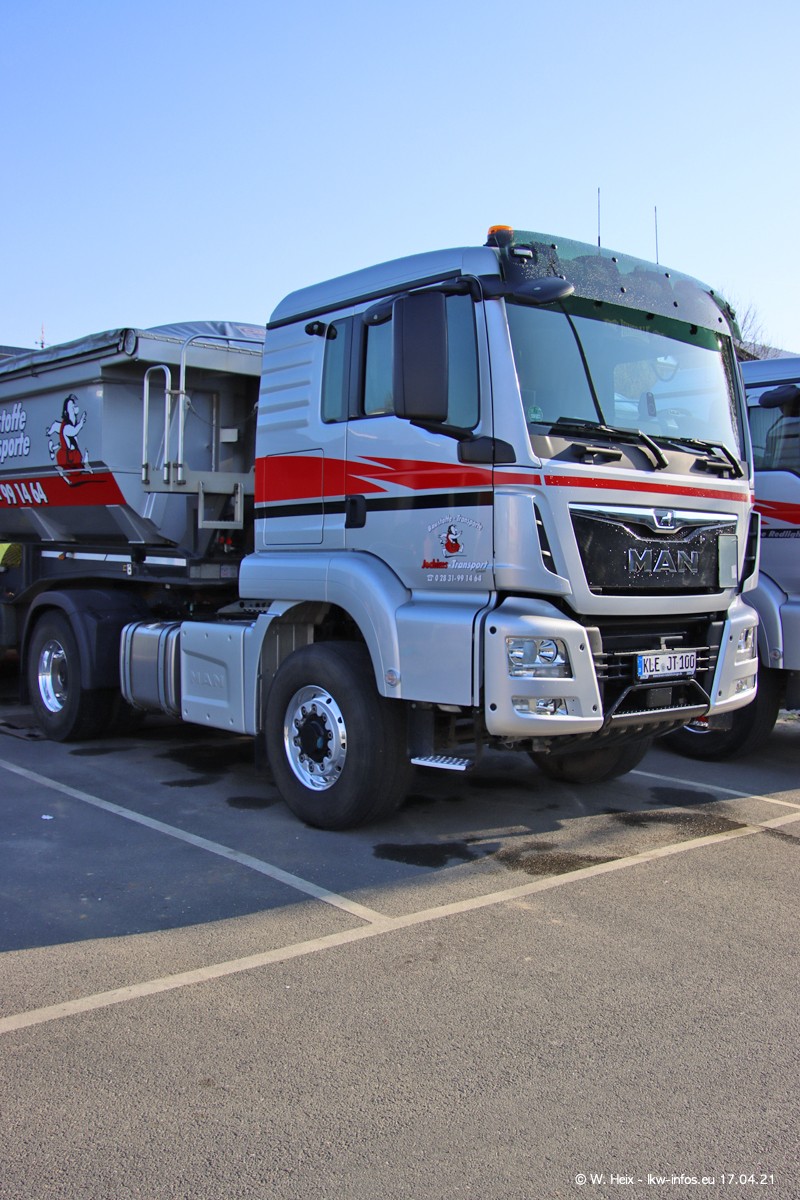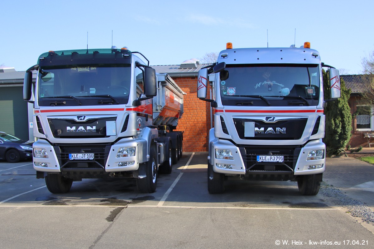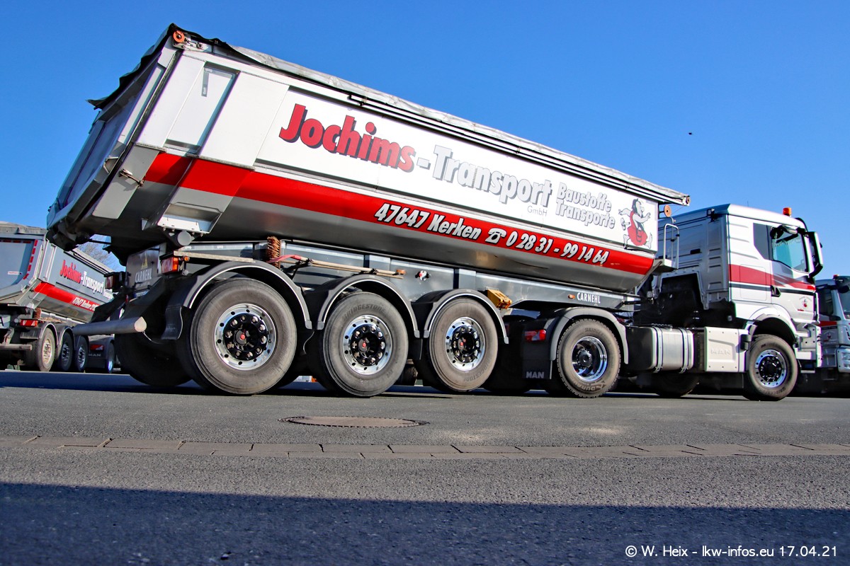 Es sind schon wieder fast 1,5 Jahre vergangen, seit ich zuletzt bei Jochims zu Besuch war. Entsprechend gibt es viele neue LKW. Das sind meines Wissens alles Zugmaschinen von MAN, zu erkennen an den jetzt geänderten Kennzeichen mit der Kombination "KLE JT" und nicht mehr "KLE PJ". Jochims hat in der letzten Zeit noch viele MAN TGS der jetzt alten Baureihe gekauft, aber jetzt ist auch seit einigen Wochen der erste neue MAN TGS im Fuhrpark. Wir haben ein kleines Fotoshooting auf den Gelände gemacht und den alten und den neuen MAN nebeneinander gestellt. Im Sommer kommen voraussichtlich weitere neue LKW. Alle Bilder sind vom Hauptsitz in Kerken, wo ungefähr die Hälfe der Fahrzeuge steht.