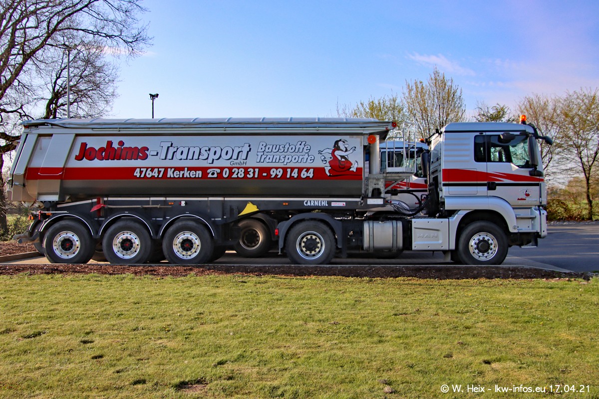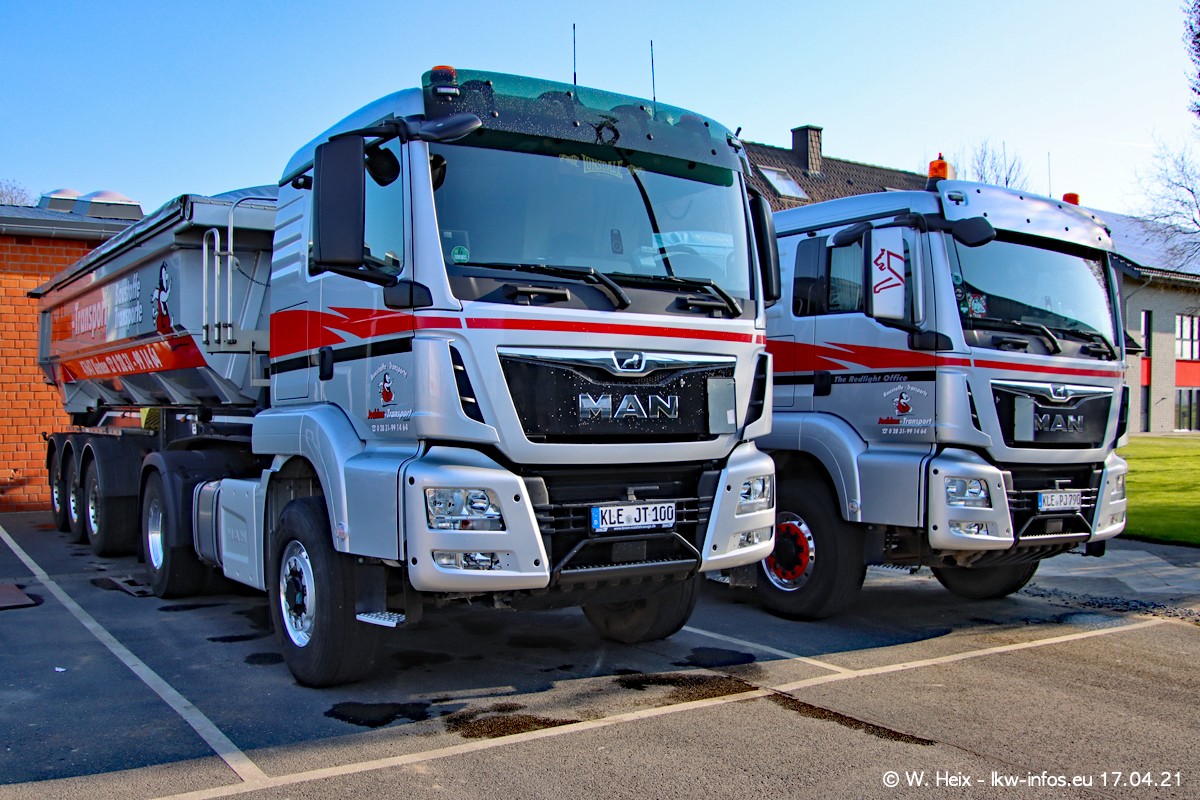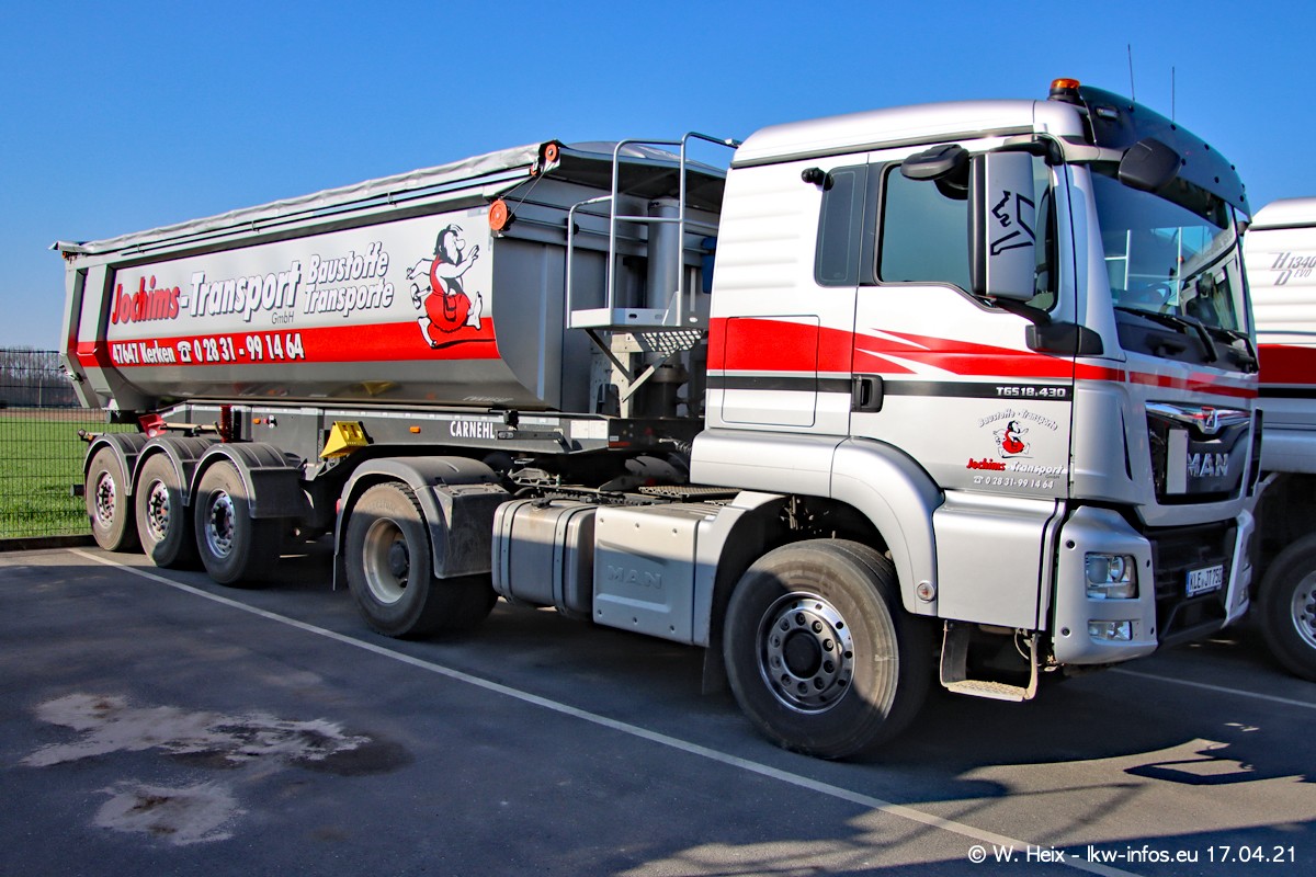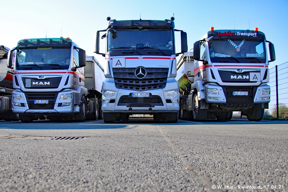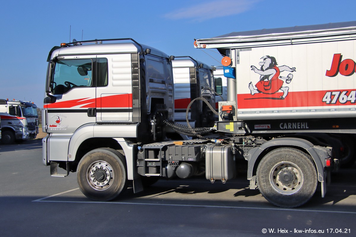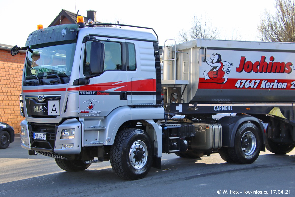 Es sind schon wieder fast 1,5 Jahre vergangen, seit ich zuletzt bei Jochims zu Besuch war. Entsprechend gibt es viele neue LKW. Das sind meines Wissens alles Zugmaschinen von MAN, zu erkennen an den jetzt geänderten Kennzeichen mit der Kombination "KLE JT" und nicht mehr "KLE PJ". Jochims hat in der letzten Zeit noch viele MAN TGS der jetzt alten Baureihe gekauft, aber jetzt ist auch seit einigen Wochen der erste neue MAN TGS im Fuhrpark. Wir haben ein kleines Fotoshooting auf den Gelände gemacht und den alten und den neuen MAN nebeneinander gestellt. Im Sommer kommen voraussichtlich weitere neue LKW. Alle Bilder sind vom Hauptsitz in Kerken, wo ungefähr die Hälfe der Fahrzeuge steht.