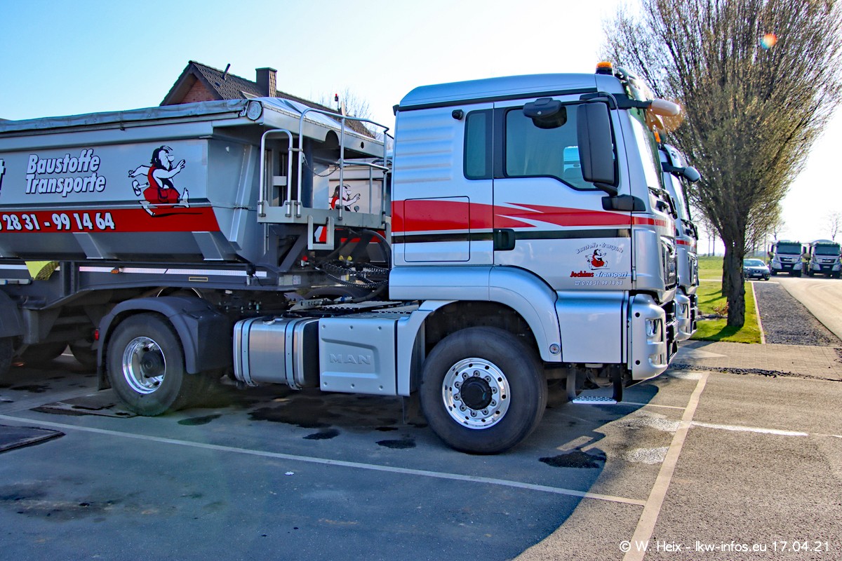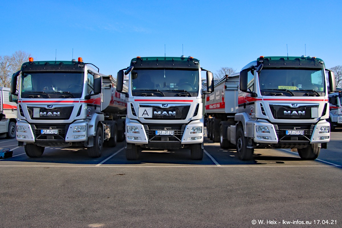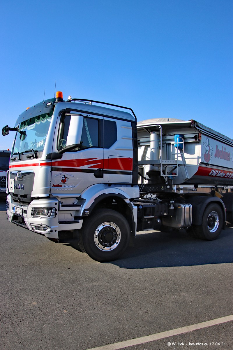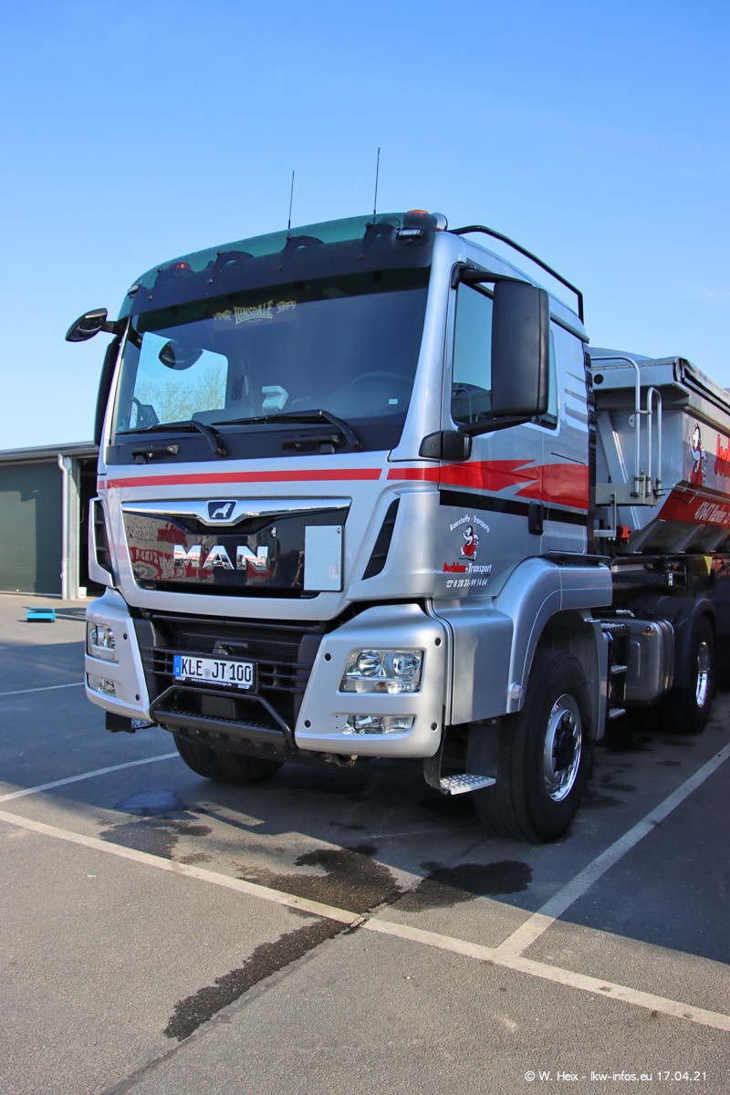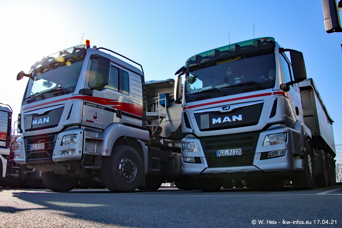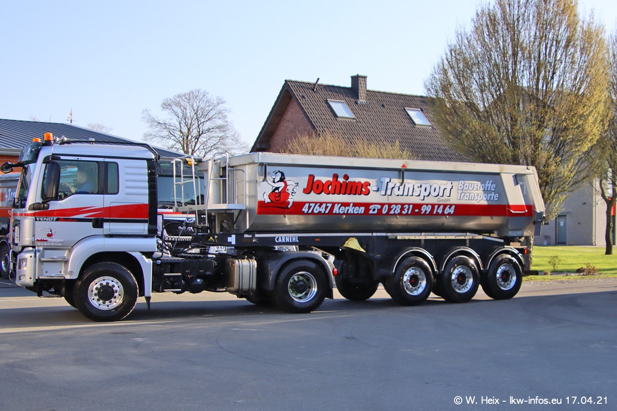 Es sind schon wieder fast 1,5 Jahre vergangen, seit ich zuletzt bei Jochims zu Besuch war. Entsprechend gibt es viele neue LKW. Das sind meines Wissens alles Zugmaschinen von MAN, zu erkennen an den jetzt geänderten Kennzeichen mit der Kombination "KLE JT" und nicht mehr "KLE PJ". Jochims hat in der letzten Zeit noch viele MAN TGS der jetzt alten Baureihe gekauft, aber jetzt ist auch seit einigen Wochen der erste neue MAN TGS im Fuhrpark. Wir haben ein kleines Fotoshooting auf den Gelände gemacht und den alten und den neuen MAN nebeneinander gestellt. Im Sommer kommen voraussichtlich weitere neue LKW. Alle Bilder sind vom Hauptsitz in Kerken, wo ungefähr die Hälfe der Fahrzeuge steht.
